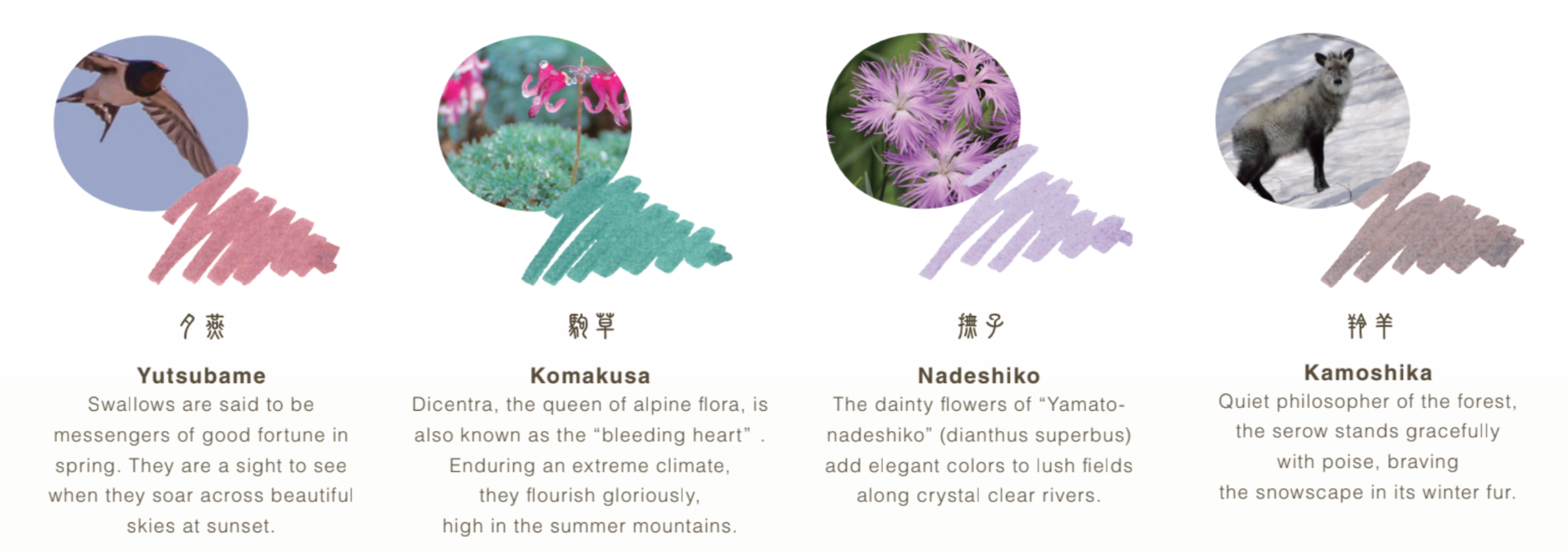 Nadeshiko (Autumn) is an echo of the elegant hues of Yamato-nadeshiko. The term nadeshiko refers to the Dianthus Superbus, a frilled pink carnation. Nadeshiko adds a splash of sophisticated color to your writing. It reflects the lush fields and crystal-clear rivers of autumn, inviting tranquility into every stroke.