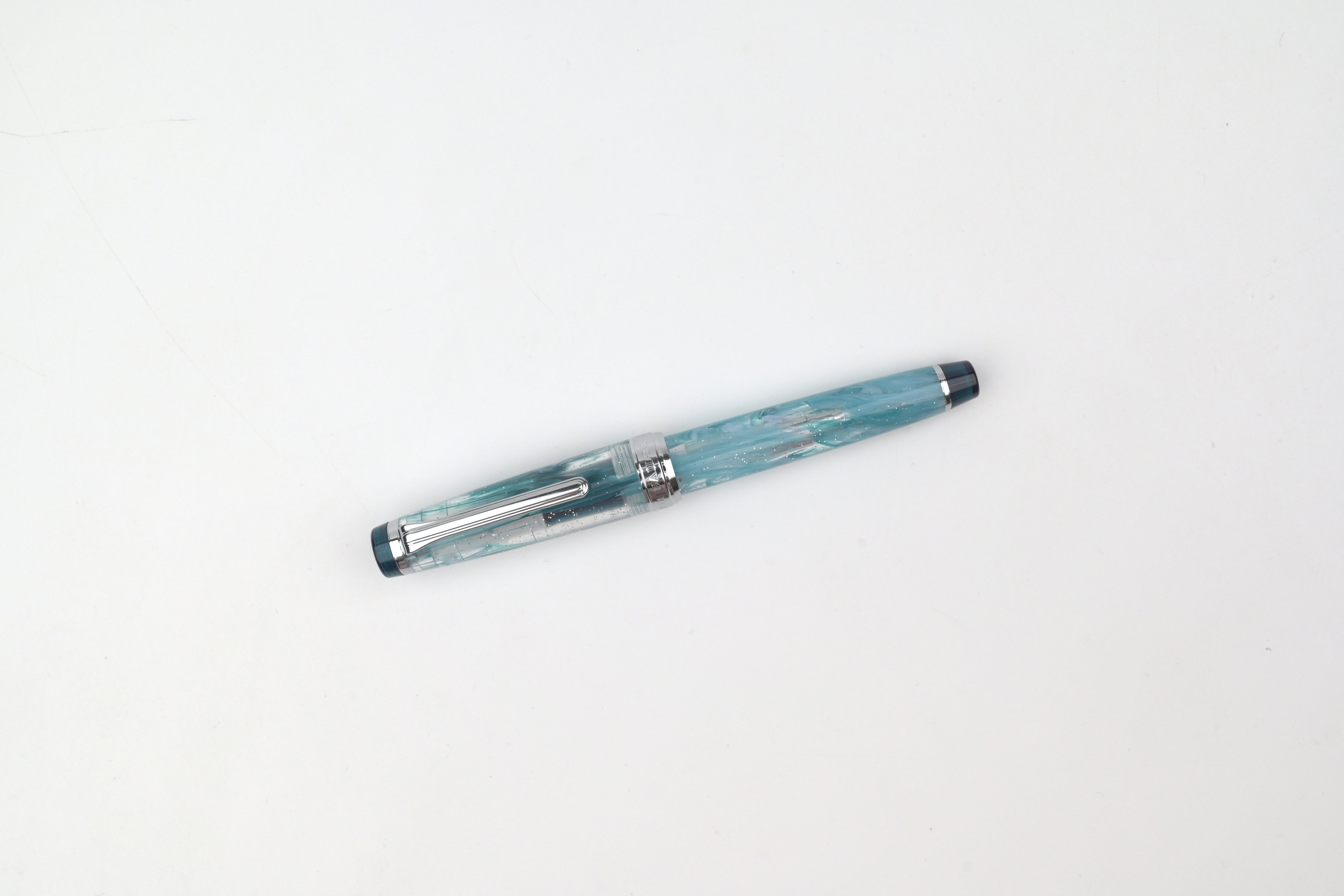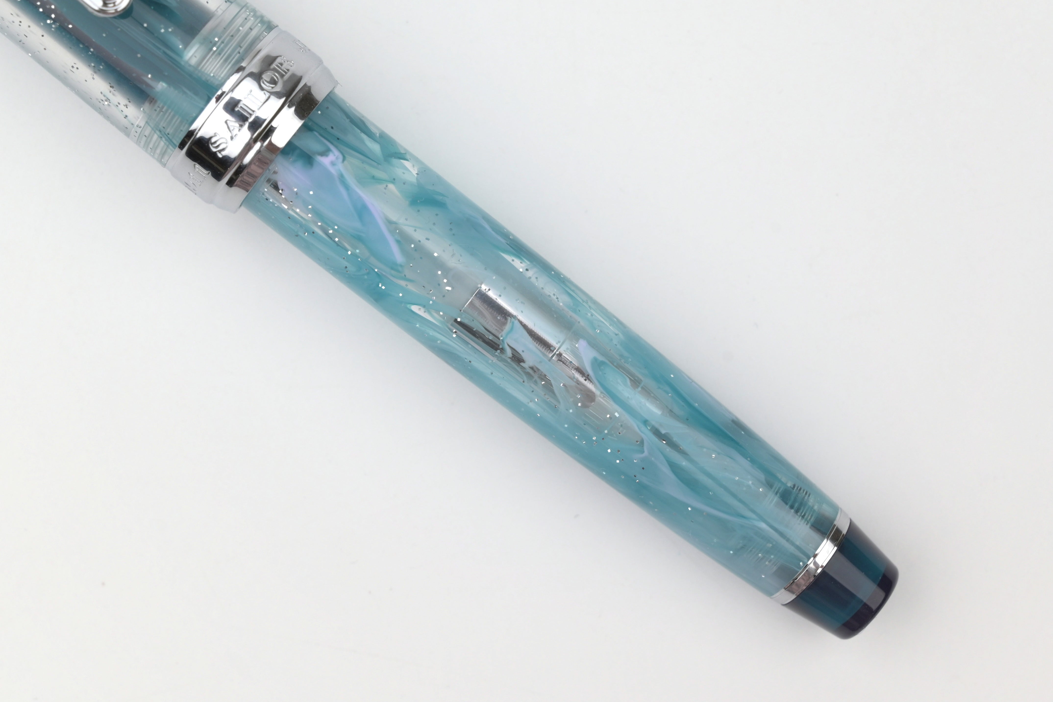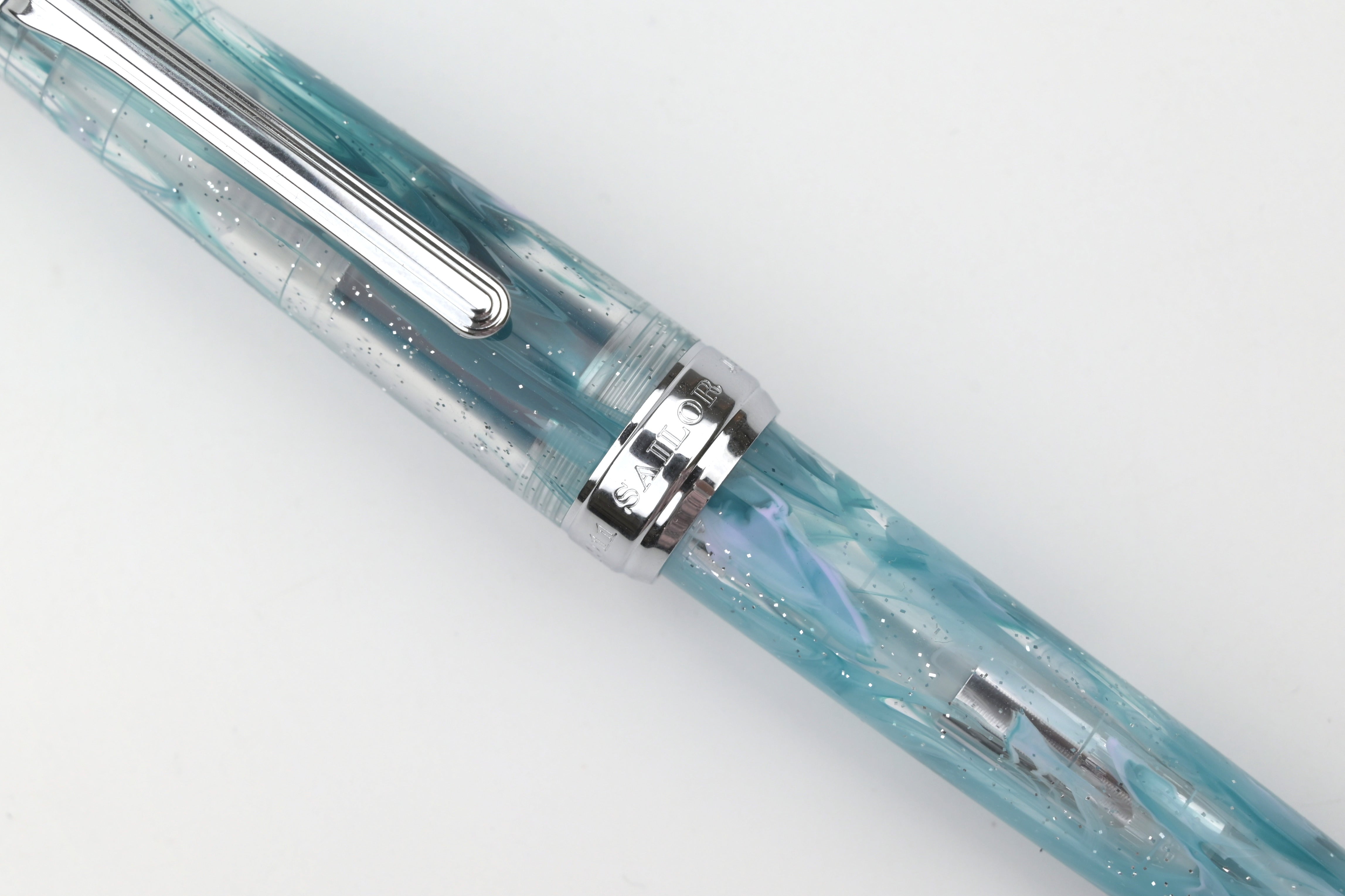 The Sailor VEILIO 4th Edition continues the series’ signature concept, drawing inspiration from the beauty of a flowing bridal veil infused with vibrant swirls of color. The Blue Purple pen features a marble acrylic in layered shades of blue and purple with shimmering glitter, paired with nickel chrome accents and a transparent blue grip for a luminous finish.