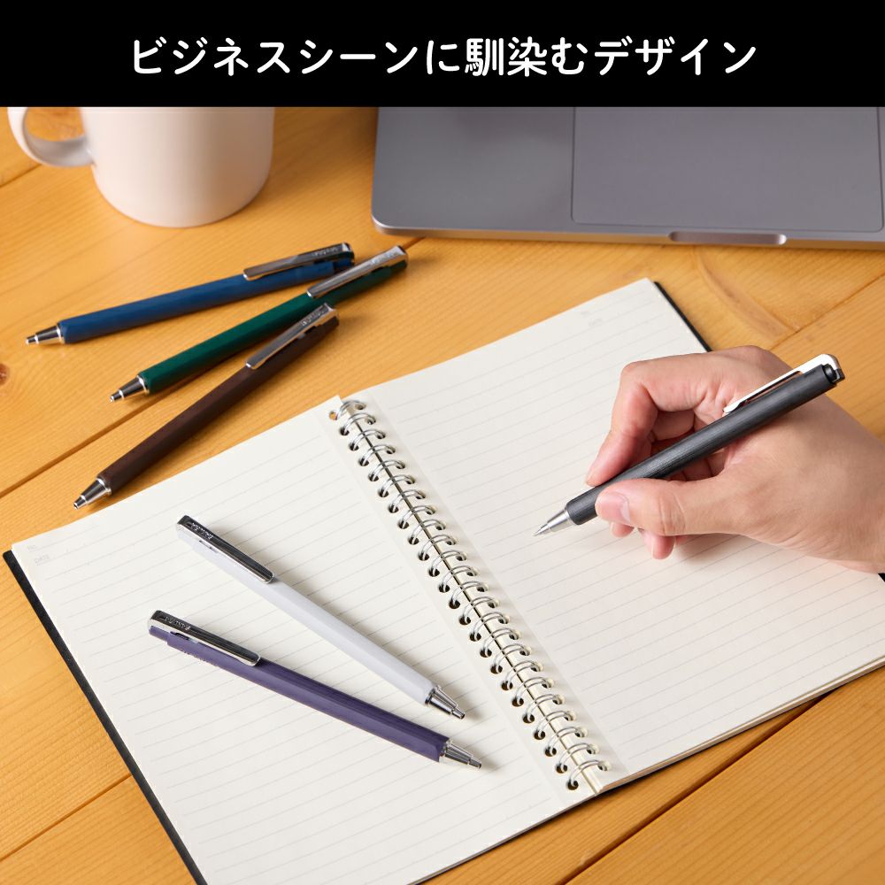 The Ballsign iD series is named after the idea of “choosing your own black” — your identity. With this pen, individuality is expressed not only through its design but also through your handwriting, where subtle variations in ink tone influence the overall impression on the page. The ink appears almost black at first glance, yet each shade reveals a delicate hint of color, offering depth and nuance with every stroke.