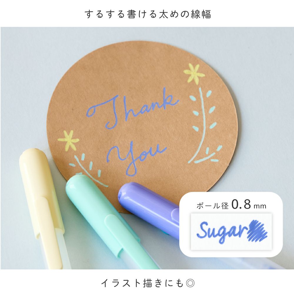 These gel ink ballpoint pens feature soft yet lively pastel hues that show up beautifully even on dark paper. Their 0.8mm tip offers smooth, bold lines that are easy for children to use, making both writing and illustrations crisp and clear. It includes a convenient knock mechanism for quick, one-handed use. The sweet, charming colors are perfect for letters, notebooks, journals, and profile books, and they write effortlessly on photos too—adding an adorable pop of color to your favorite snapshots.