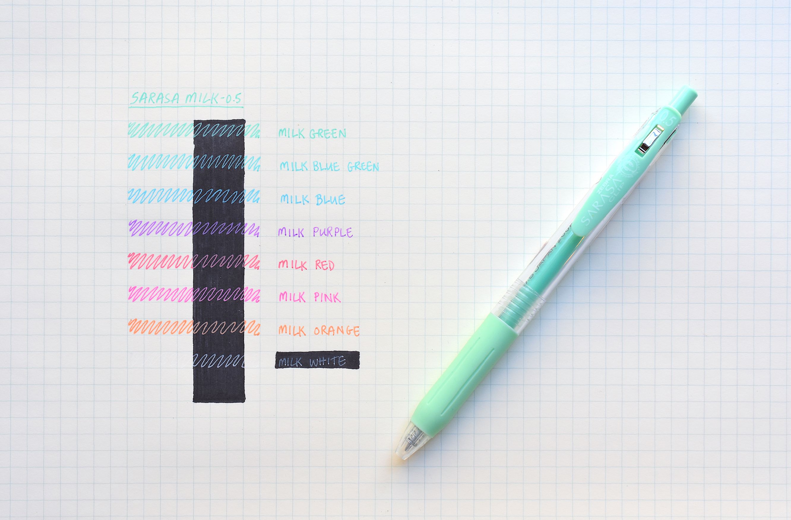 These SARASA Clip Milk Color pens have ink that shows well on both light and dark colored papers.