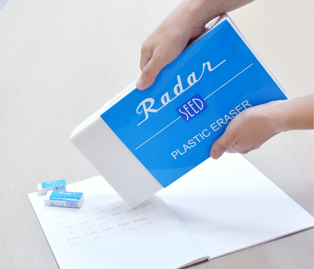 The Seed Radar Plastic Eraser is a popular eraser known for its outstanding performance as well as its affordable pricing. It is a perfect tool for artists, students, or any professionals in search of a daily erasing option. Free from phthalate and latex, the Seed Radar Eraser is both eco-friendly and safe to use for all ages.