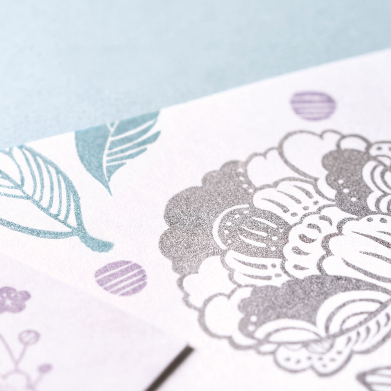 These mini ink pads contain tiny glitter particles to add a bit of sparkly elegance to your stamped creations. They produce a sharper and brighter result than a standard ink pad. They also dry fast and are waterproof. The colors in this series originate from traditional Japanese colors. The plastic lid of this stamp pad is not attached, and the bottom of the pad is designed to be stackable for easy storage.