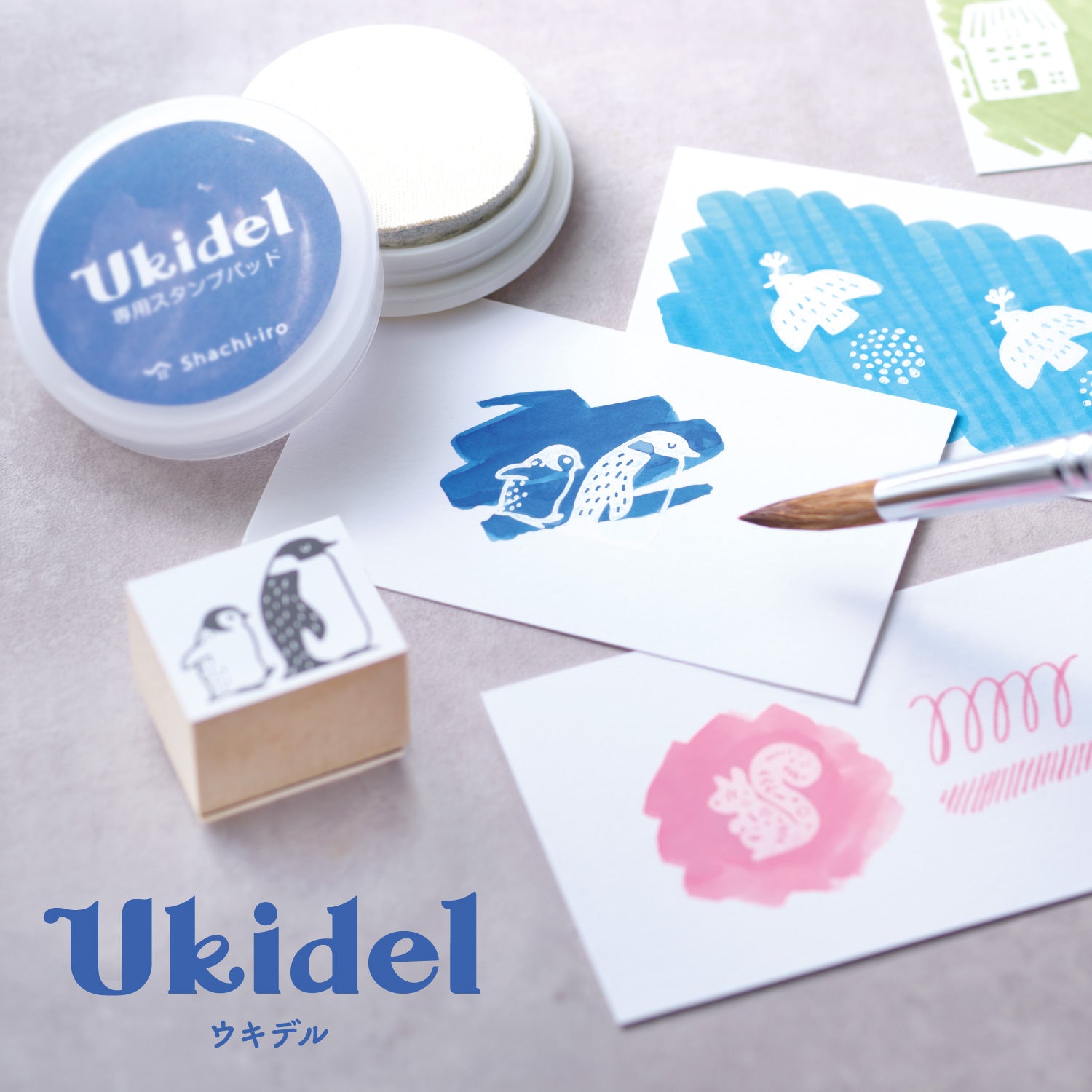 Important note: The Ukidel ink and cleaner are not compatible with clear stamps or eraser stamps, as they will damage the surface. The ink is designed to repel water-based dye inks only and will not repel water-based pigment inks or oil based inks. We recommend testing on scrap paper first.