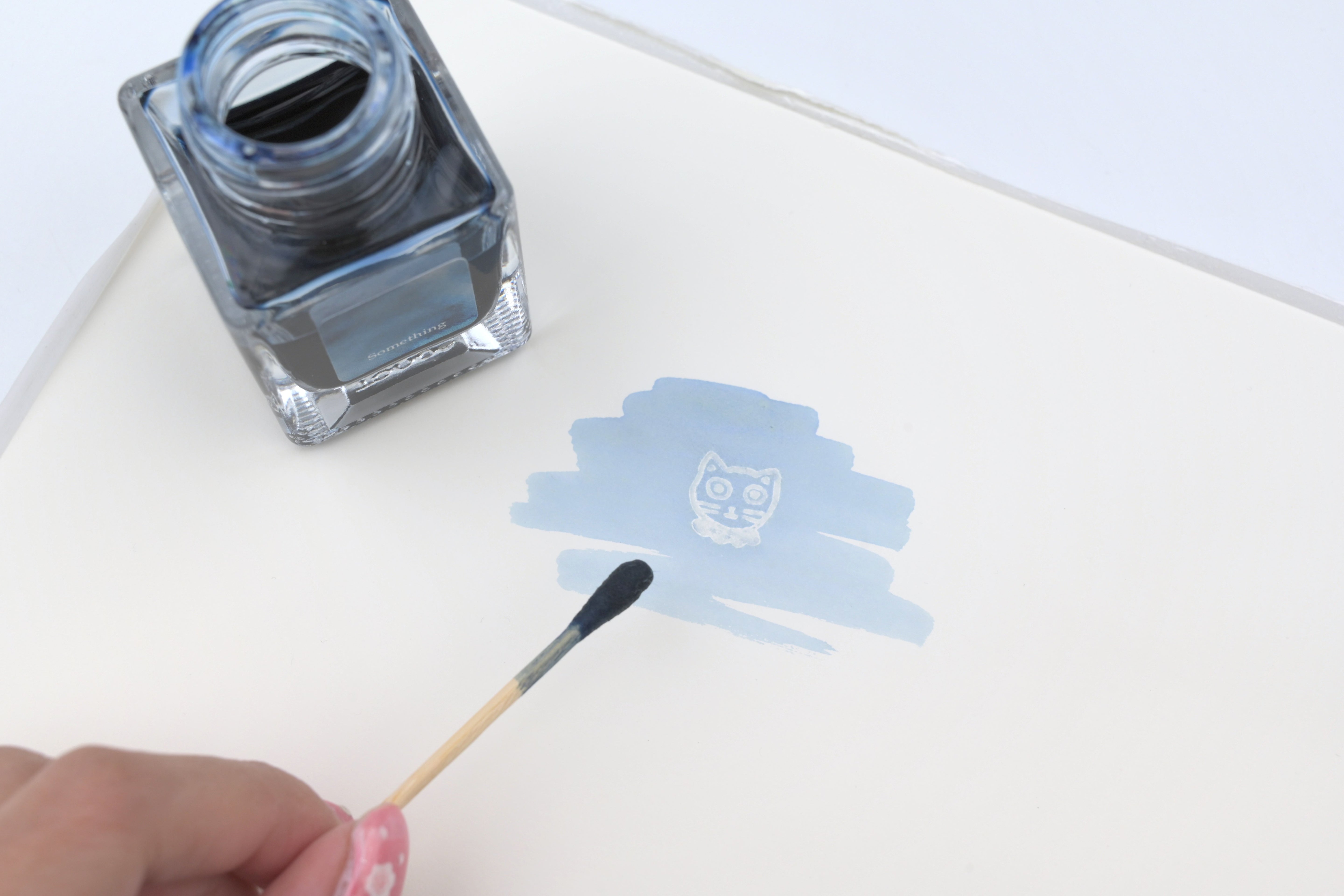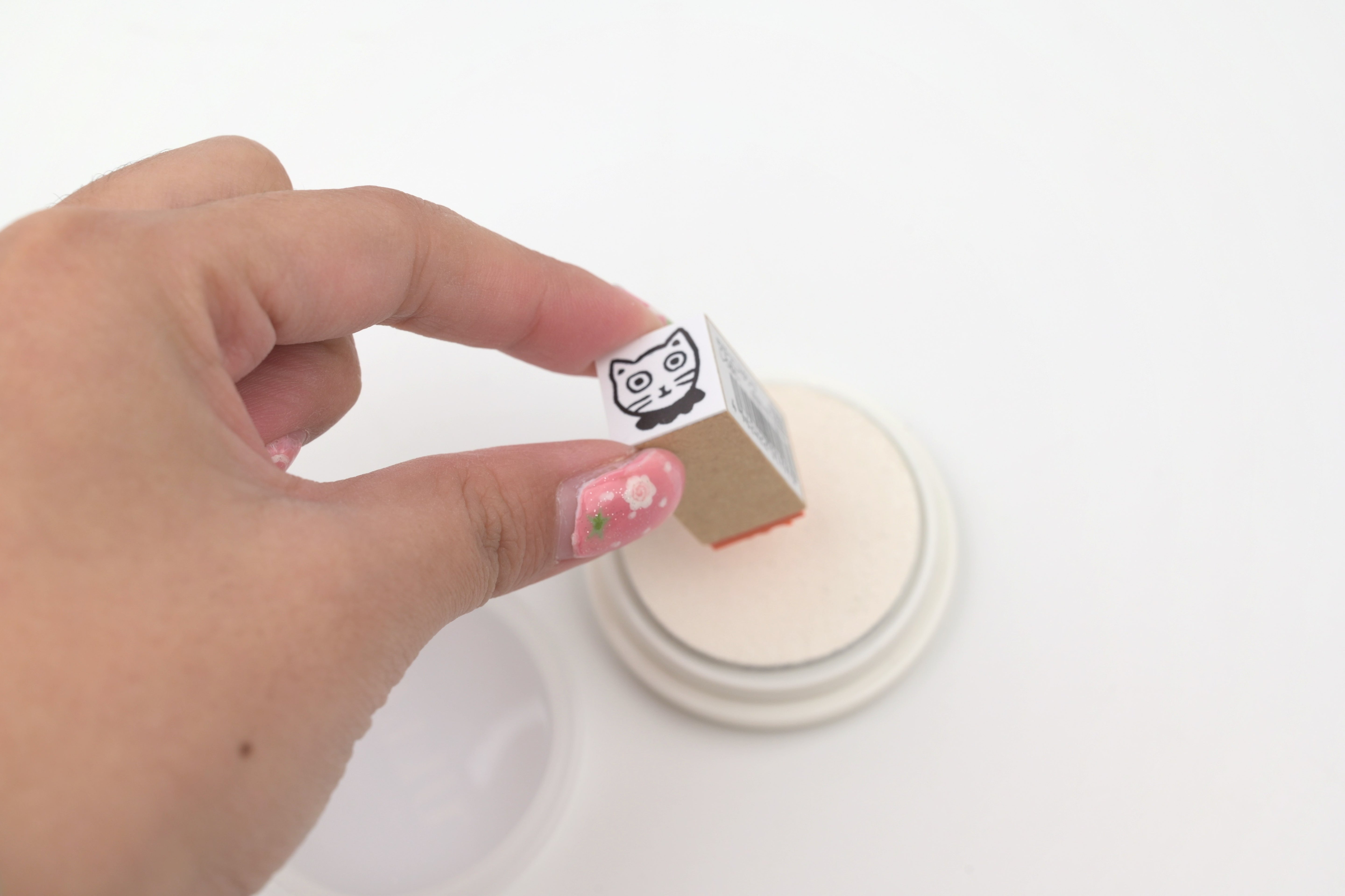 When using this stamp pad for the first time, do be sure to refill the ink. First, dispense some of the ink in the included circle shaped "refill tray." Then, place the stamp pad face down to let the ink absorb. Once it's fully absorbed, it's ready to use! You can clean up the design with a cotton swab or tissue before the stamp impression fully dries.