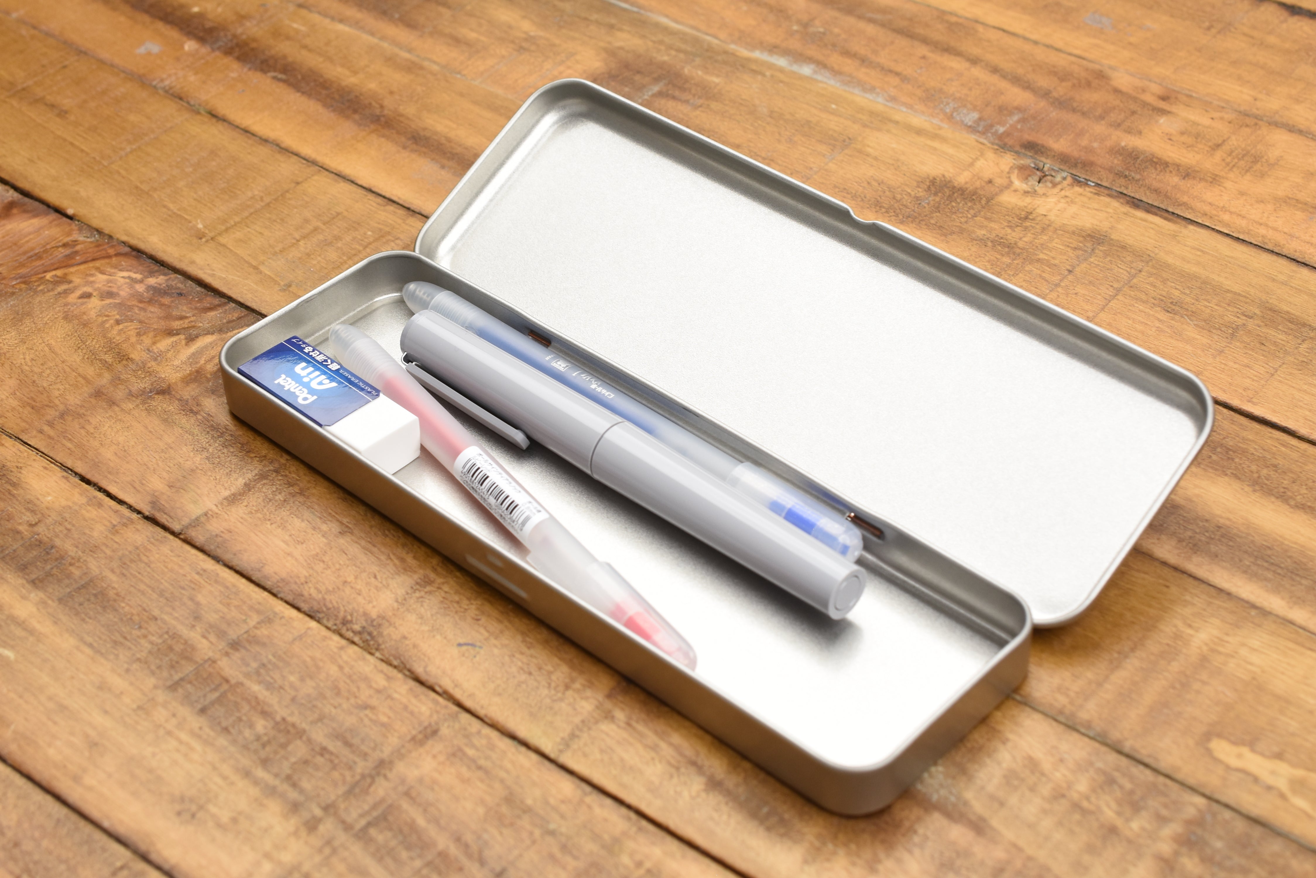 Keep your essentials organized with the Slip-On Flat Metal Pencil Case, a minimalist and practical solution for storing writing tools and small accessories.