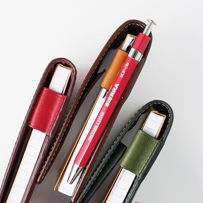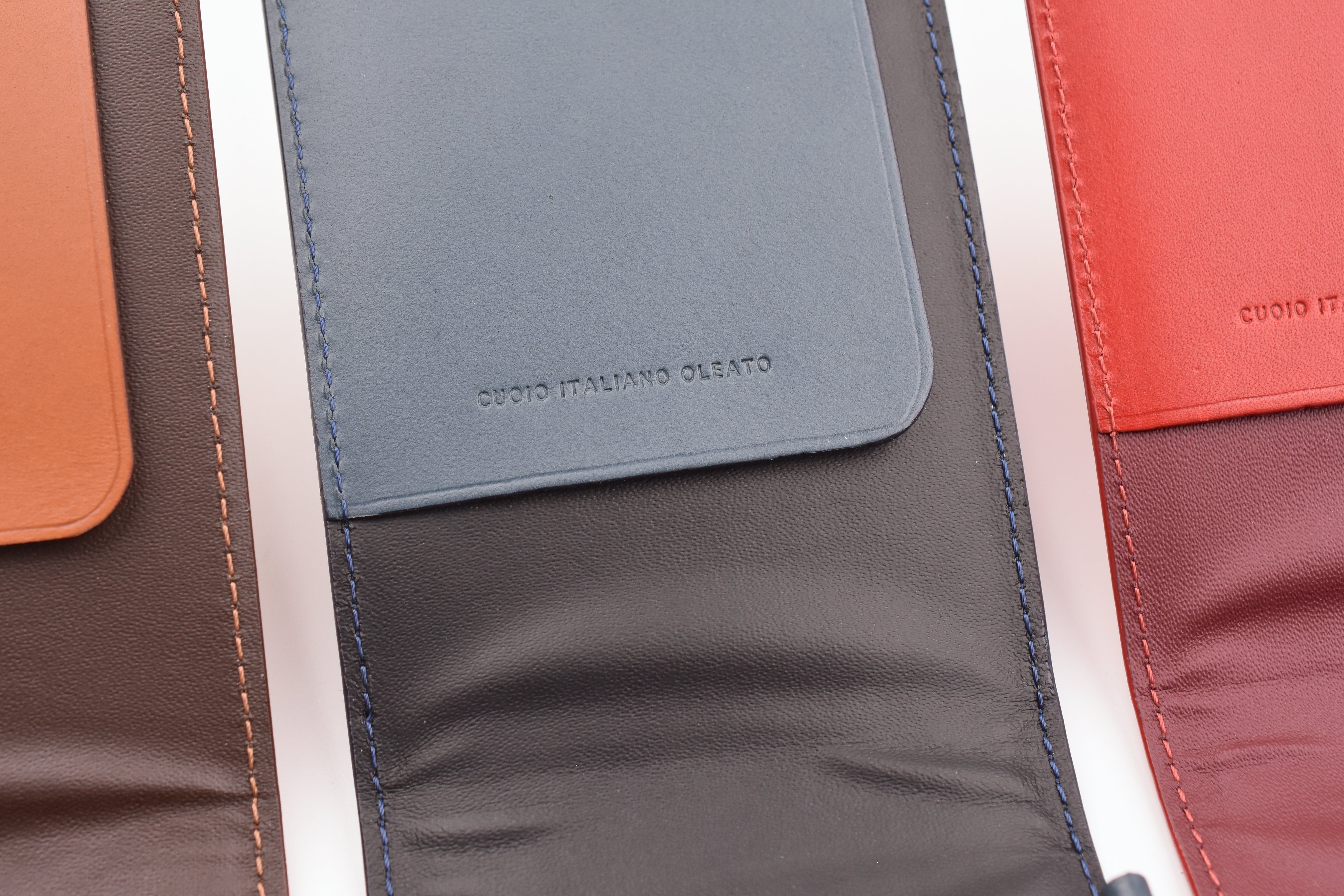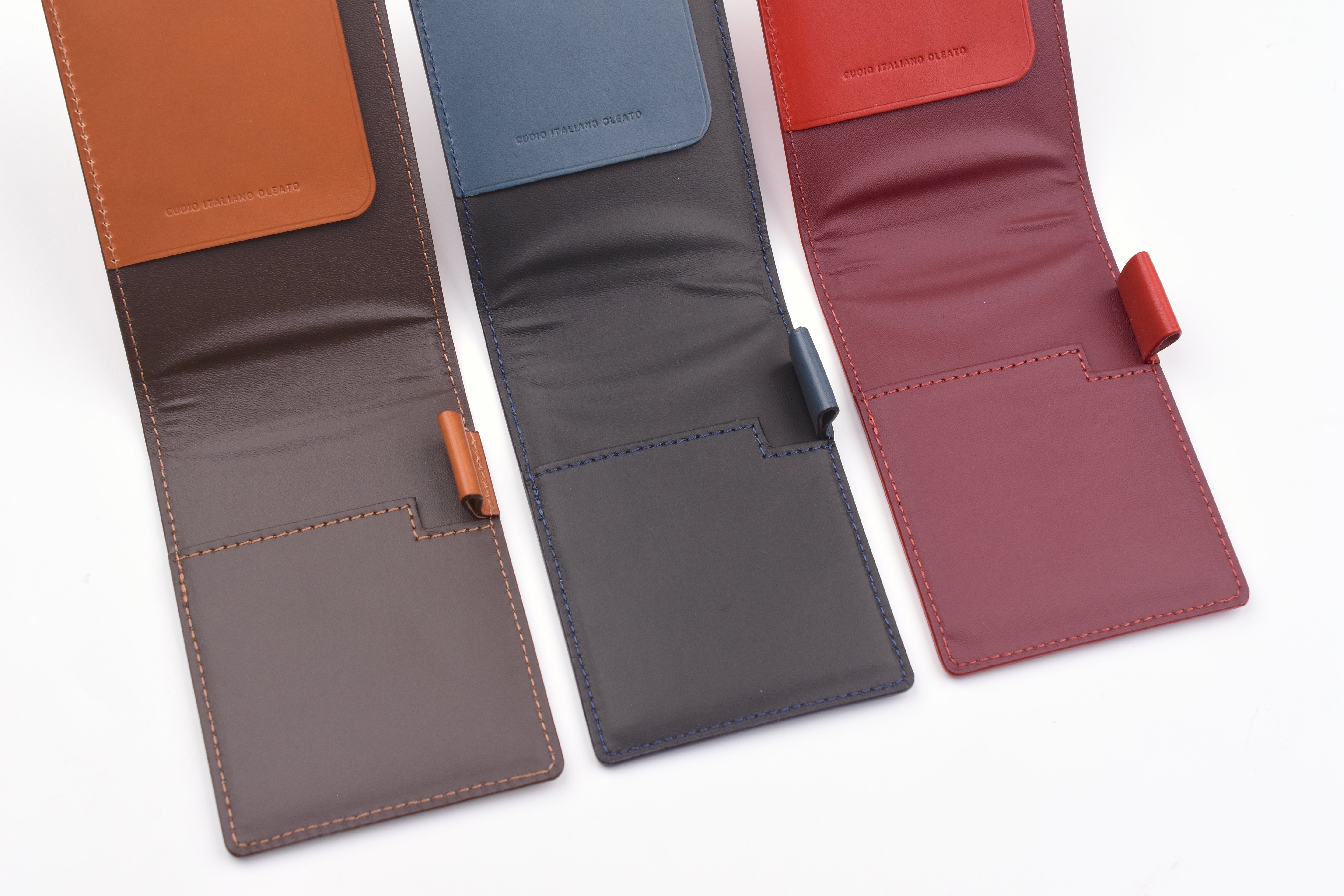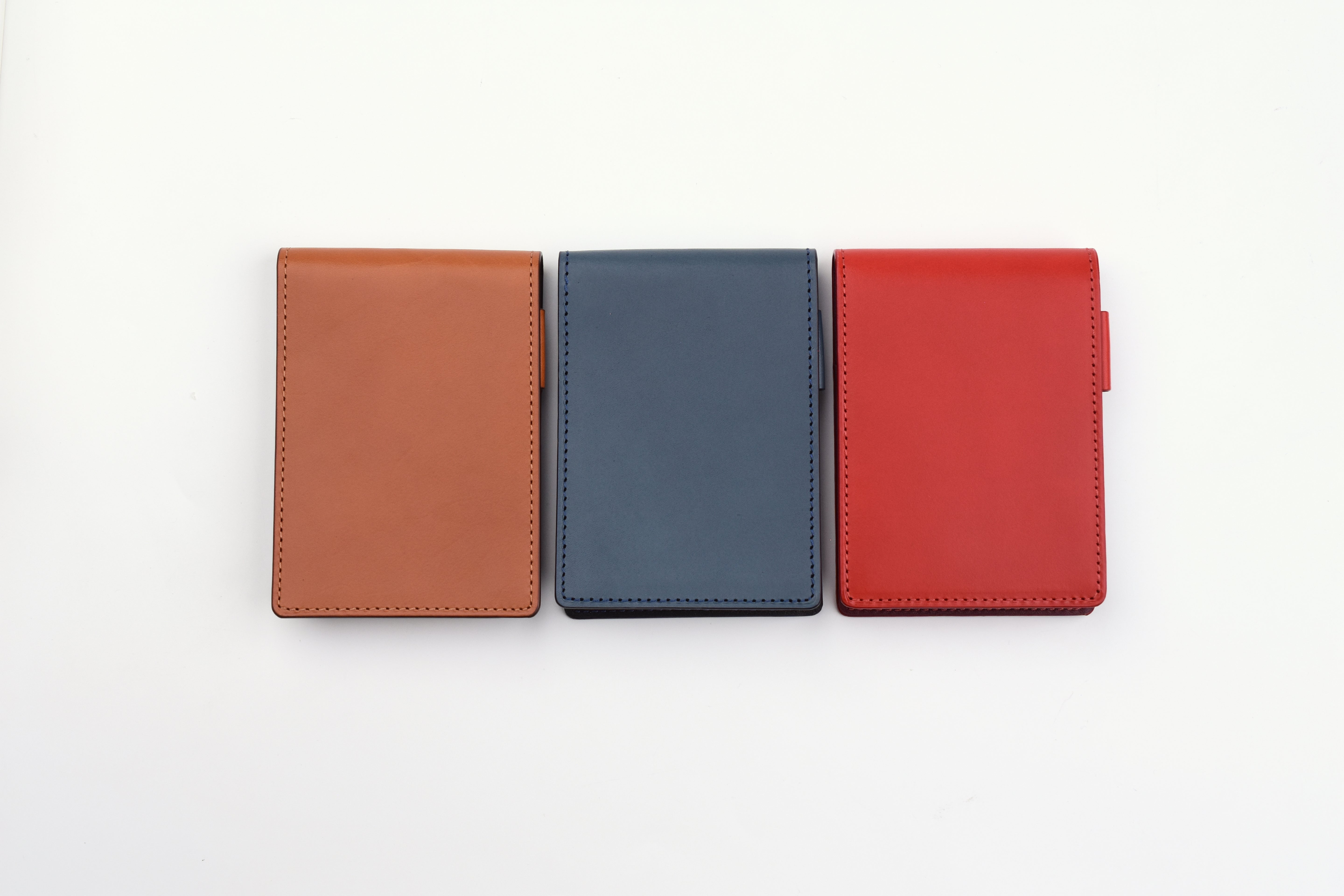 Its innovative design features a floating construction—free of stitches or glue in the fold—allowing the cover to flip backward effortlessly. This ensures a stable grip for comfortable writing, whether you're seated at a desk or standing on the go. The cover also includes a versatile pen holder that fits pens up to 9mm in diameter, with the option to secure thicker pens using their clip. An inner pocket adds further convenience, providing space to store small notes or business cards with ease.
