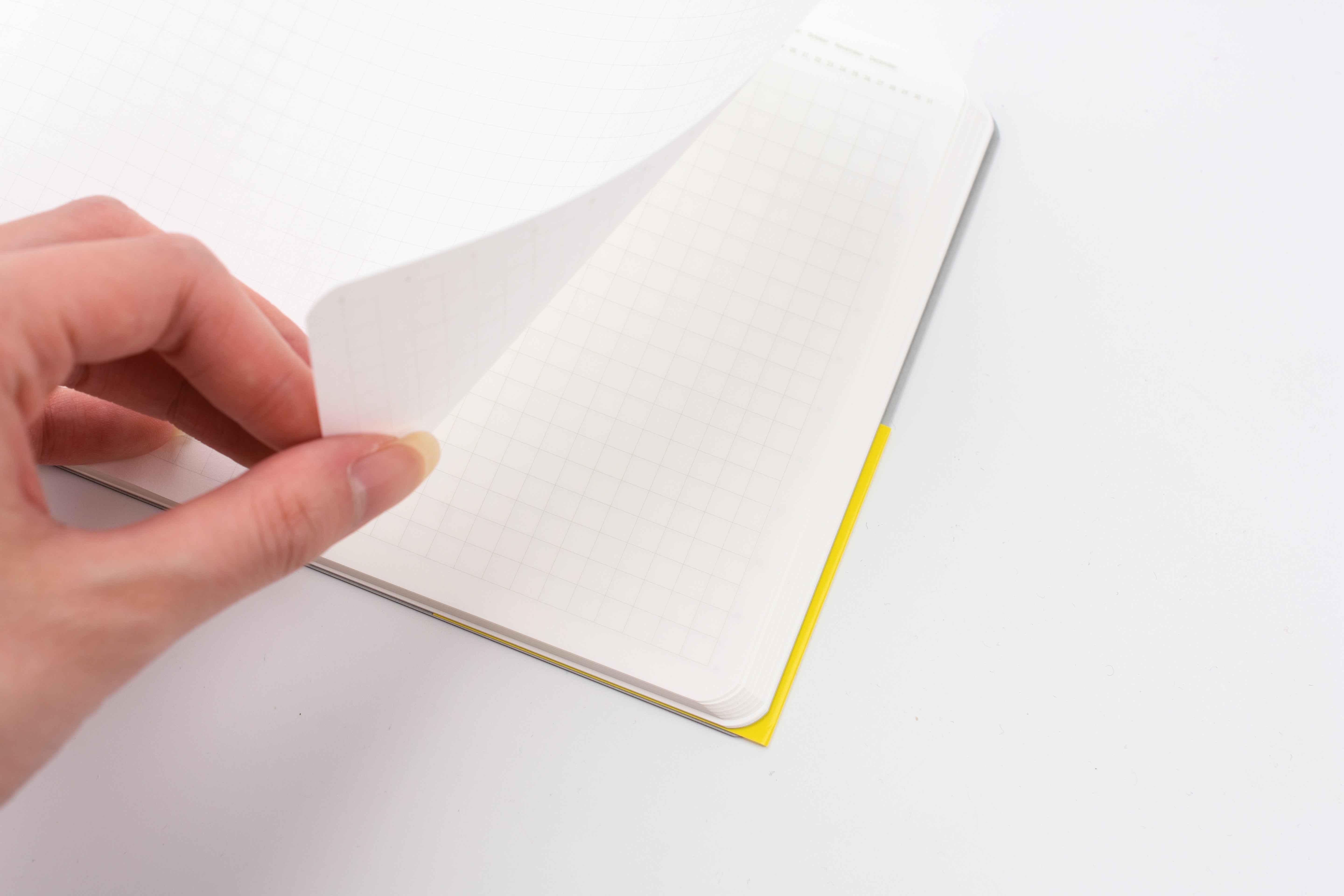 Each page features a 5mm gray grid with subtle markings for the date, day of the week, and time. The dates and hours printed in the top and left-hand margins are discreet, letting you easily use it as a journal or idea book instead of a traditional planner. Finished with a limited-edition colored cover and elegant gold embossing, this notebook is perfect for professionals, creatives, and anyone seeking a stylish, flexible space to organize their thoughts and plans.