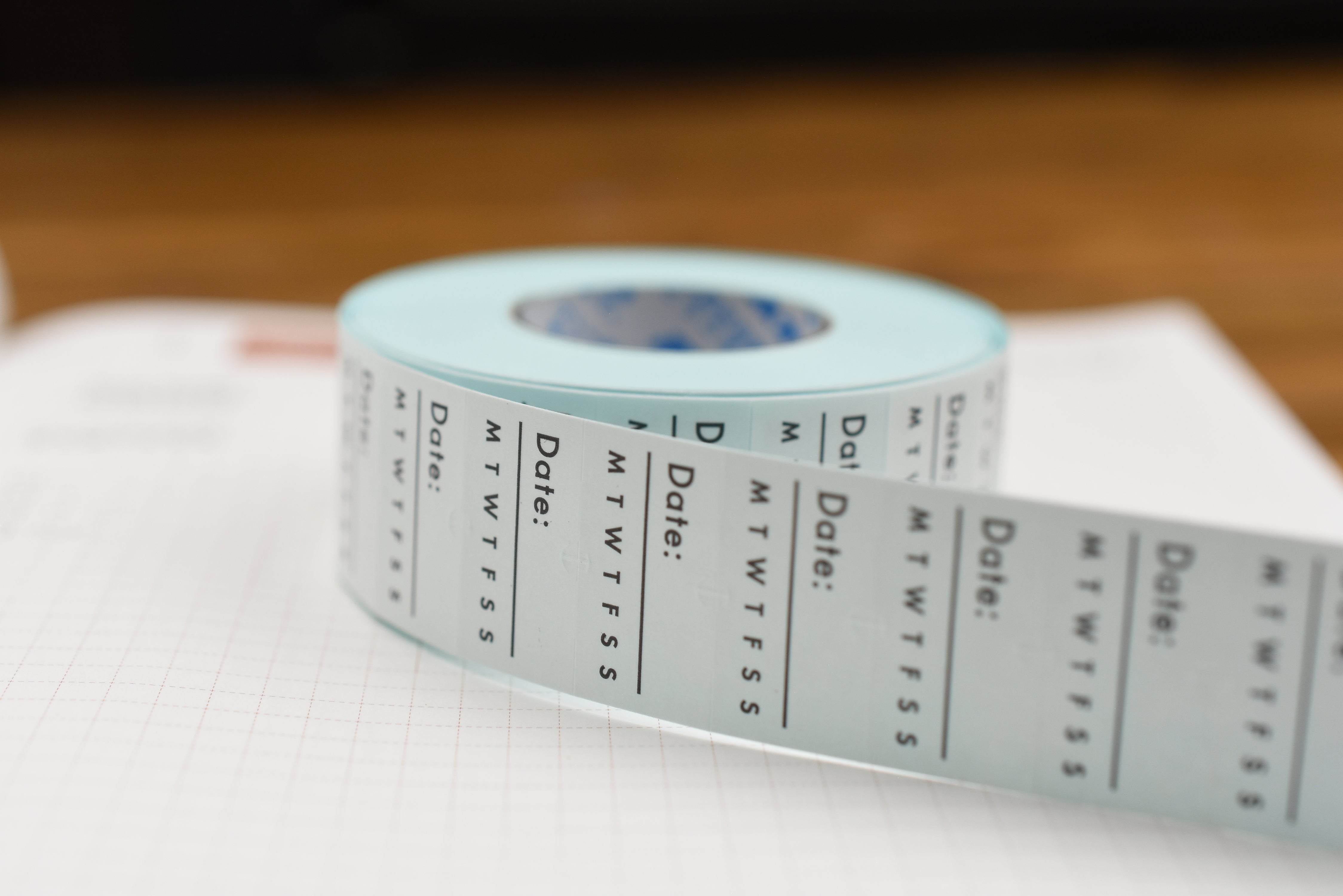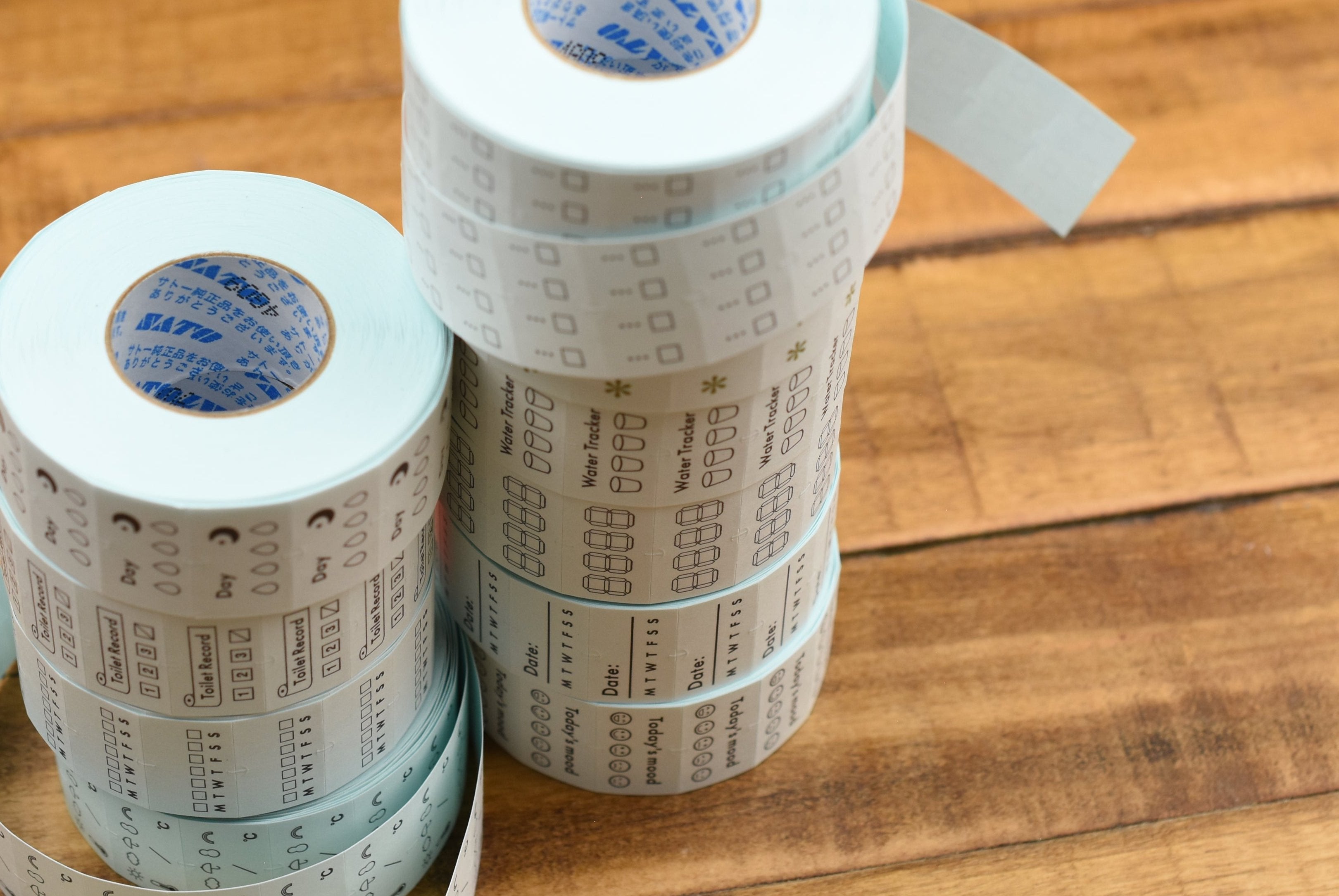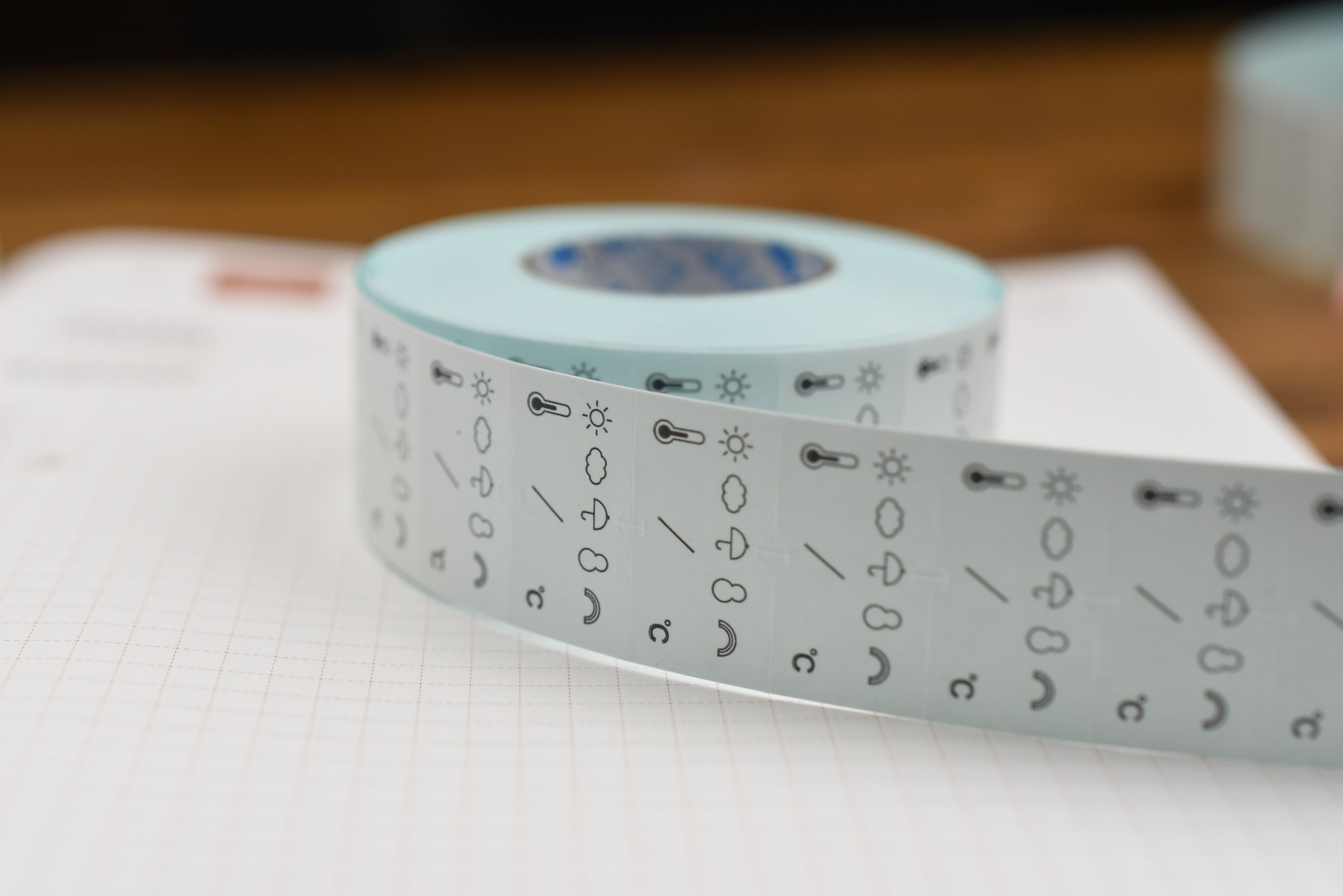 These Planner Label Sticker Rolls are label stickers with StampMarche's original design inspired by price-gun stickers. Originally used for attaching price tags, these label stickers have a design that is perfect for recording in your notebook! You are able to record a variety of different things like temperature, weather, date, habits, time, mood, and more. They are perfect for small notebooks and vertical planner organizers.
