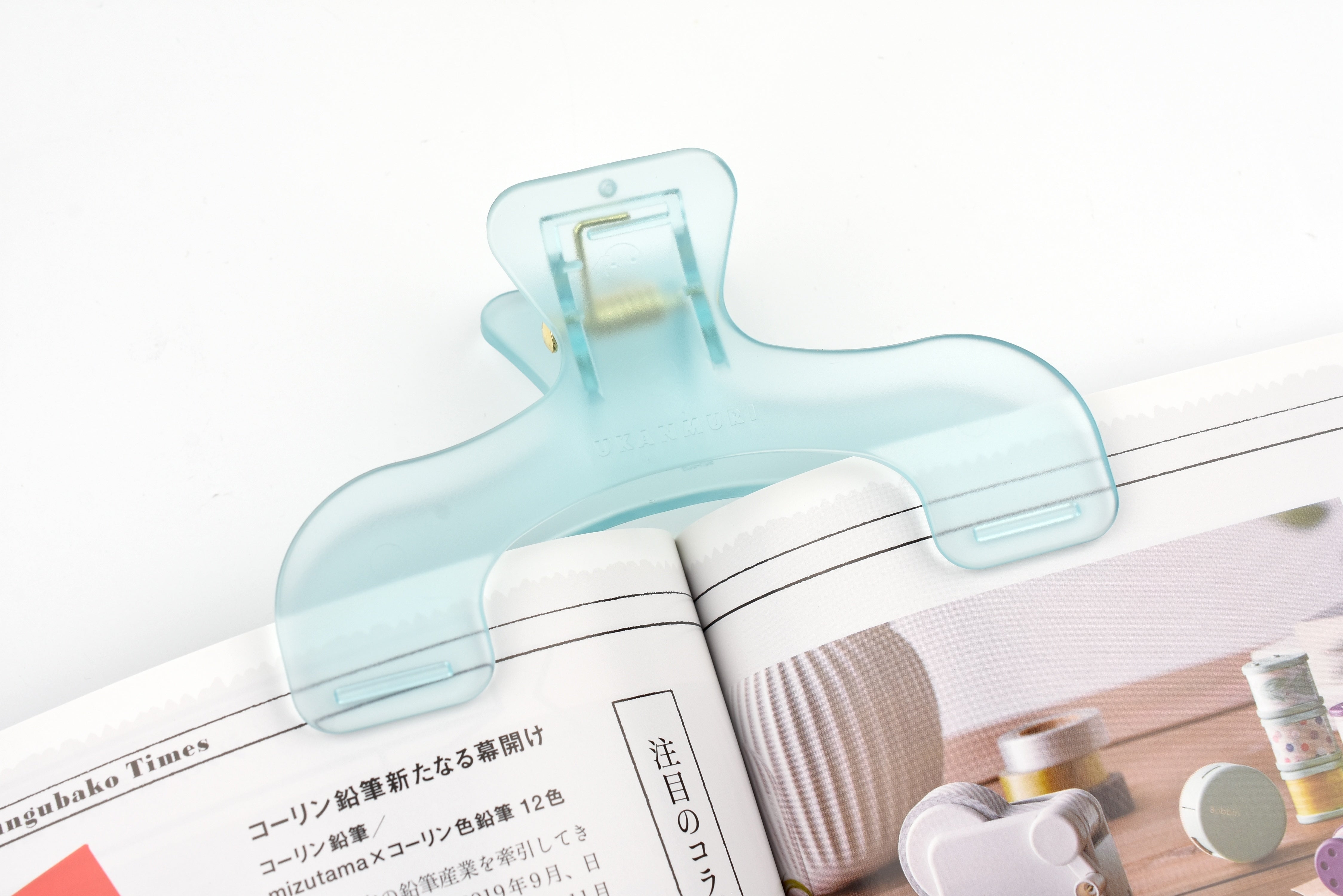 The 2024 award winning Ukanmuri Clip is a stylish and practical book clip that keeps your pages open with ease, perfect for studying, journaling, or hands-free reading. It holds even thick textbooks or reference books securely, opens wide (up to 8 cm!), and features a sheer body that lets you see the content underneath. A gold spring adds a subtle, elegant touch.