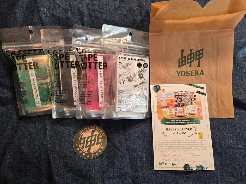 New stationary in the mail is always a great day. I bought the whole set of the Sun-Star Cassette Tape Cutters. They were well packaged and are better than expected. Thick, sturdy plastic, great colors and they work as advertised. Yoseka always finds interesting things to offer, I check their site often for new products. And I appreciate the personal touches they add to my orders. I wish them well and I'm happy they're there, bringing me things I would probably miss out on if not for their web site.