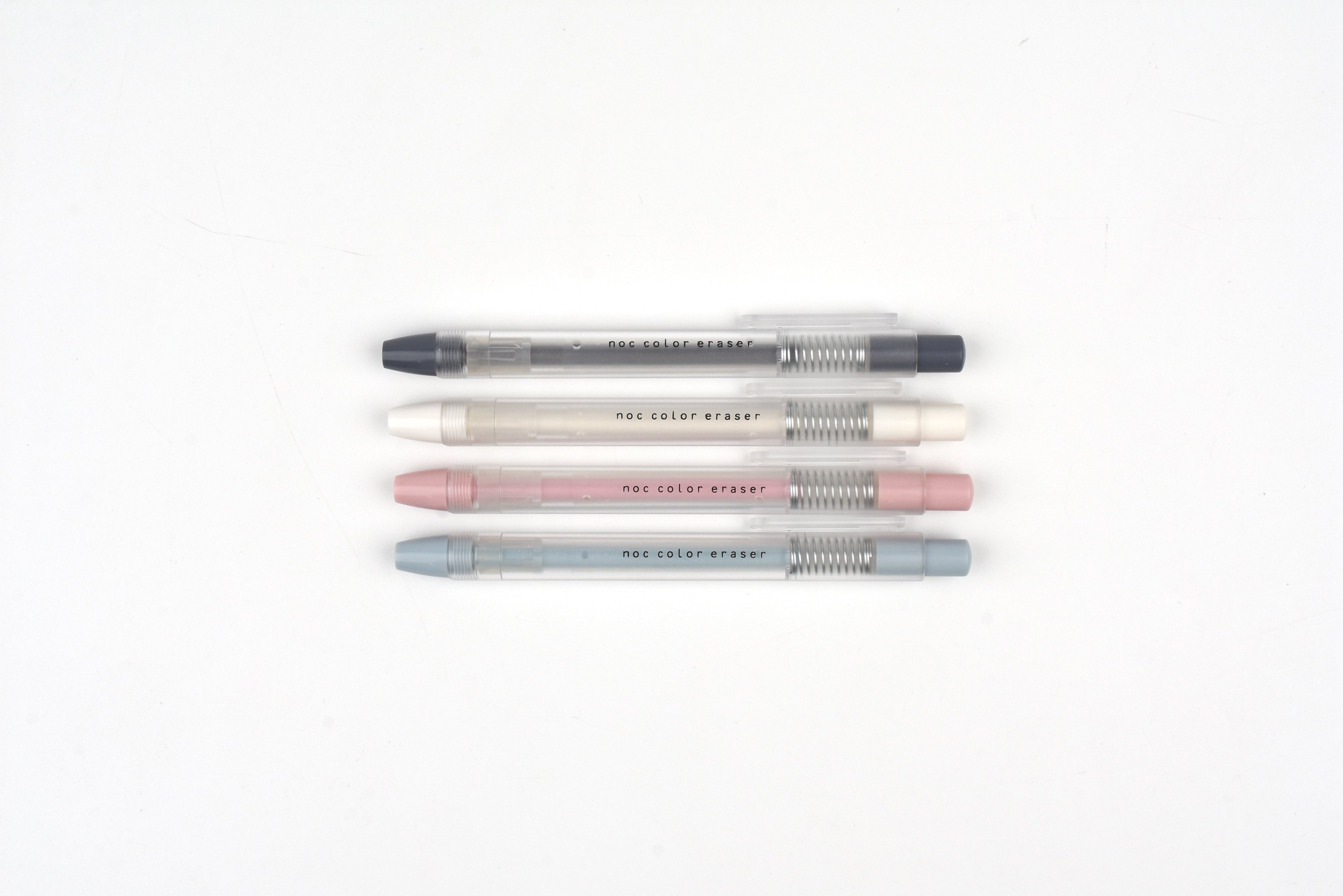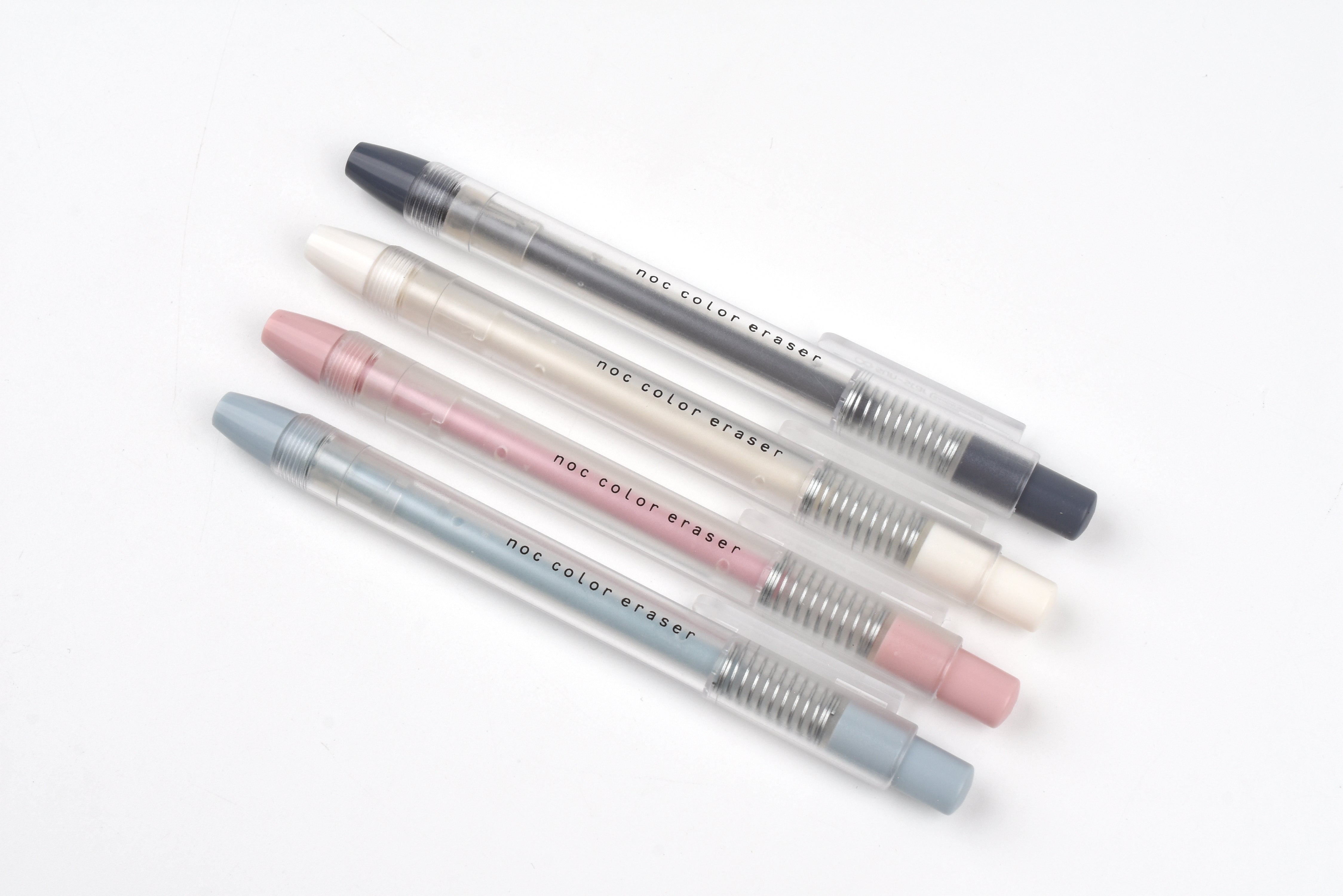 The Sun-Star Noc Color Eraser is a pen-style eraser available in four muted color ways. Simply click the cap to extend and erase. Refills are available in a set of 4 white erasers or a set of 4 in every color.