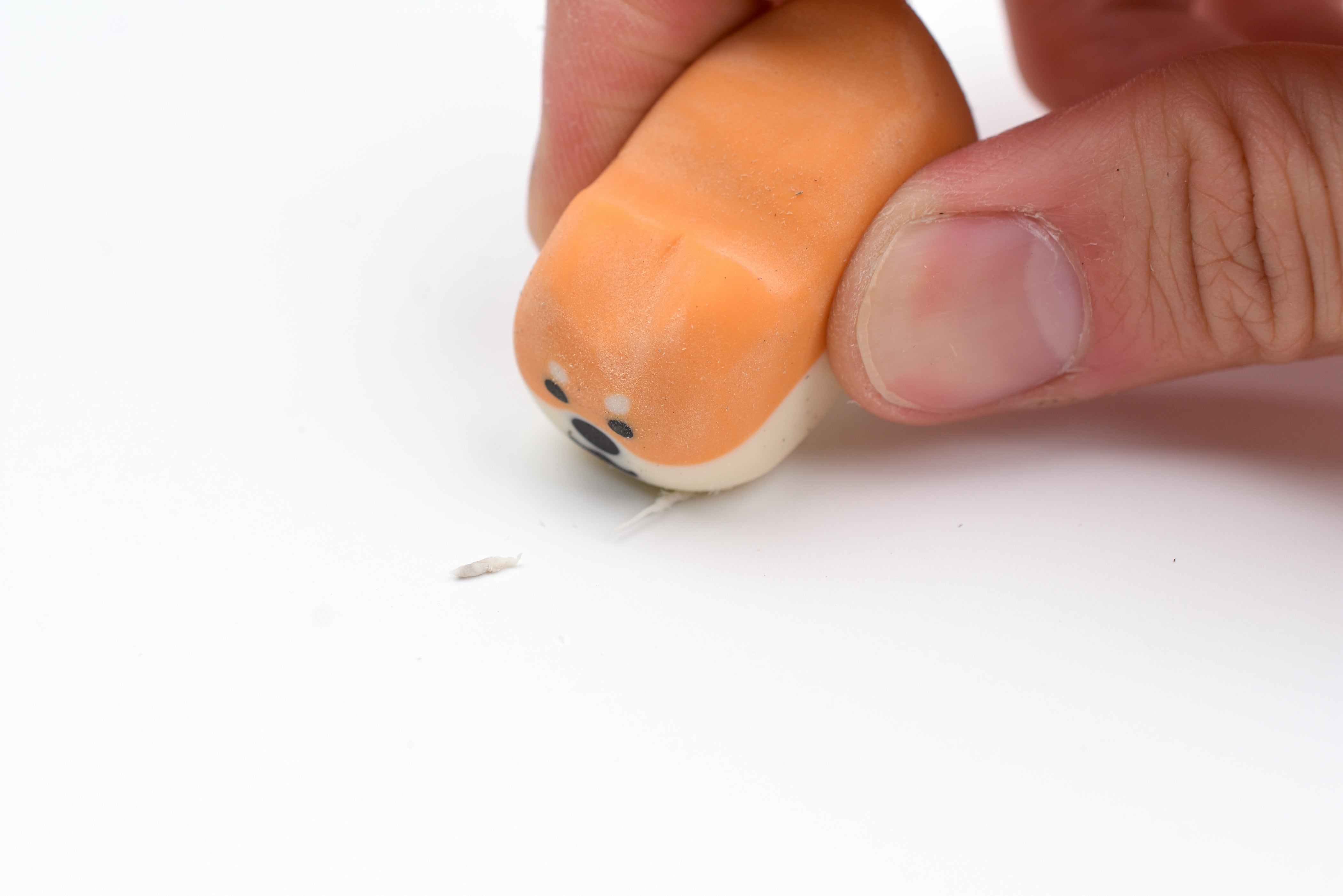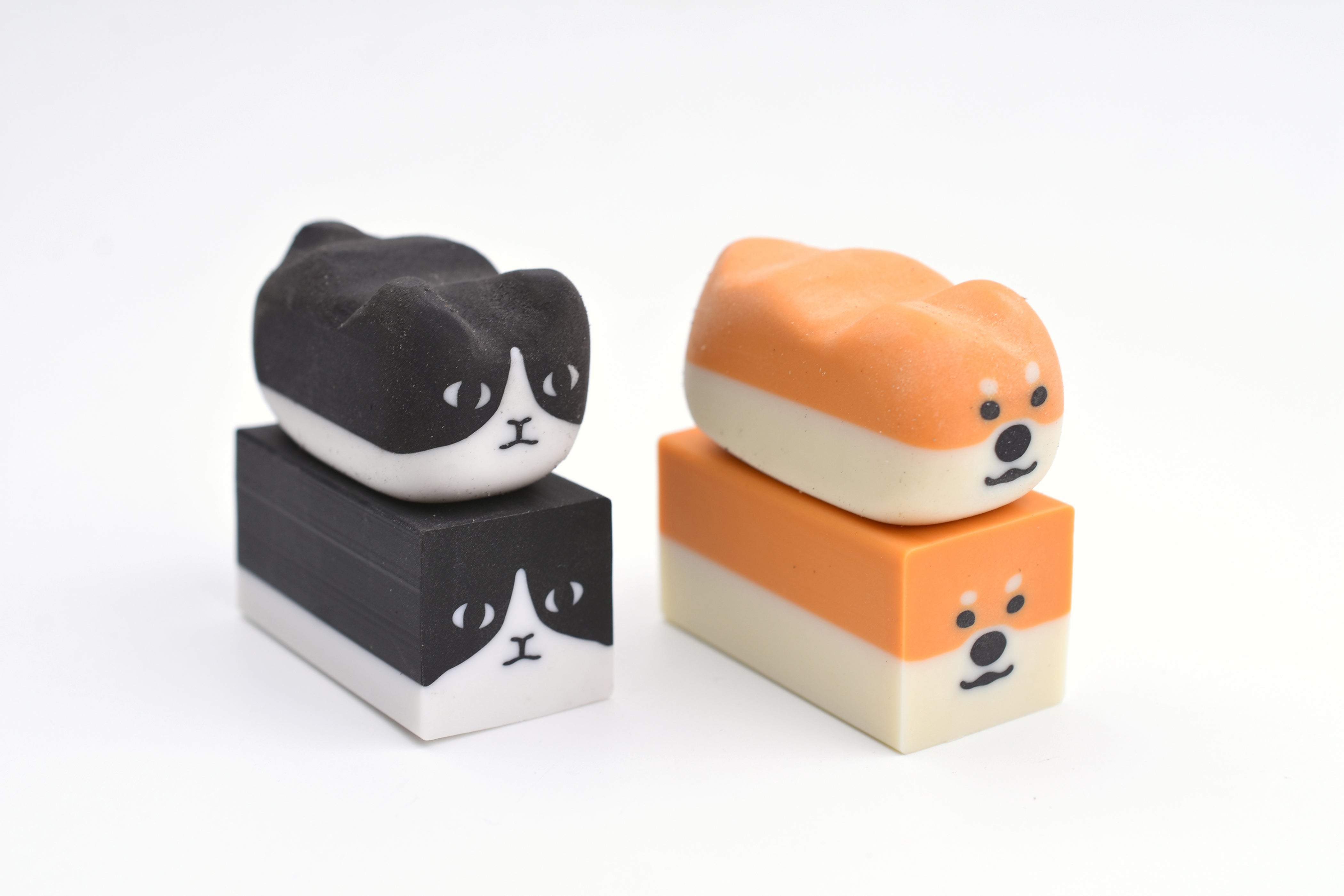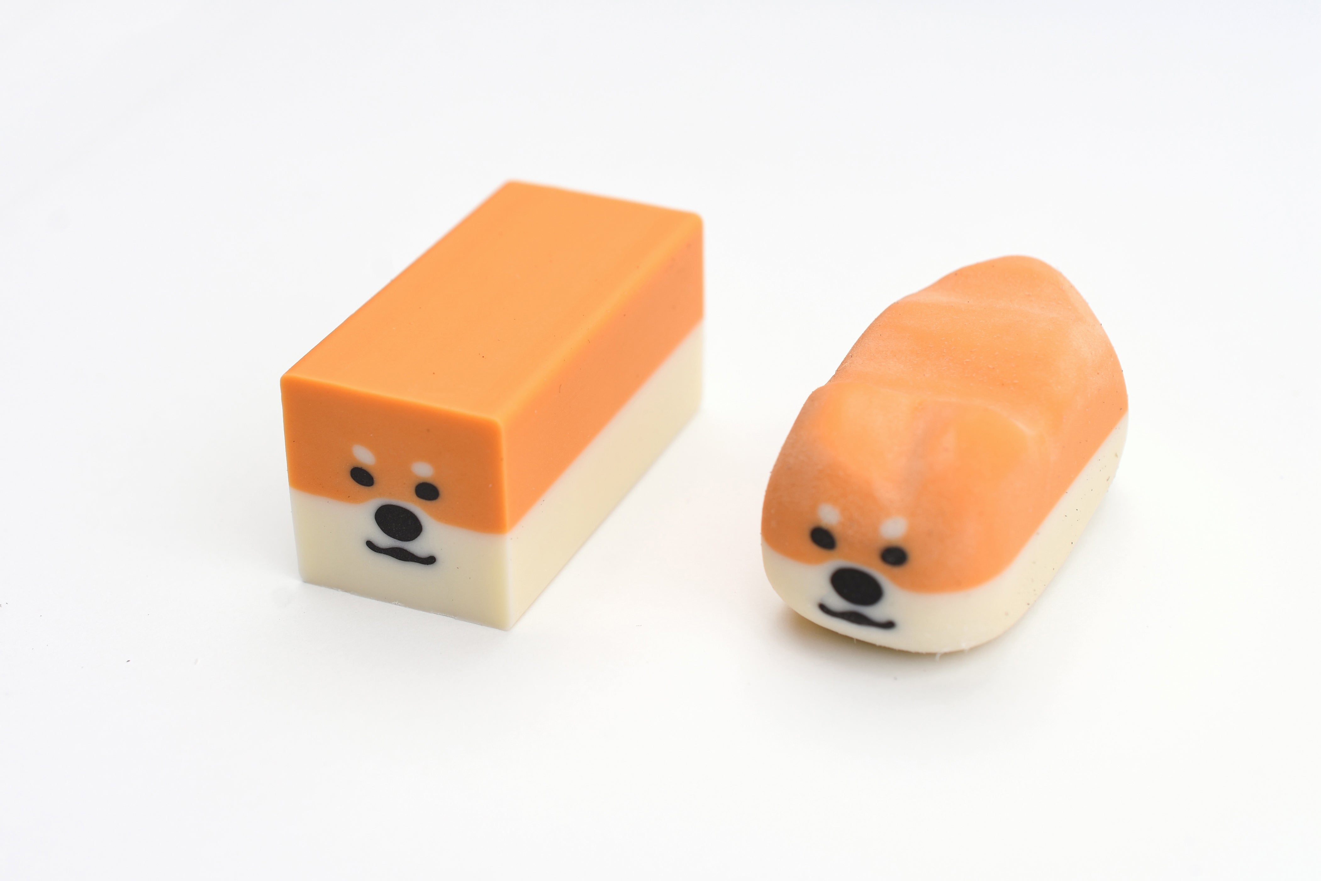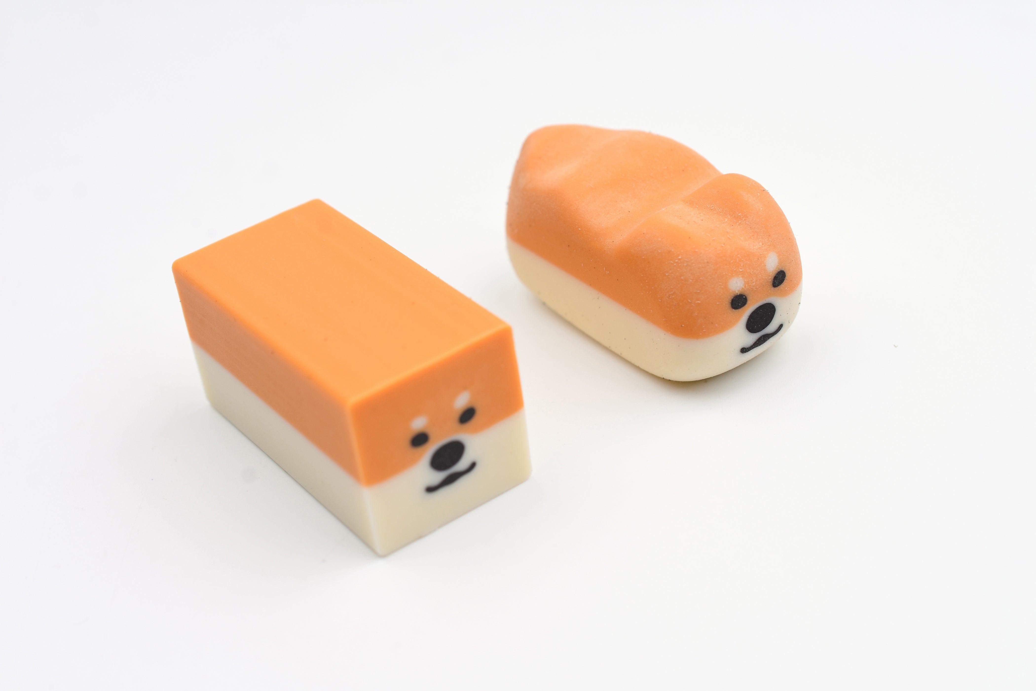 This adorable eraser along with the Cat Eraser is the winner of the Best Stationery Idea Contest held by Sun-Star. It is designed to shift the concept of eraser as consumable product, and transform it into a fun, sculpting project for you to enjoy while erasing. Starting out as a cubic body, you can shape it into your one-and-only shiba dog through the erasing process.