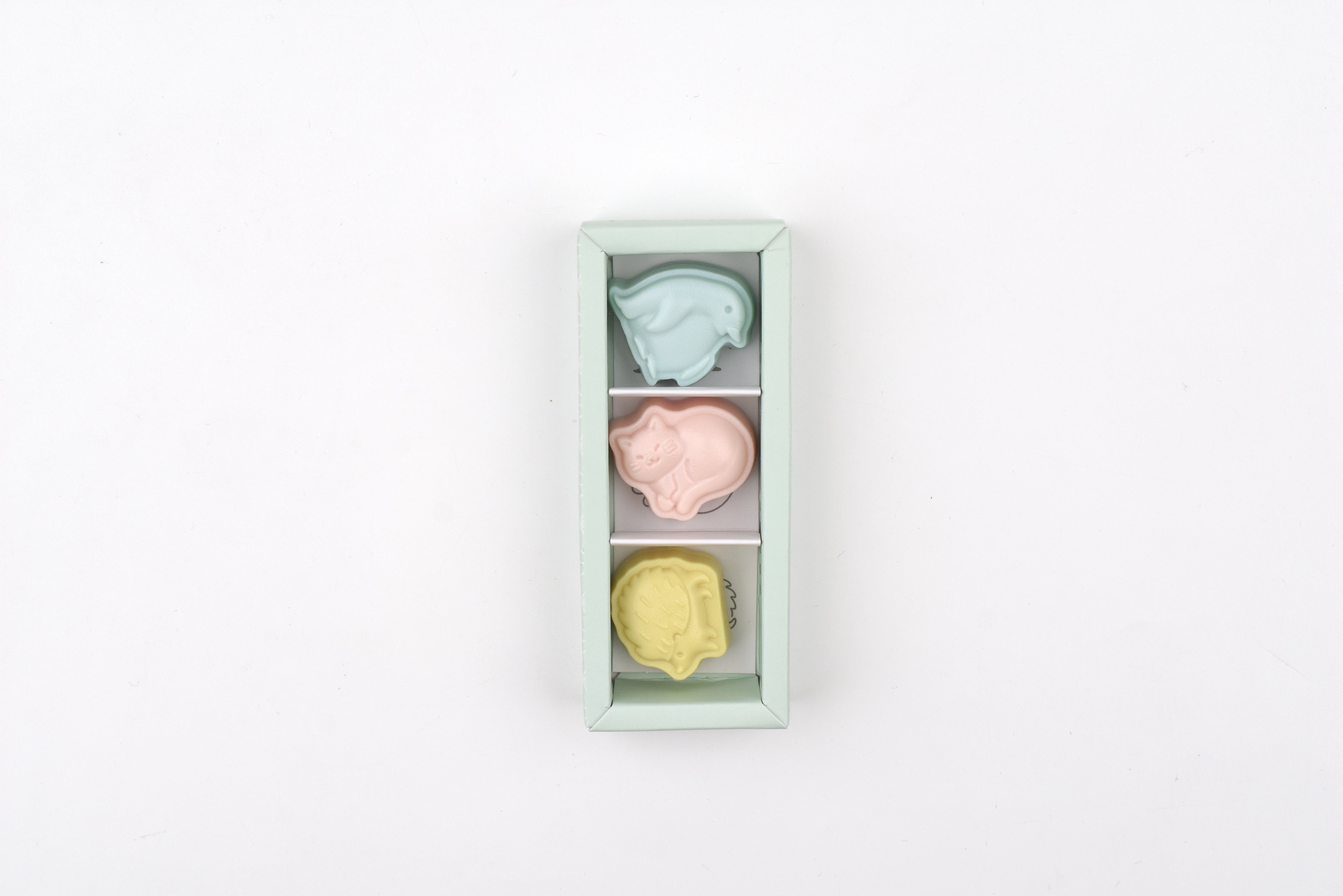 The Cats set includes three animal designs, the Cat, Penguin, and Hedgehog.