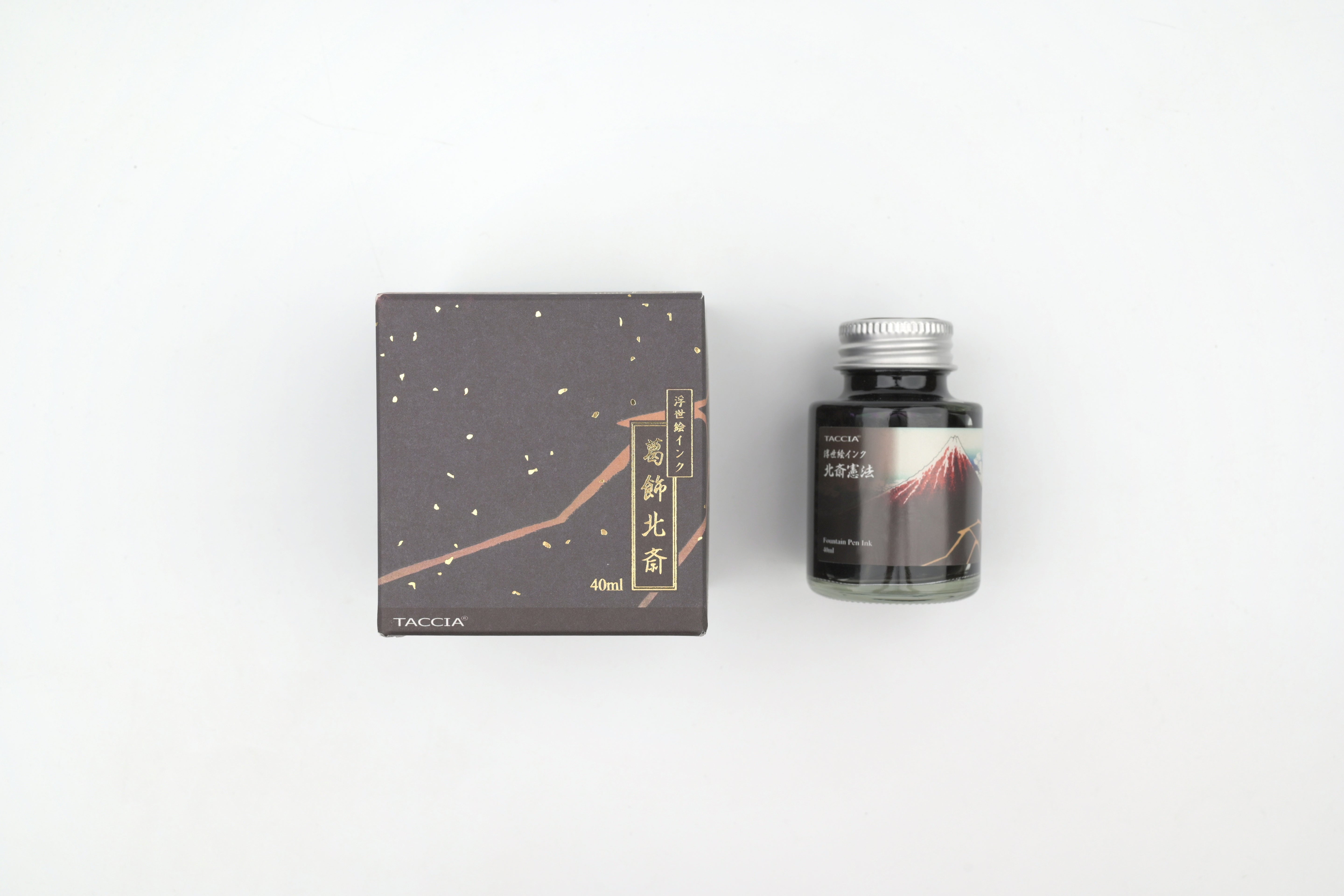 Taccia's Ukiyo-e collection of inks is inspired by the rich colors depicted in Ukiyo-e paintings and woodblock paintings from Japan's Edo Period. Hokusai Katsushika was a leading Ukiyo-e artist, whose works featured landscapes that frequently depicted Mt. Fuji as part of the scenery. This series is specifically inspired by his piece "Thirty-Six Views of Mt. Fuji." While these fountain pen inks are great for writing, they are also meant to be used for drawing purposes.