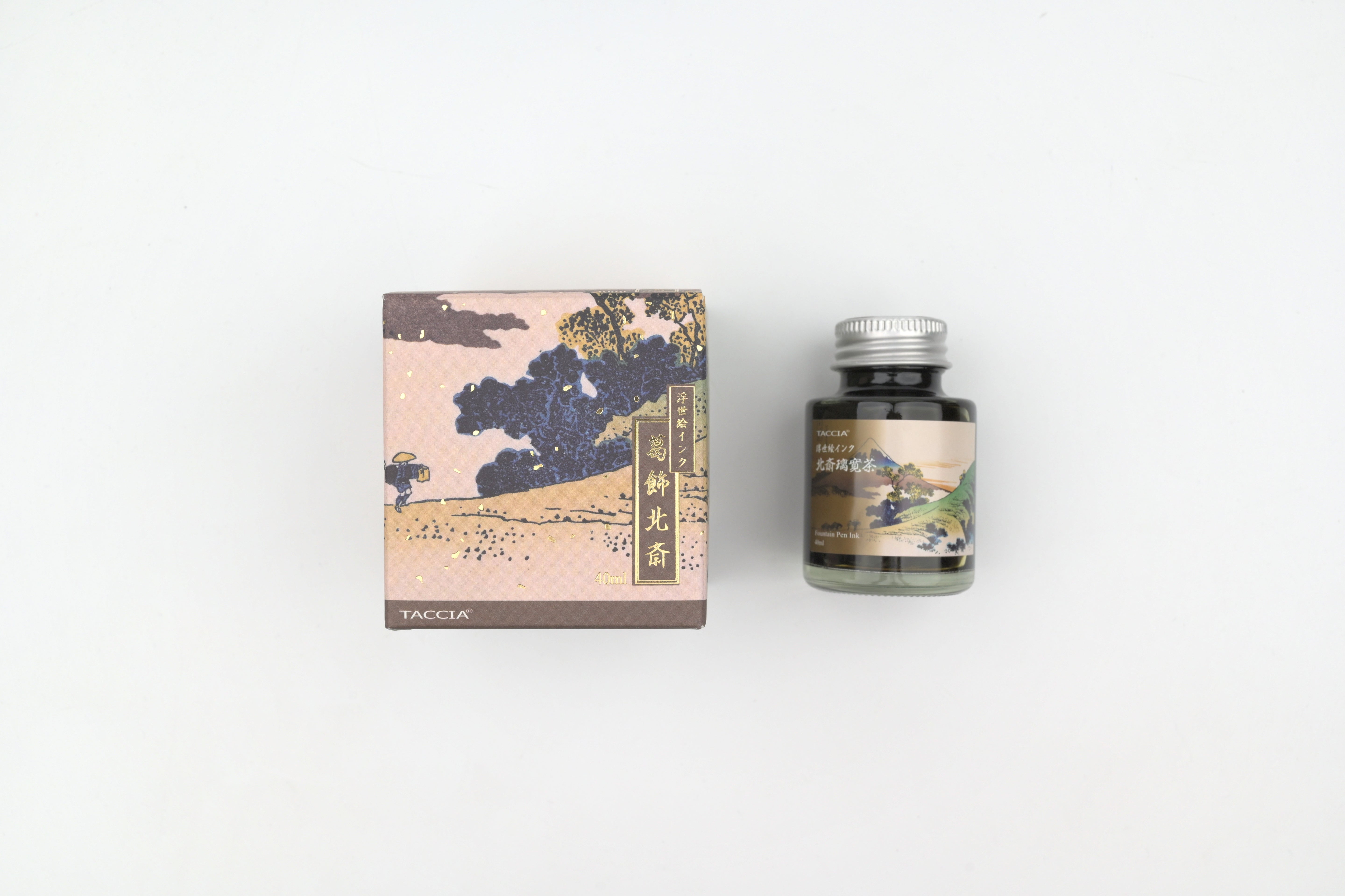 Taccia's Ukiyo-e collection of inks is inspired by the rich colors depicted in Ukiyo-e paintings and woodblock paintings from Japan's Edo Period. Hokusai Katsushika was a leading Ukiyo-e artist, whose works featured landscapes that frequently depicted Mt. Fuji as part of the scenery. This series is specifically inspired by his piece "Thirty-Six Views of Mt. Fuji." While these fountain pen inks are great for writing, they are also meant to be used for drawing purposes.