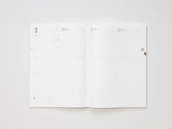 I've tried undated bullet journals, the Hobonichi Cousin, and the Kokuyo Jibun Techo (Regular and Days) in the past. The Take-a-Note A5 is the perfect balance for me at the moment! I don't need a full page per day for planning, but all 7 days squeezed into one spread is too little space for my larger handwriting, so I like that this book splits the week among two spreads. I also love that the hour markings cover the full 24 hours (especially as a late sleeper) and provide 2 lines per hour for 30 minute increments. Excellent paper quality that works with many kinds of pens, and sewn binding that opens flat on every page.
