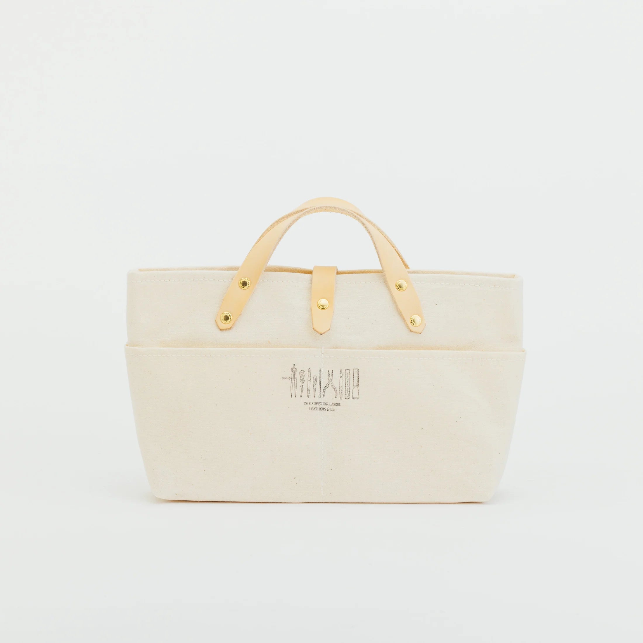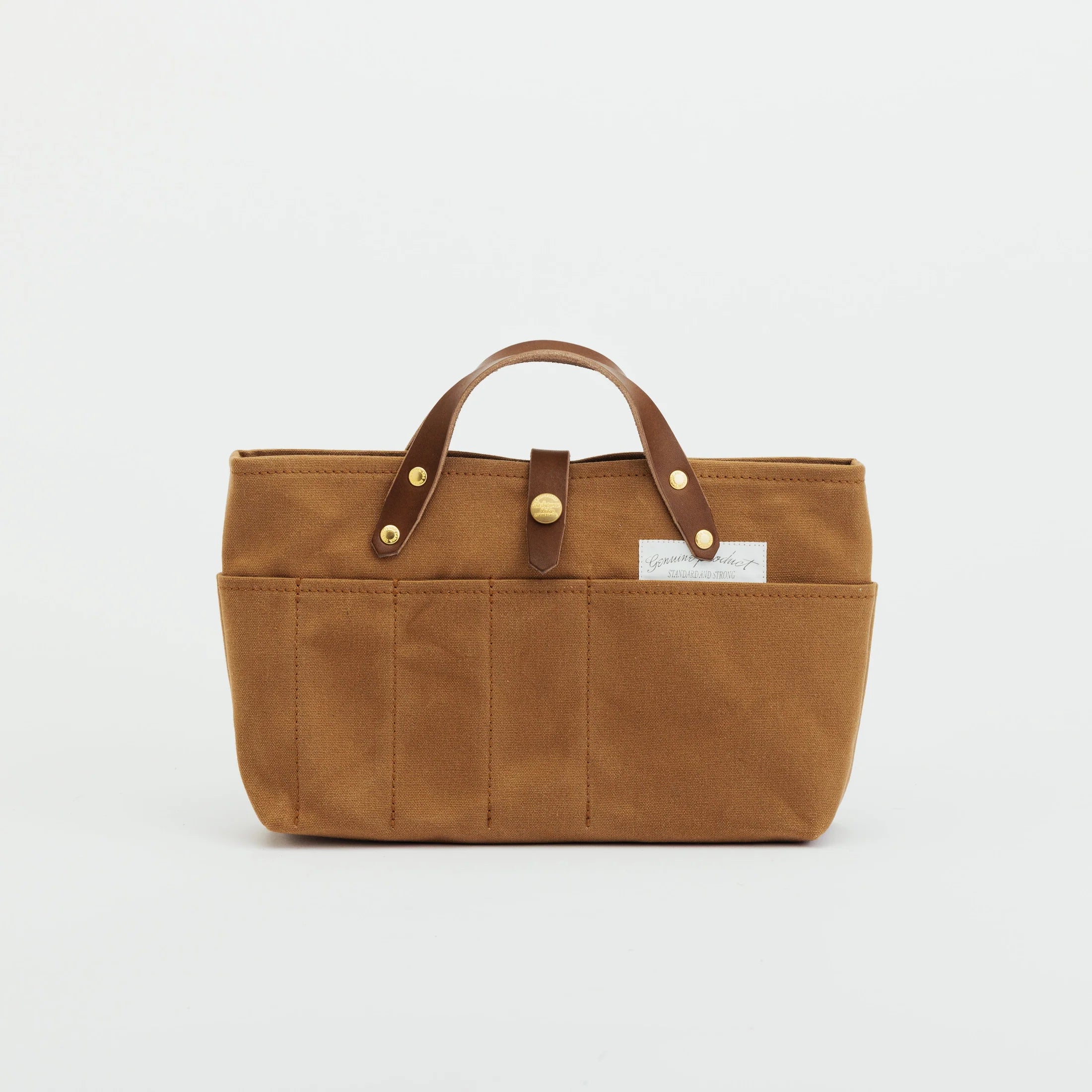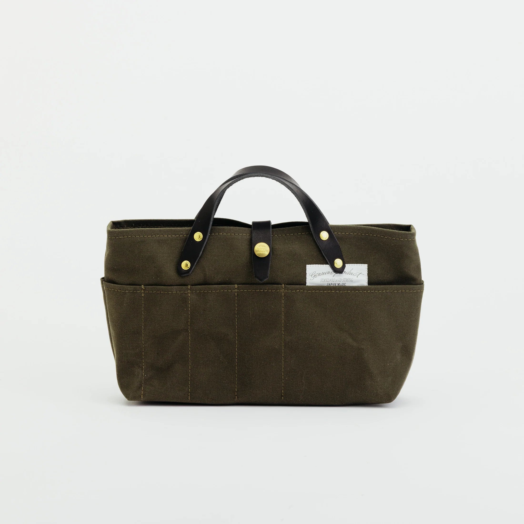 The Superior Labor Paraffin Canvas Mini Bag is made from lightweight, structured, water-resistant paraffin coated that holds its shape beautifully. It has 5 pockets on one side and 2 on the other–made to hold the perfect amount of items you might need to take from room to room or from home to a cafe. Despite its slim profile, the bag's gusset is firm enough for the bag to stand on its own, making it a great desk or room addition.