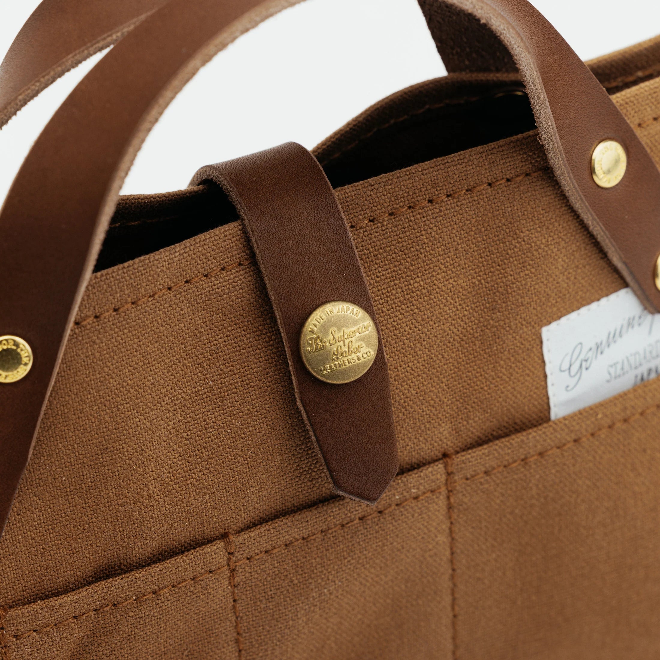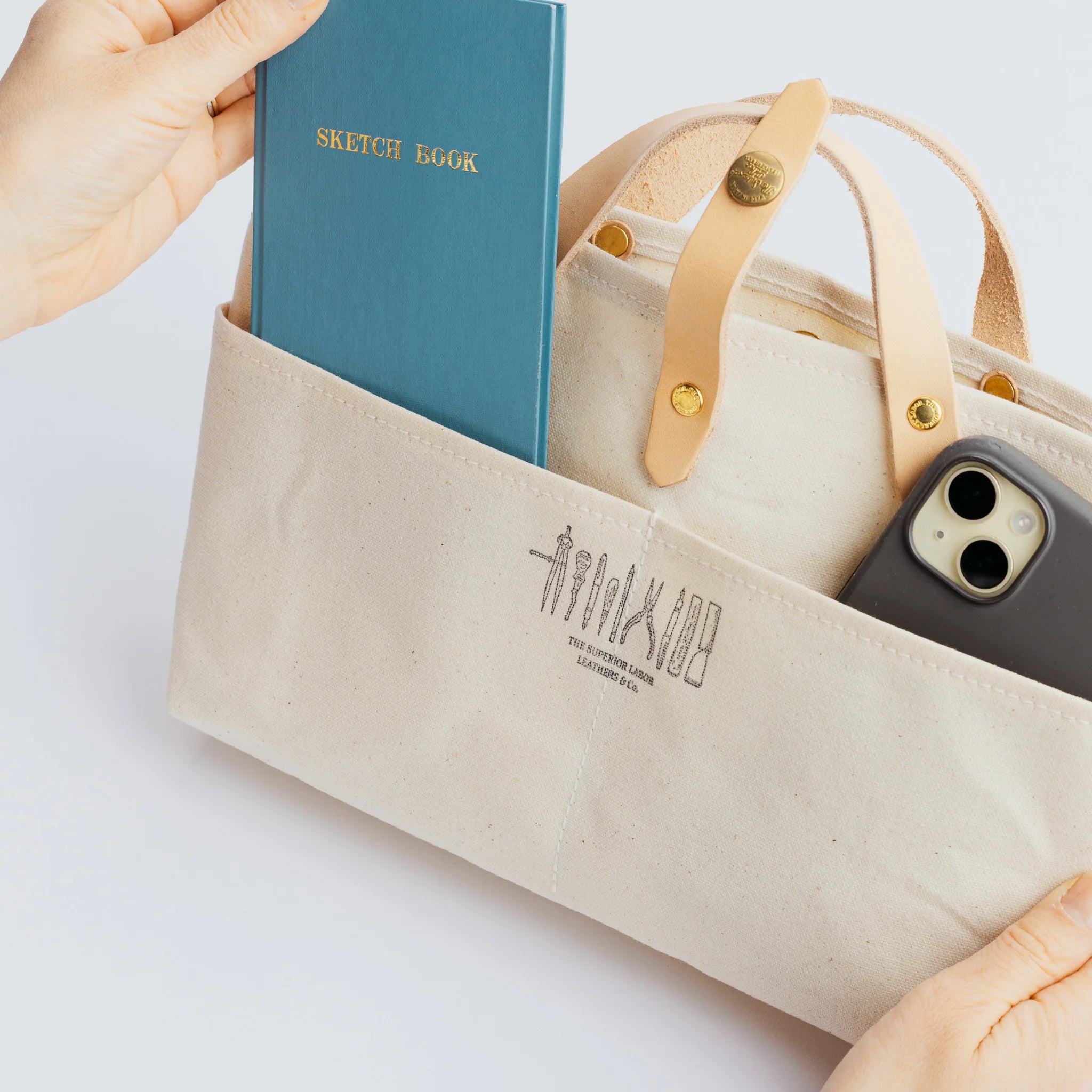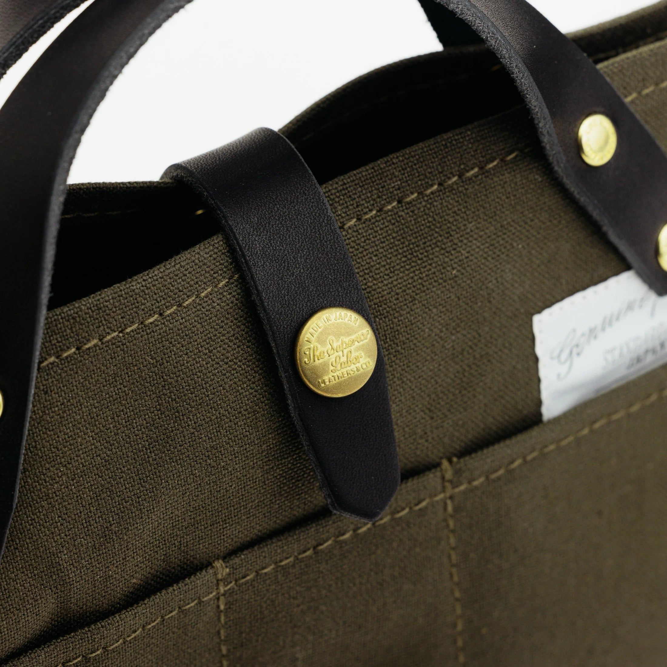 The Superior Labor Paraffin Canvas Mini Bag is made from lightweight, structured, water-resistant paraffin coated that holds its shape beautifully. It has 5 pockets on one side and 2 on the other–made to hold the perfect amount of items you might need to take from room to room or from home to a cafe. Despite its slim profile, the bag's gusset is firm enough for the bag to stand on its own, making it a great desk or room addition.