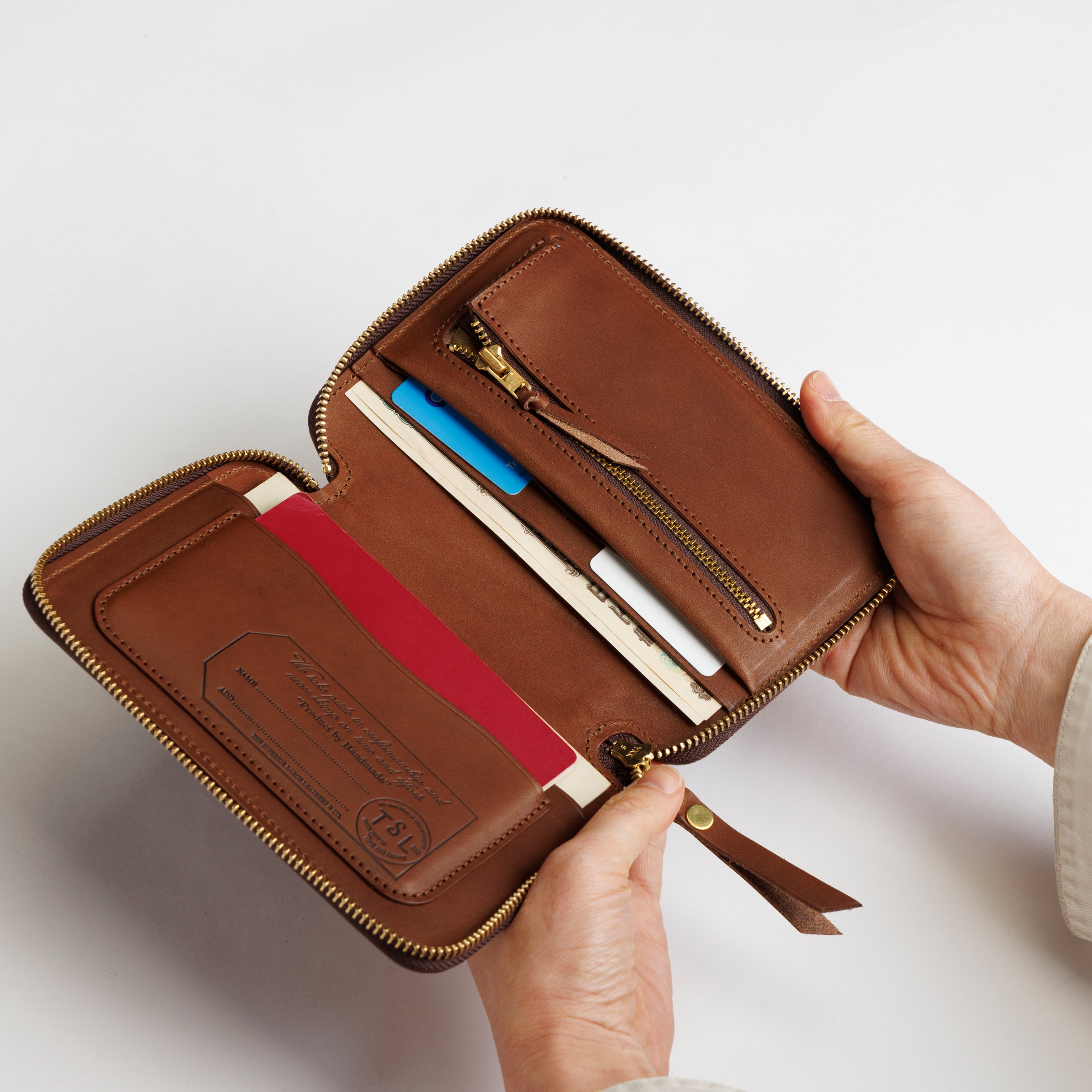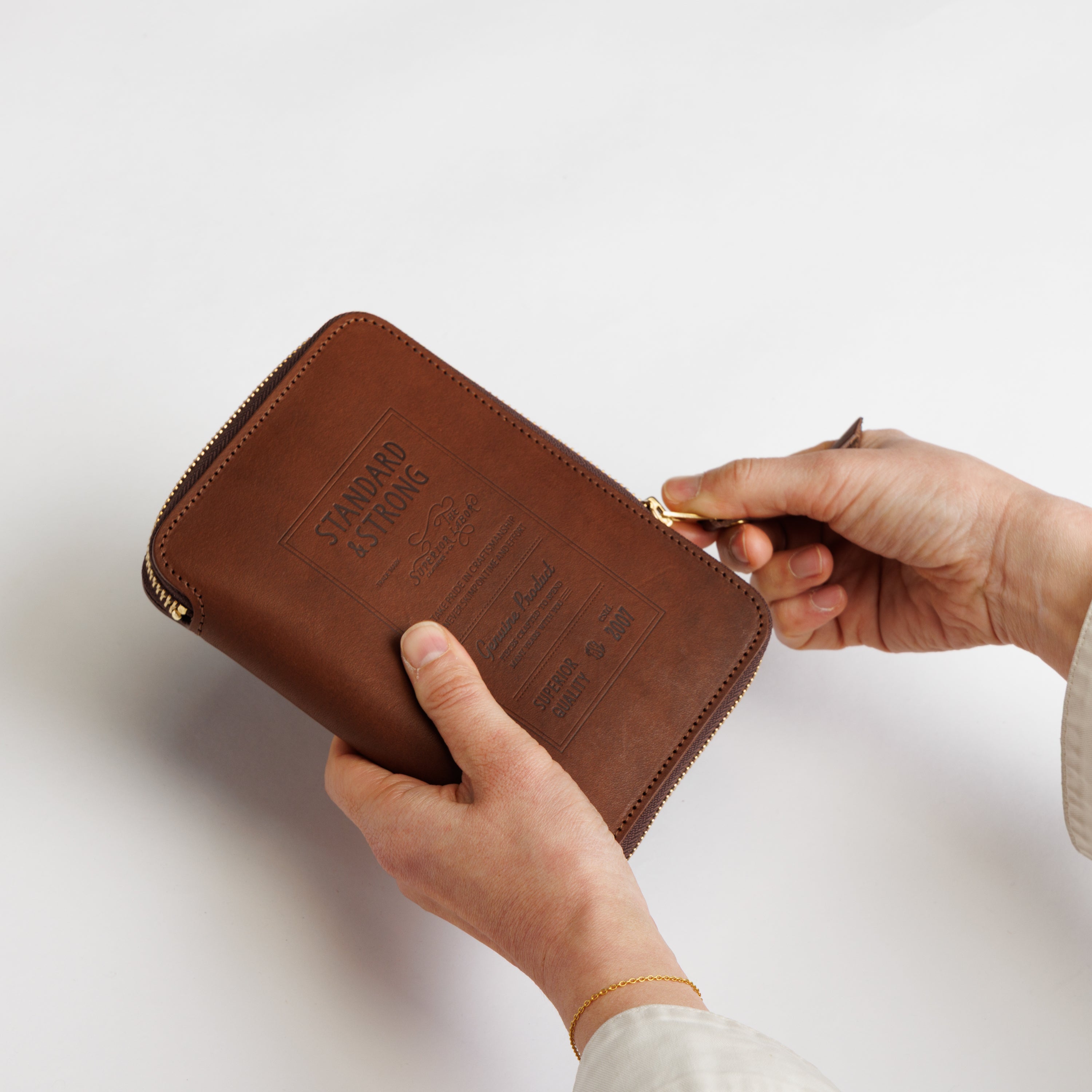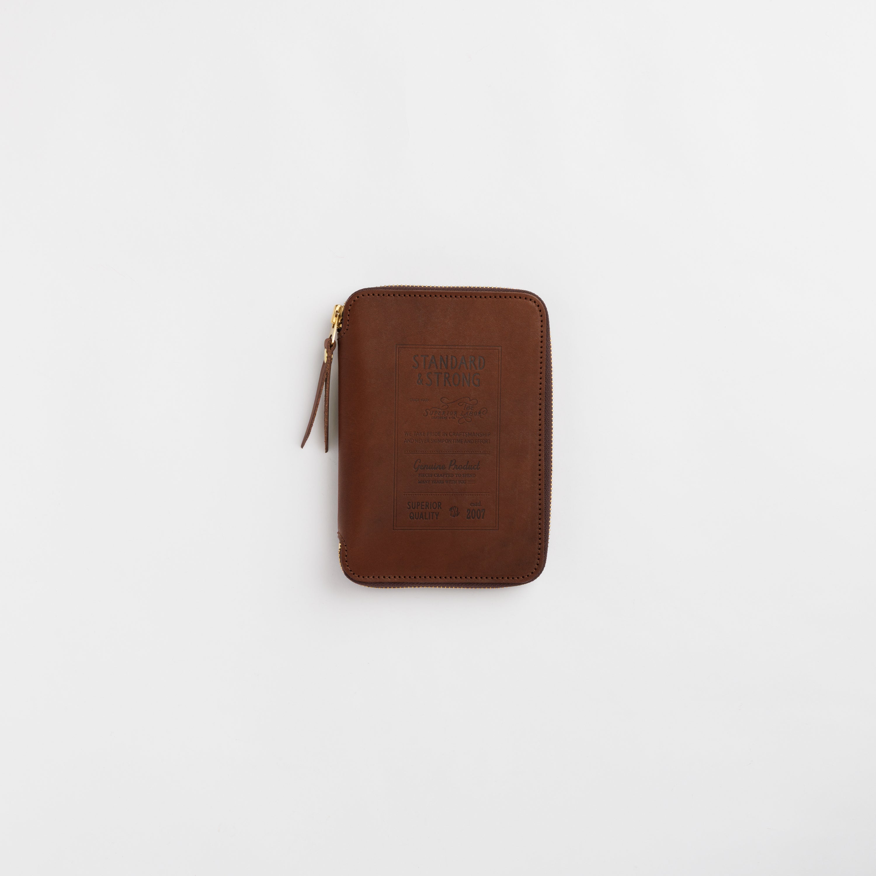 Featuring a bold embossed logo on the cover, this compact zip organizer pairs refined craftsmanship with a relaxed, everyday character. Inside, it includes one zipper pocket, two card slots, and three open pockets to organize all of your essentials. The A6 size also fits standard A6 notebooks—simply slide the front and back covers into the larger pockets on each side to use it as a notebook cover.