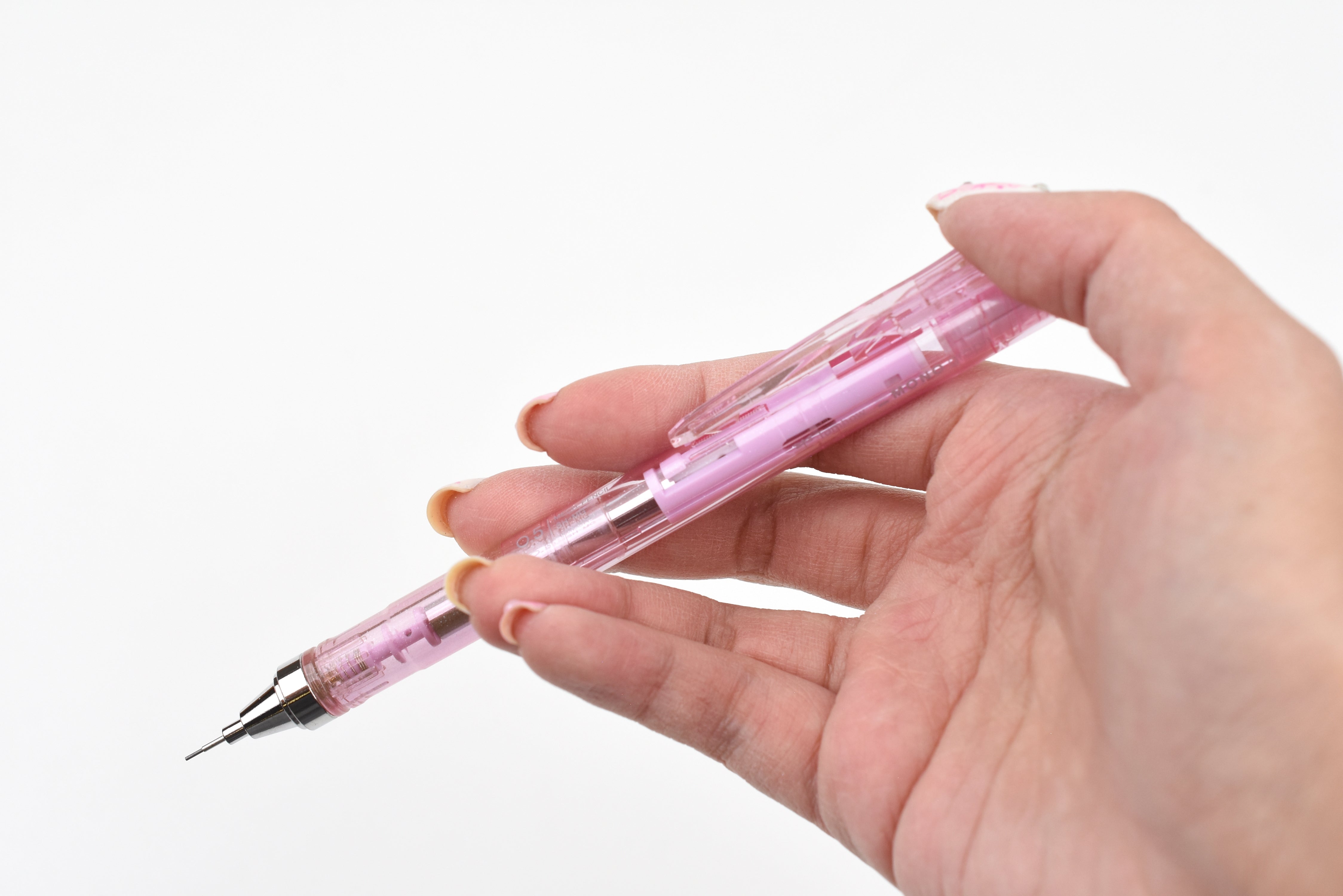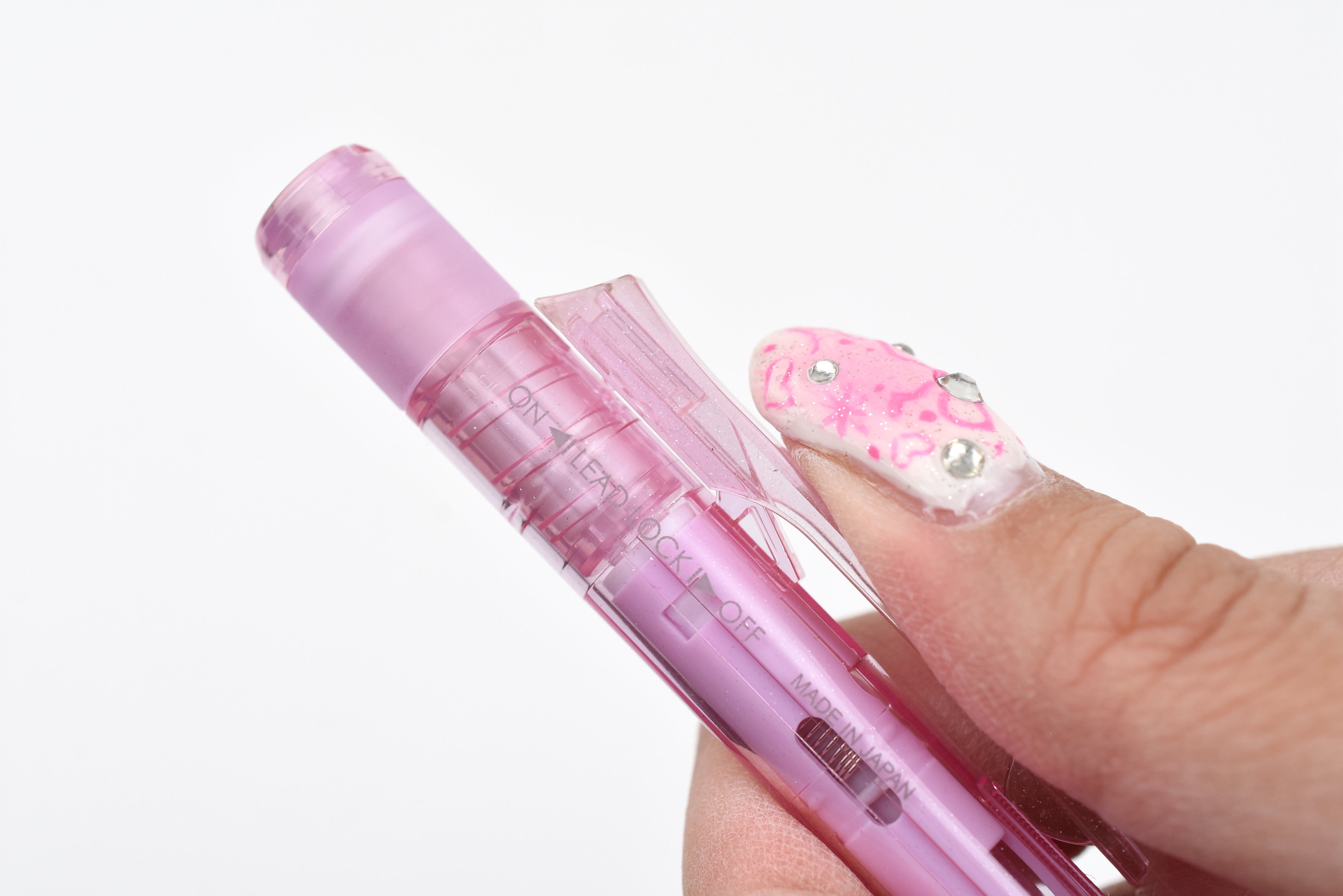 Thoughtful functionality complements the shimmering exterior. A twist-up MONO eraser sits at the top, while lead can be advanced with a gentle shake using the "Frenock" mechanism or by pressing the clip for more controlled use. When the clip is pushed upward, the "Flatlock" system secures the mechanism to prevent accidental lead advancement during storage. Together, these details create a smooth, intuitive writing experience that balances beauty with practicality.