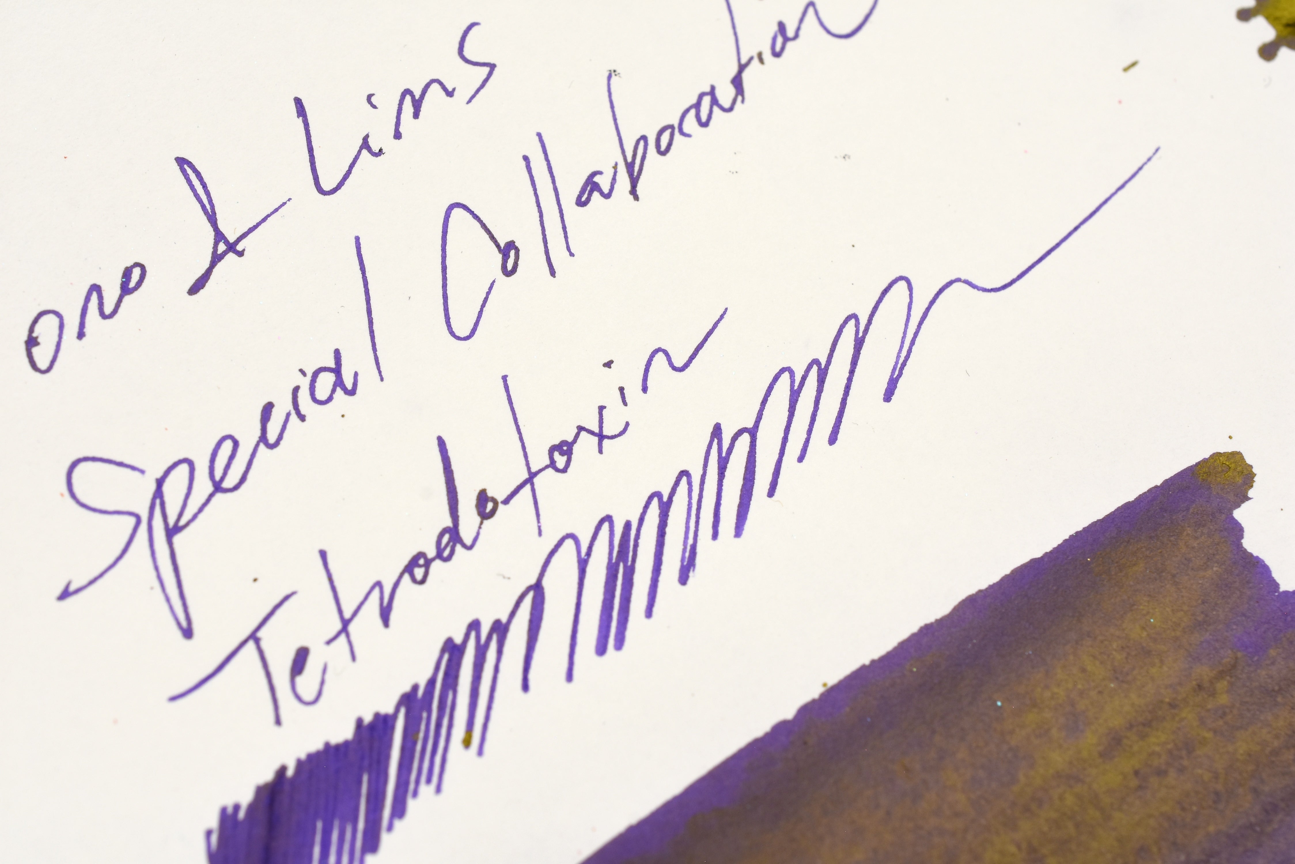 "Do not let your fountain pens drink this ink! It's poisonous!" Being the highest and most viscous amount of shimmer particles added into an ink in the history of Tono & Lims, the Poison and Toxin collection is produced only for glass pen use. Inspired by the vibrant colors in nature that serve as a warning to predators, these ink colors are named after poisonous plants, venomous animals, or different types of toxins.