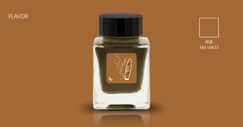 Cigar is a brown, scented ink in the Adult Night series with a fragrance reminiscent of cigar. The Adult Night Line is a series of alluring fountain pen inks inspired by a fun night out for grown-ups. You may find interesting themes such as coffee, cigar, or more in this collection, and some even come with a pleasant scent that enriches your writing experience.