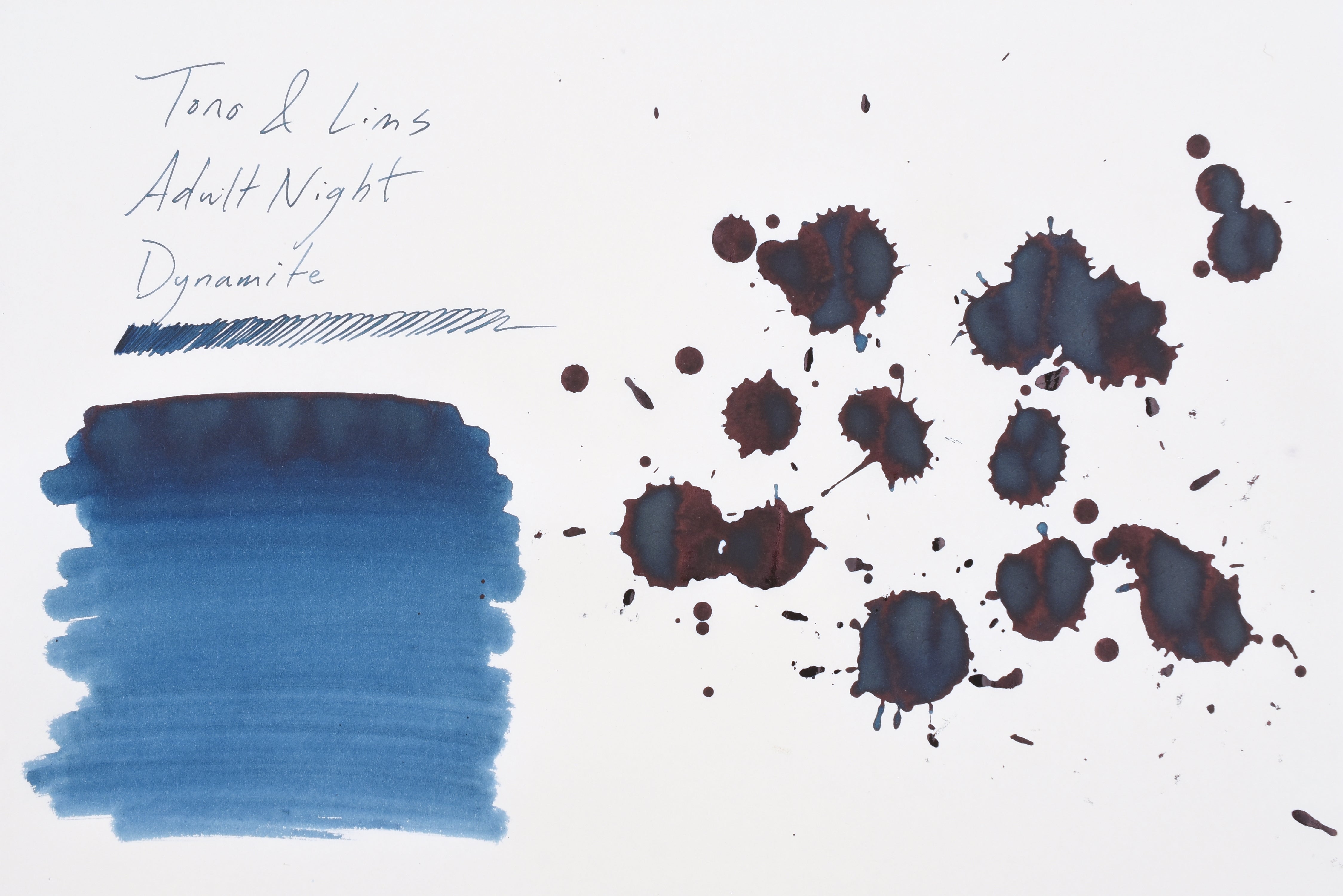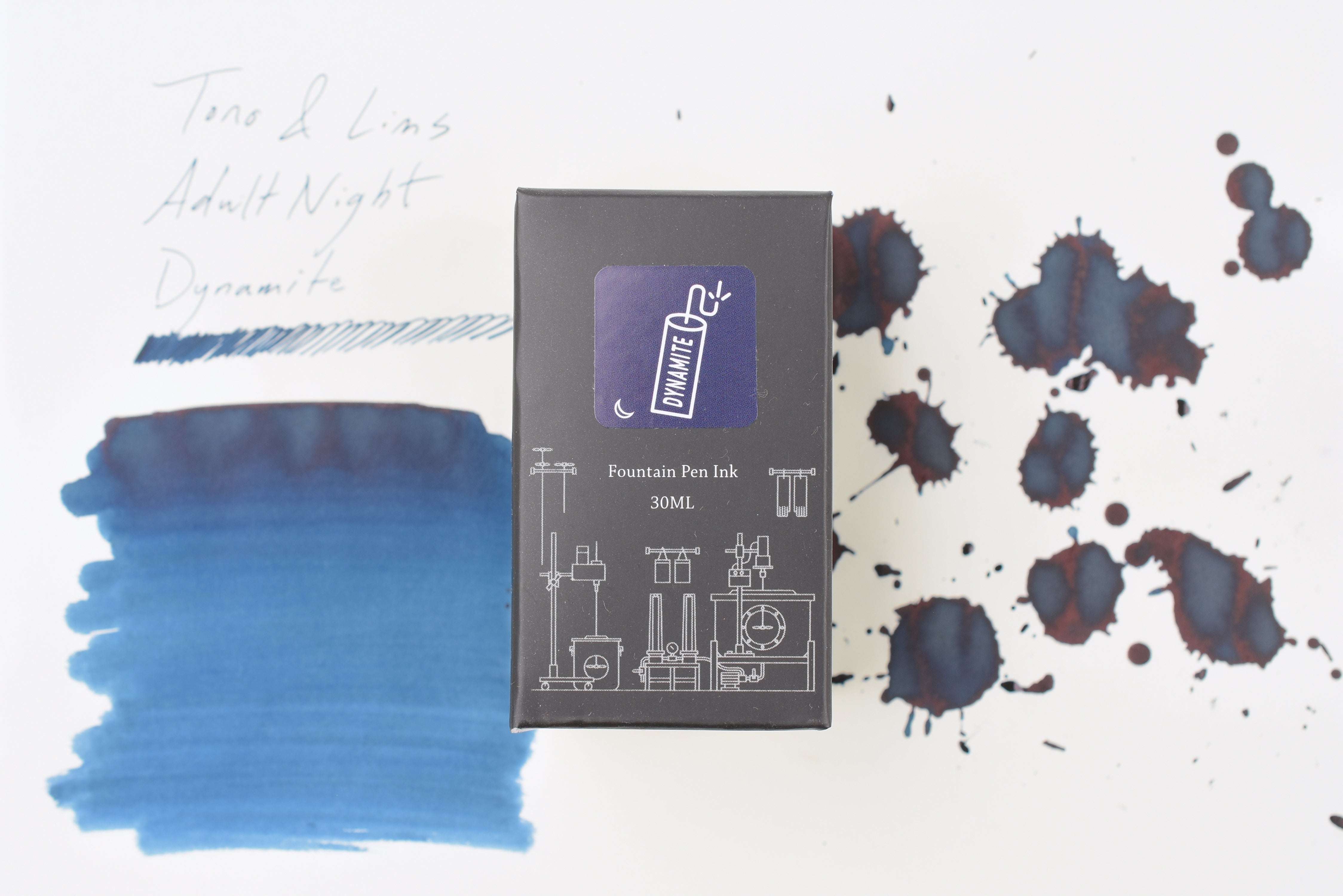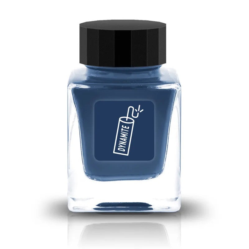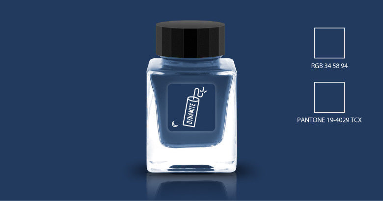 Dynamite is a blue, unscented ink by Tono & Lims in the Adult Night series. The Adult Night Line is a series of alluring fountain pen inks inspired by a fun night out for grown-ups. You may find interesting themes such as coffee, cigar, or more in this collection, and some even come with a pleasant scent that enriches your writing experience.