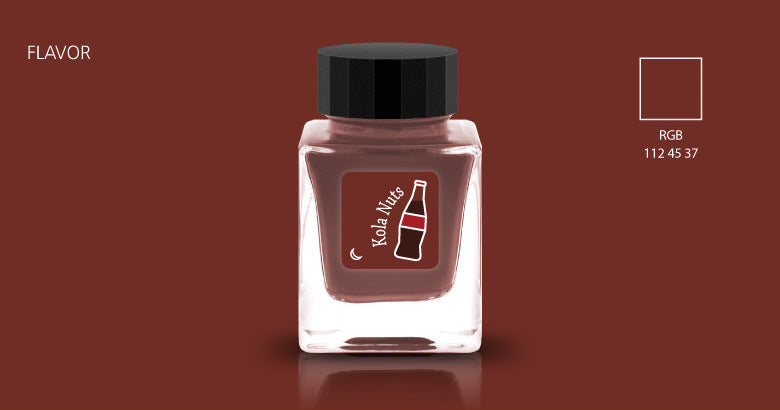 Kola Nuts is a deep red, scented ink in the Adult Night series with a fragrance reminiscent of cola. The Adult Night Line is a series of alluring fountain pen inks inspired by a fun night out for grown-ups. You may find interesting themes such as coffee, cigar, or more in this collection, and some even come with a pleasant scent that enriches your writing experience.