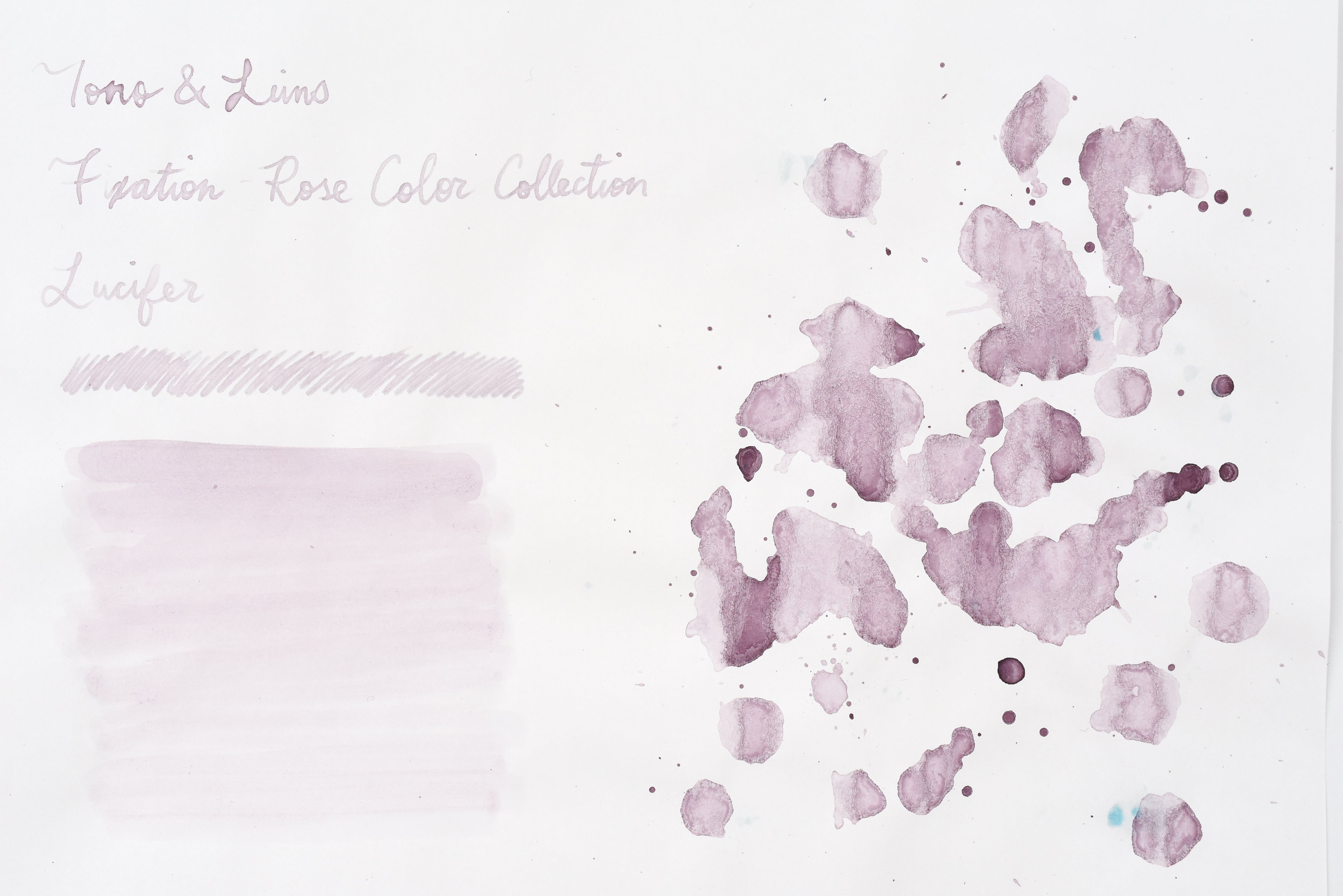 The Fixation series is a collection of pigmented, waterproof fountain pen inks. They're known for their high quality, vibrant colors and are high resistant to fading and bleeding. The Rose Color Collection is an extended line under the Fixation series featuring some pastel-toned, pigment ink colors. These colors are named after different types of garden rose, including Ariel in a light pink color; Uriel as pale yellow roses; and Lucifer in a pastel violet tone.
