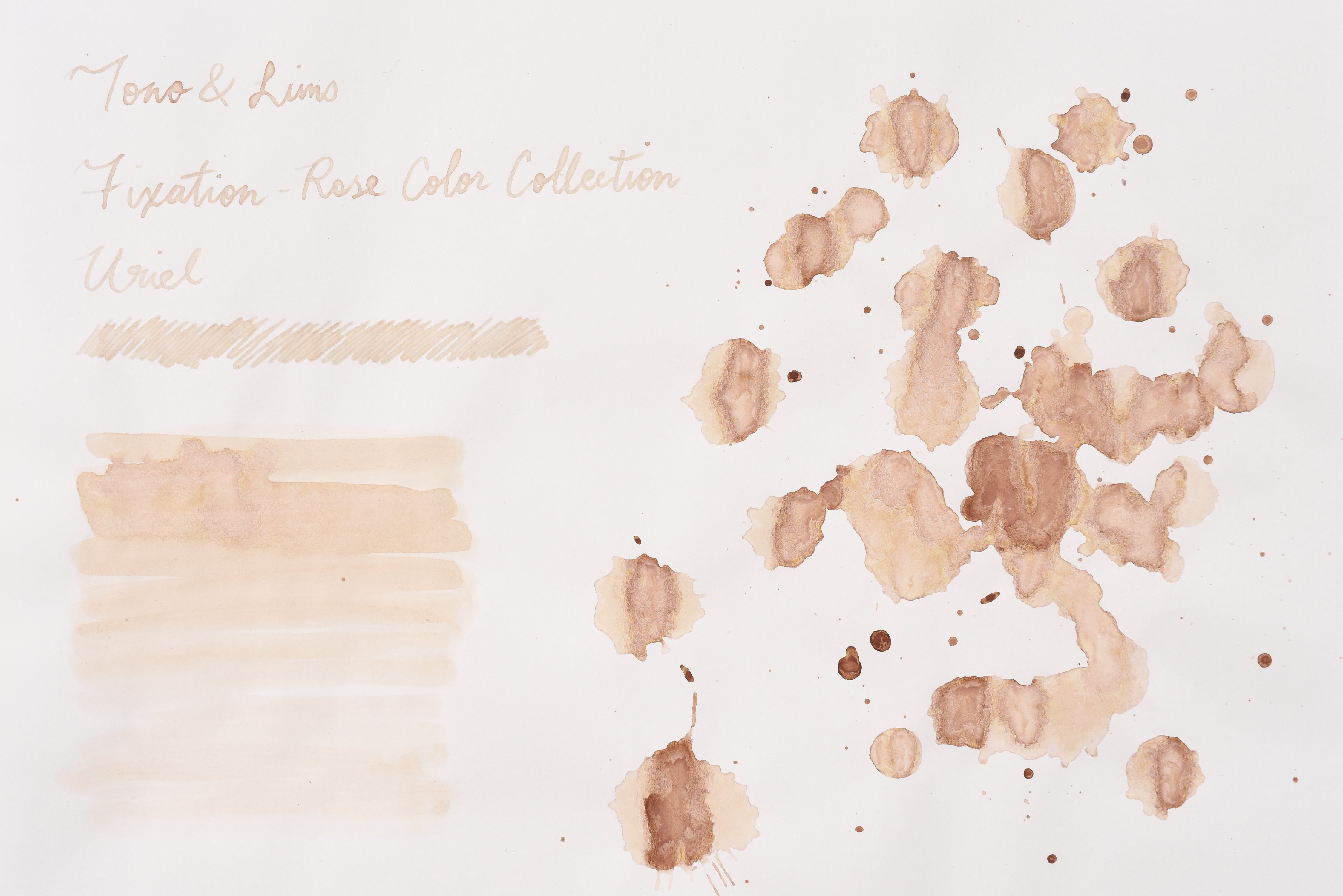 The Fixation series is a collection of pigmented, waterproof fountain pen inks. They're known for their high quality, vibrant colors and are high resistant to fading and bleeding. The Rose Color Collection is an extended line under the Fixation series featuring some pastel-toned, pigment ink colors. These colors are named after different types of garden rose, including Ariel in a light pink color; Uriel as pale yellow roses; and Lucifer in a pastel violet tone.