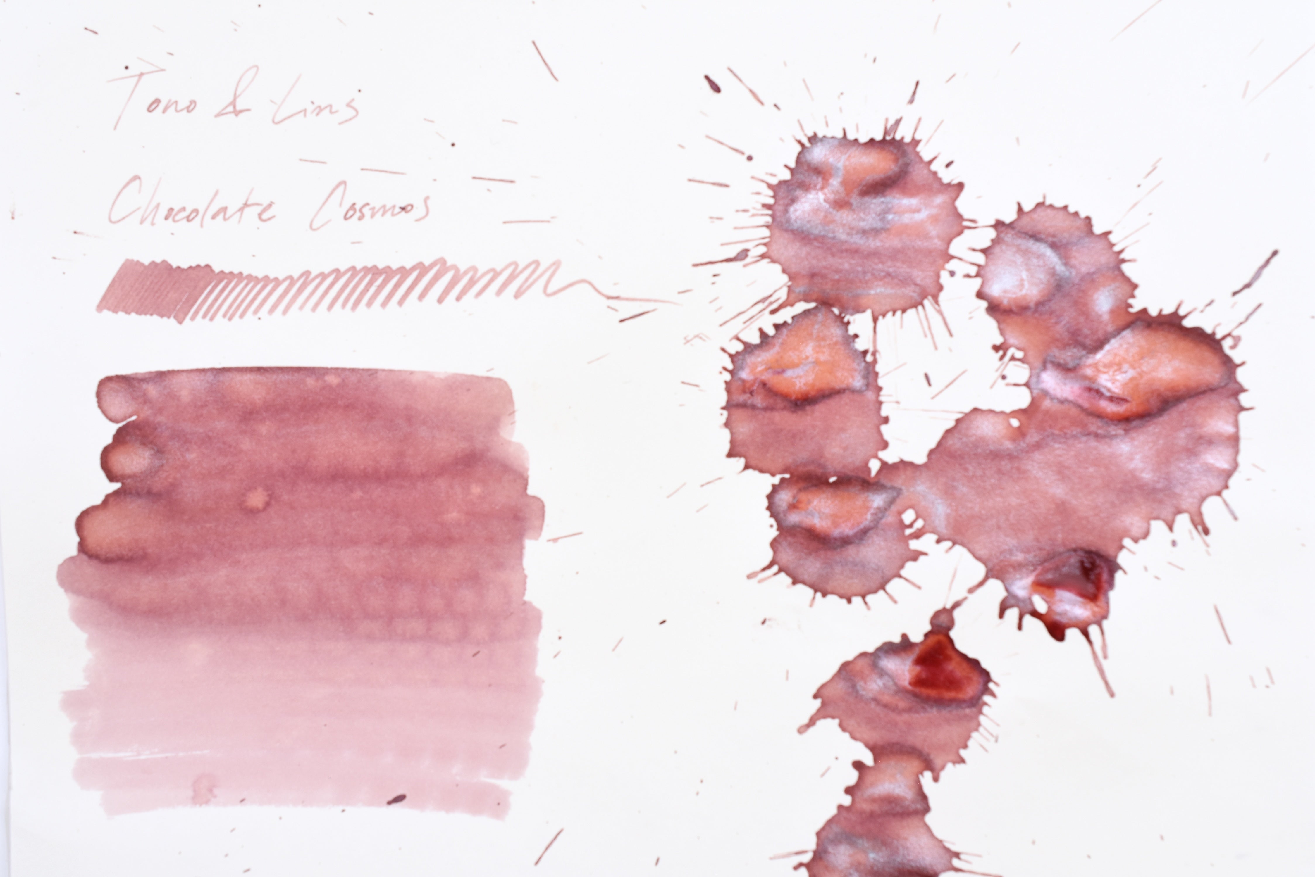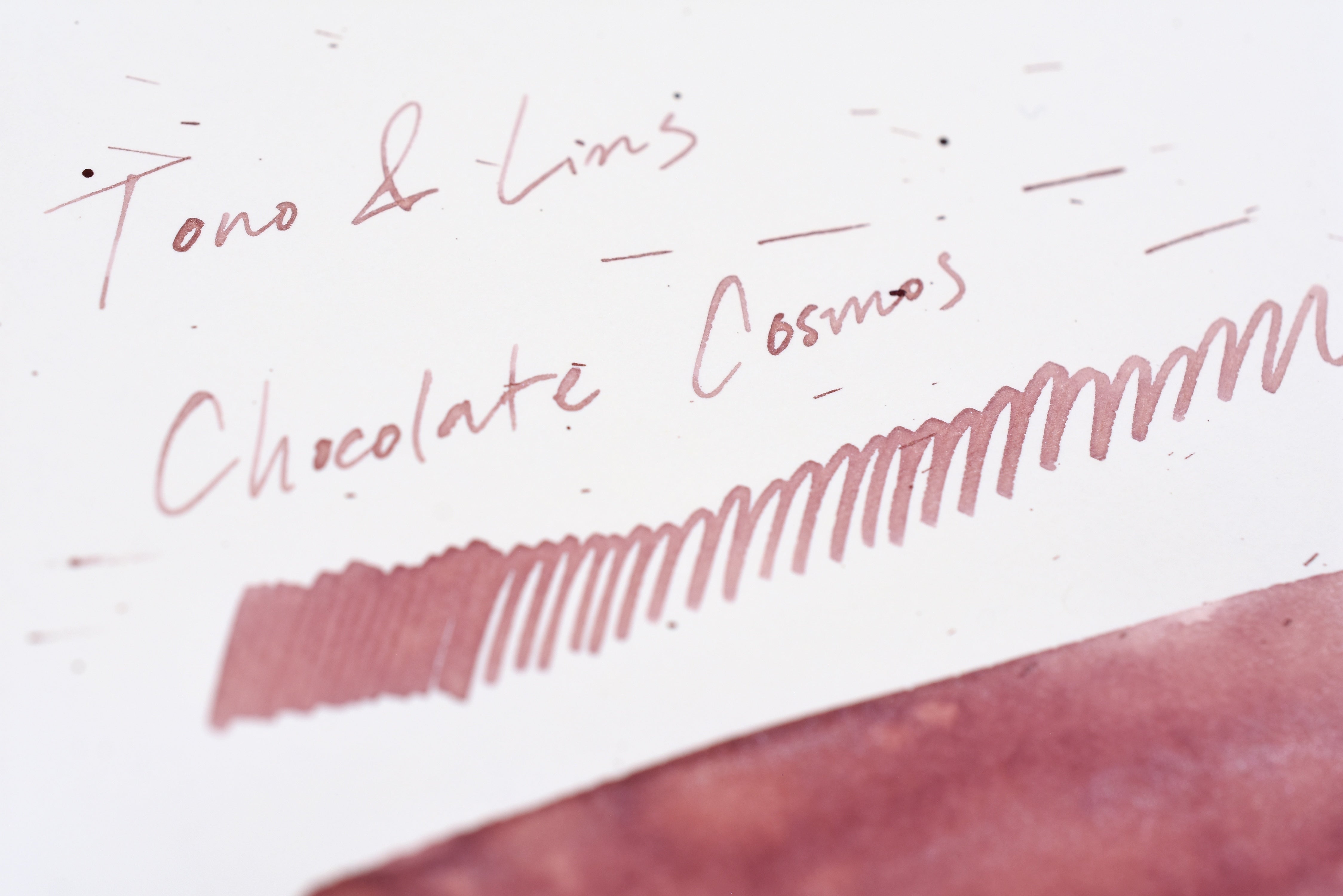 チョコレートコスモス (Chocolate Cosmos) is in the Tono & Lims Friendship Collection - a series of fountain pen inks inspired by the friendships and connections between the people involved in the fountain pen community. Each ink in the collection has a unique story and meaning behind it, often referencing inside jokes, personal experiences, or specific people in the community.