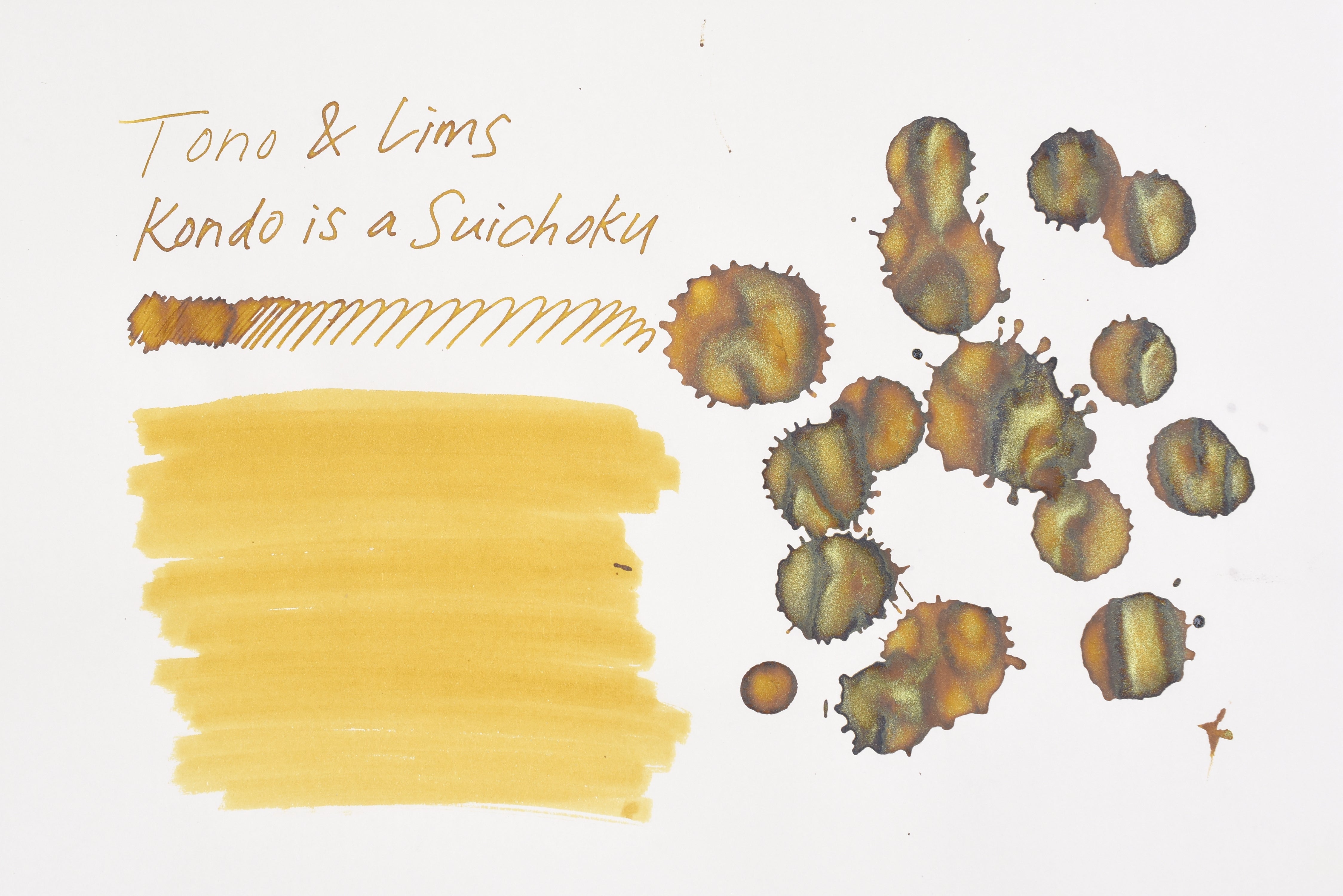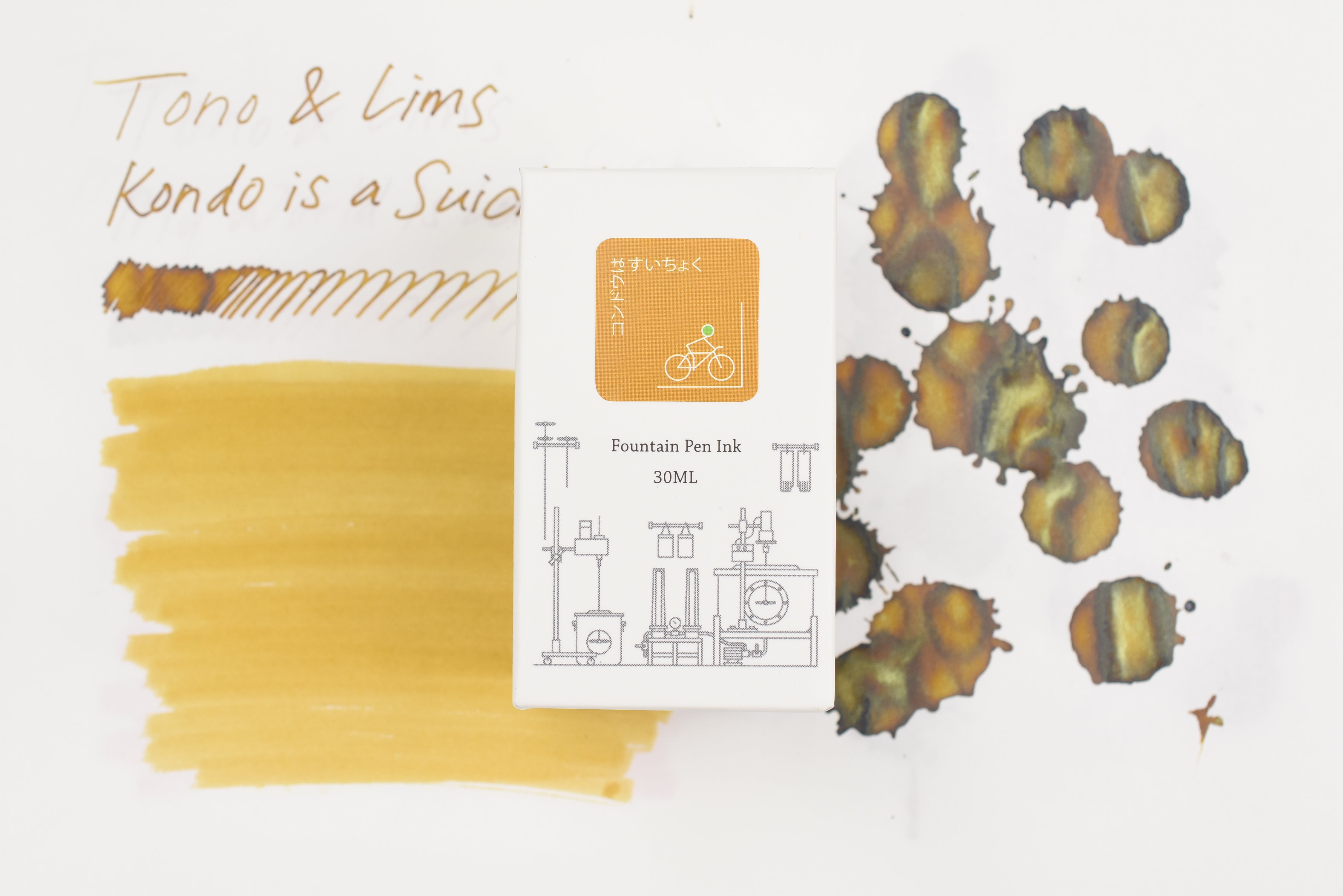 コンドウはすいちょく(Kondo Is A Suichoku) is in the Tono & Lims Friendship Collection - a series of fountain pen inks inspired by the friendships and connections between the people involved in the fountain pen community. Each ink in the collection has a unique story and meaning behind it, often referencing inside jokes, personal experiences, or specific people in the community.