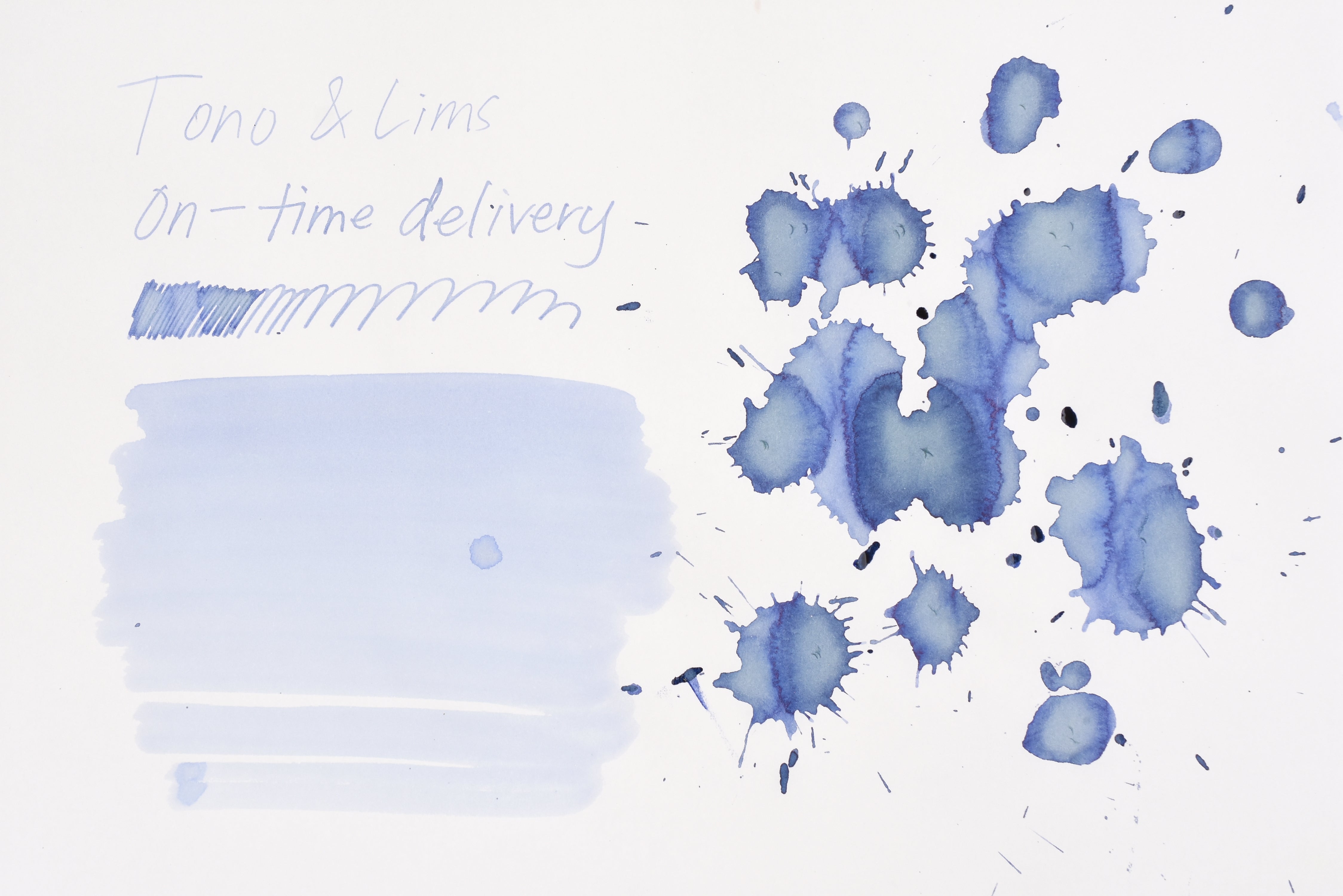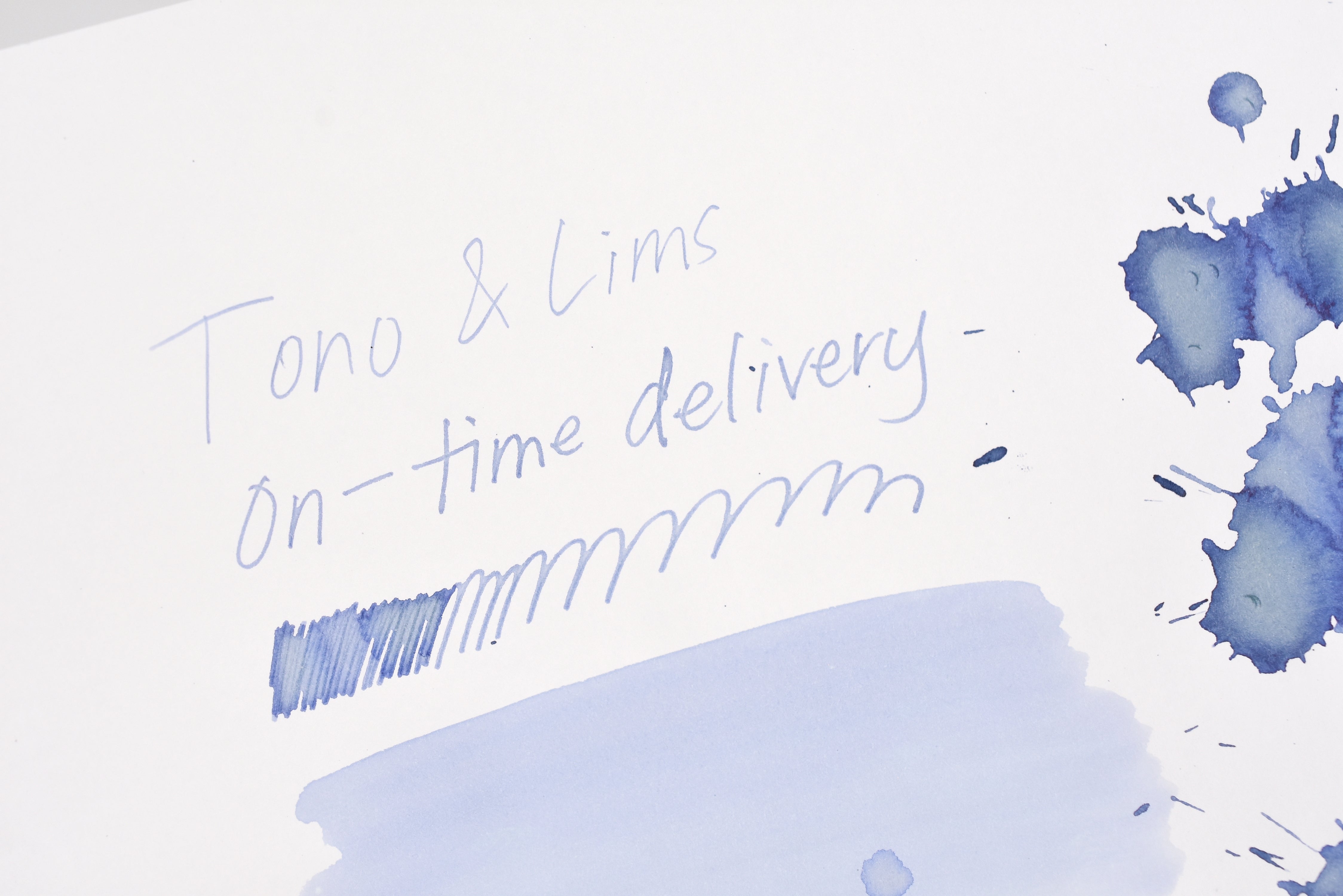 納期厳守 (On-time delivery) is in the Tono & Lims Friendship Collection - a series of fountain pen inks inspired by the friendships and connections between the people involved in the fountain pen community. Each ink in the collection has a unique story and meaning behind it, often referencing inside jokes, personal experiences, or specific people in the community.
