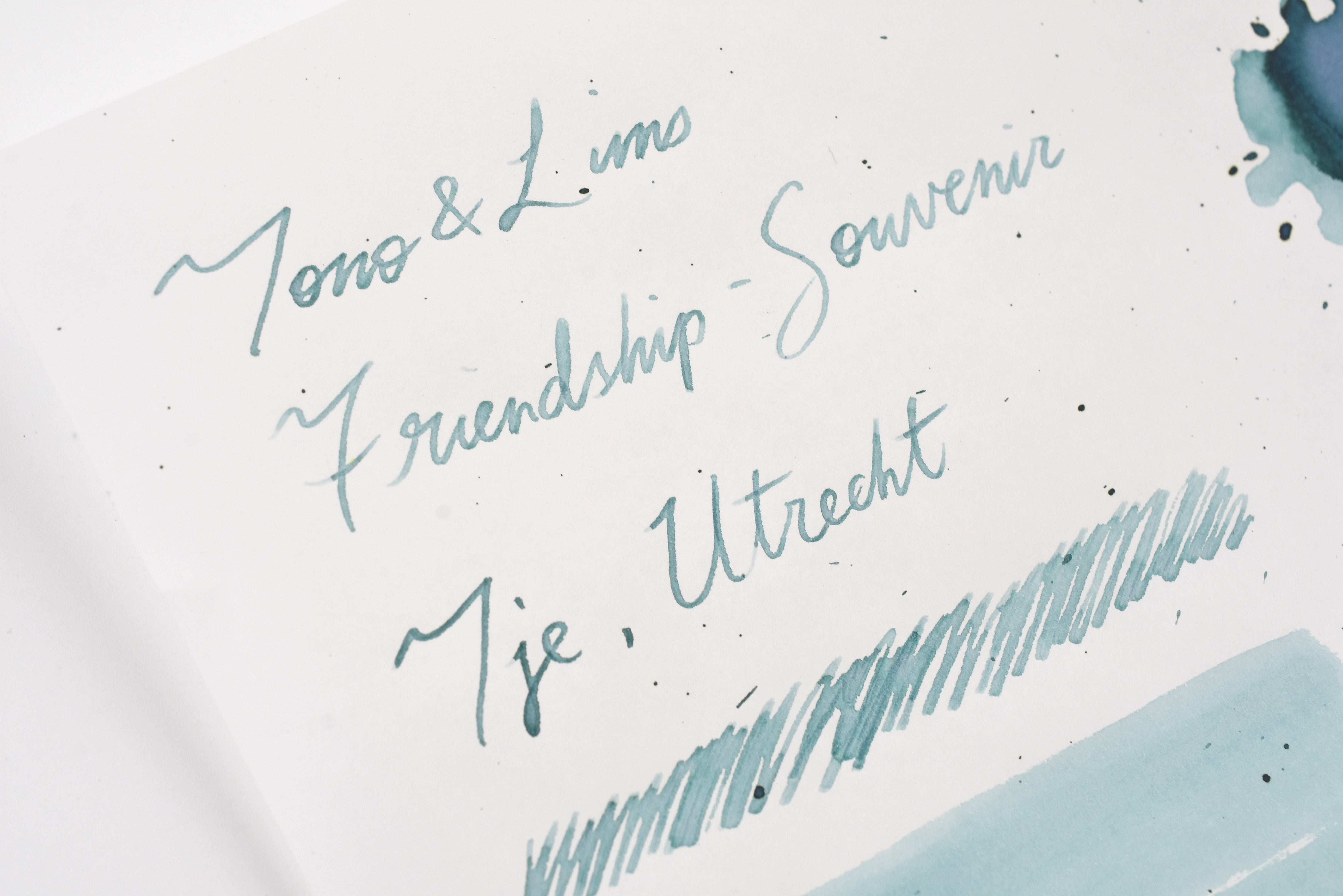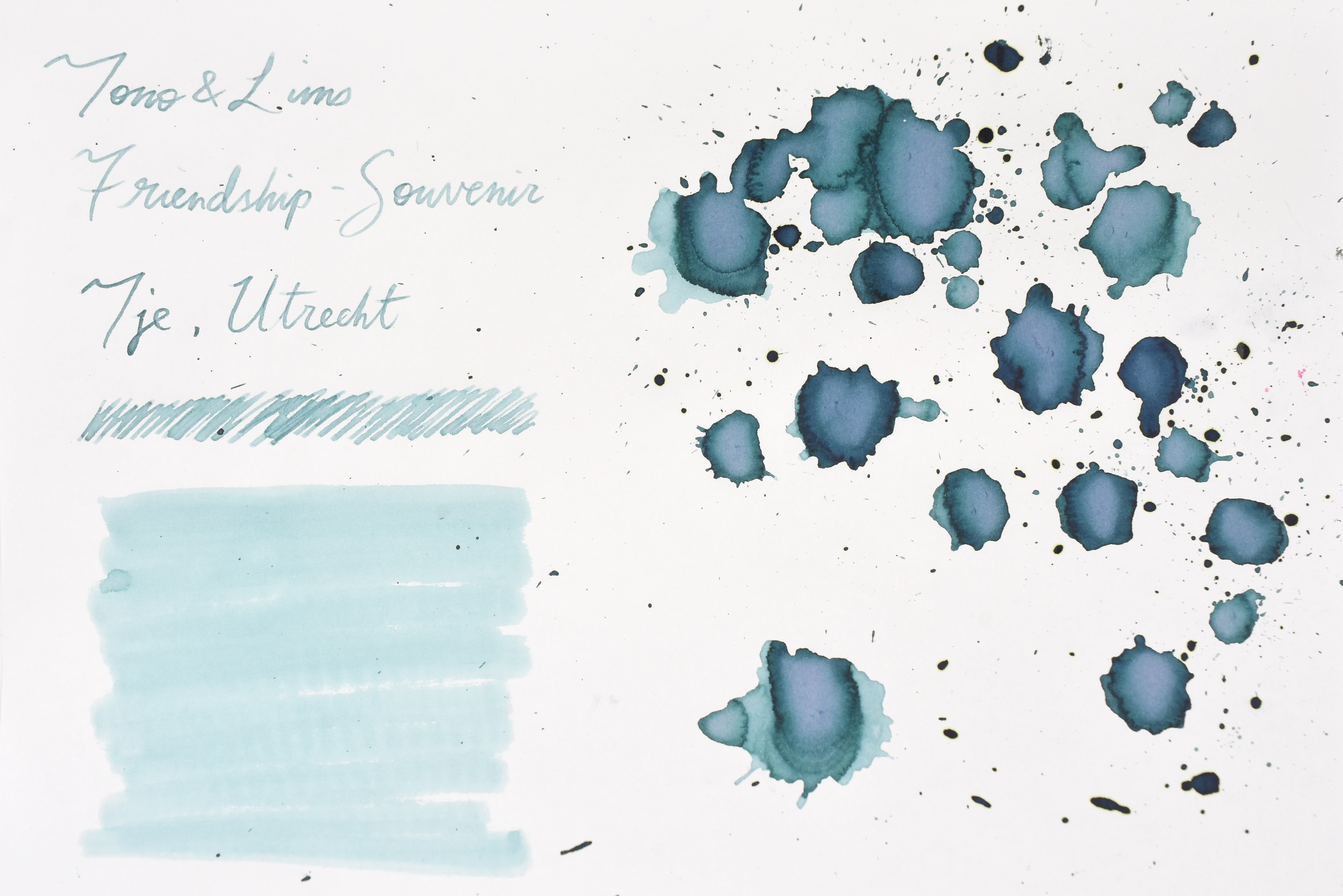 SOUVENIR Tje, Utrecht is in the Tono & Lims Friendship Collection - a series of fountain pen inks inspired by the friendships and connections between the people involved in the fountain pen community. Each ink in the collection has a unique story and meaning behind it, often referencing inside jokes, personal experiences, or specific people in the community.