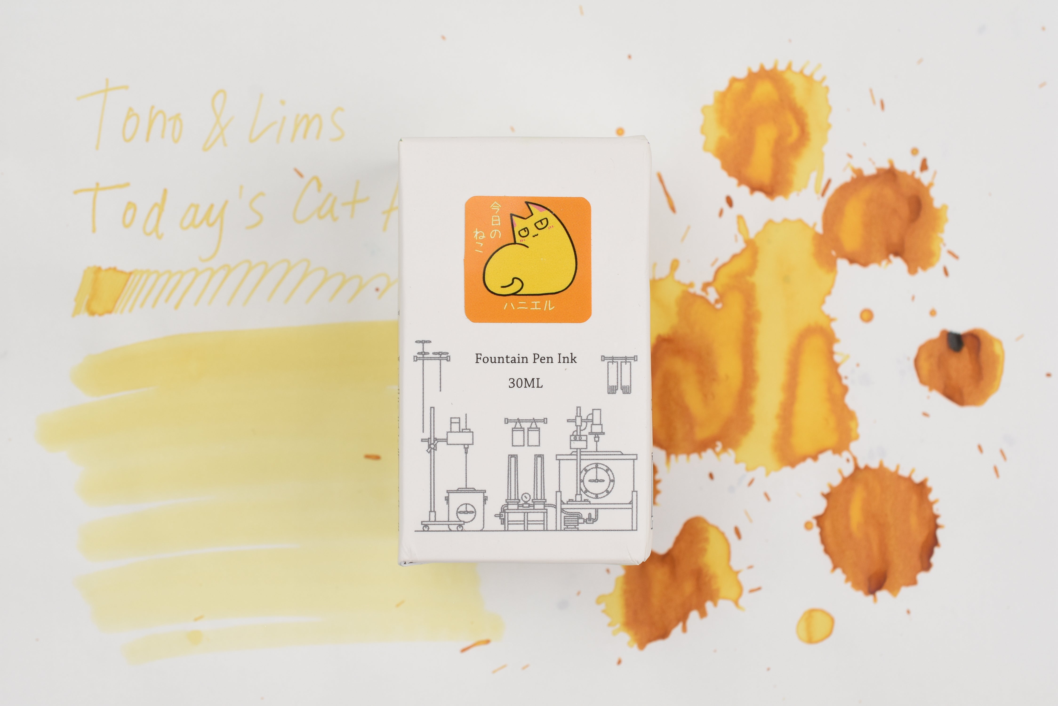 今日の ねこ ハニエル (Today's Cat Haniel) is in the Tono & Lims Friendship Collection - a series of fountain pen inks inspired by the friendships and connections between the people involved in the fountain pen community. Each ink in the collection has a unique story and meaning behind it, often referencing inside jokes, personal experiences, or specific people in the community.