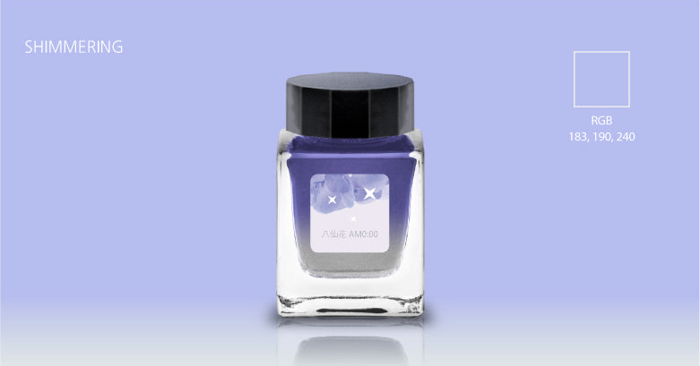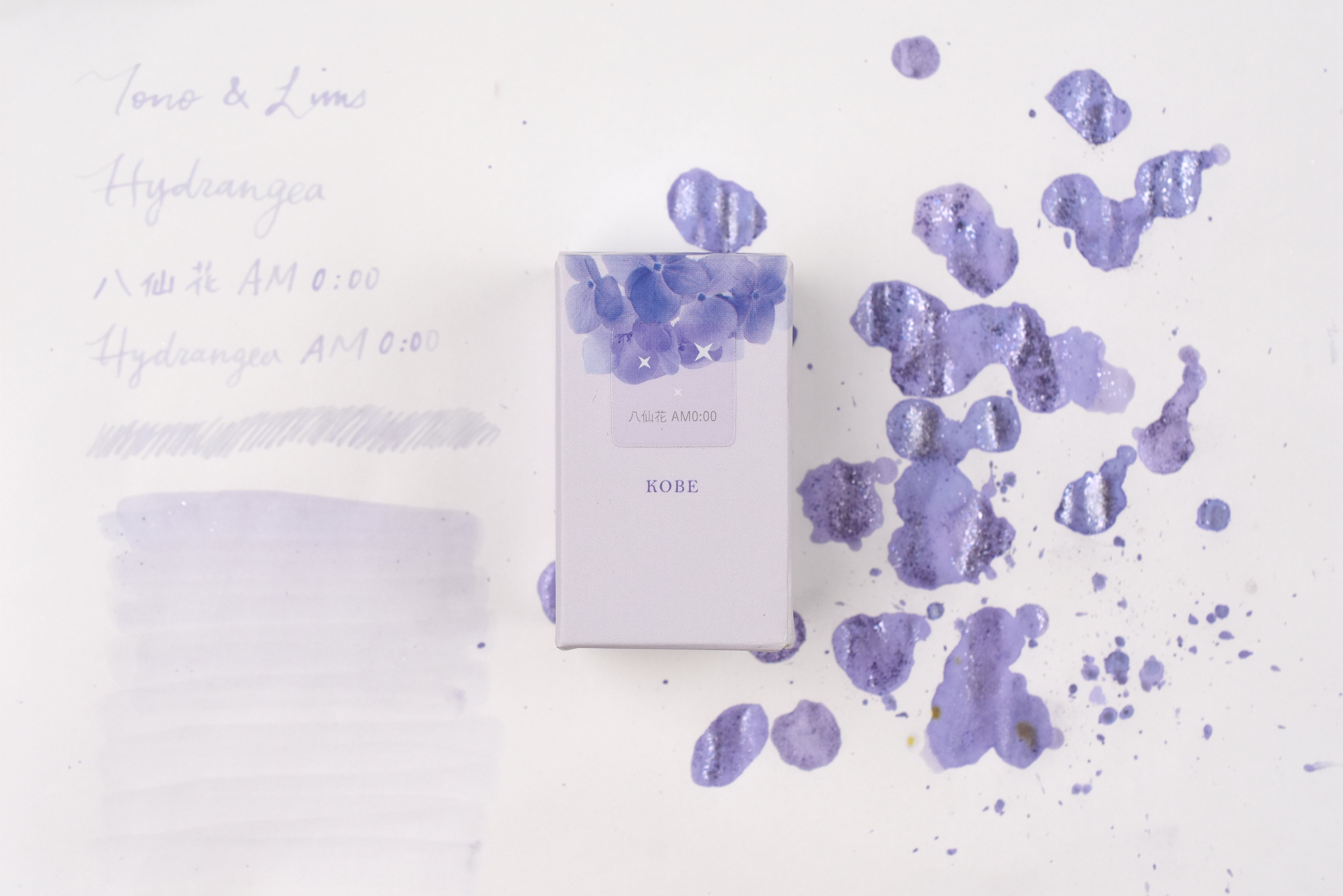 The Hydrangea Collection from Tono & Lims is inspired by the colorful hydrangeas in Kobe. This collection features a pale violet as a base color, but different colors of shimmer are added to the base to create a variety of specialty inks. Named after different time periods throughout the day, these limited edition ink colors are store-exclusive ink colors only available in Japan, but the Hydrangea AM0:00 and Hydrangea ∞ are available globally.