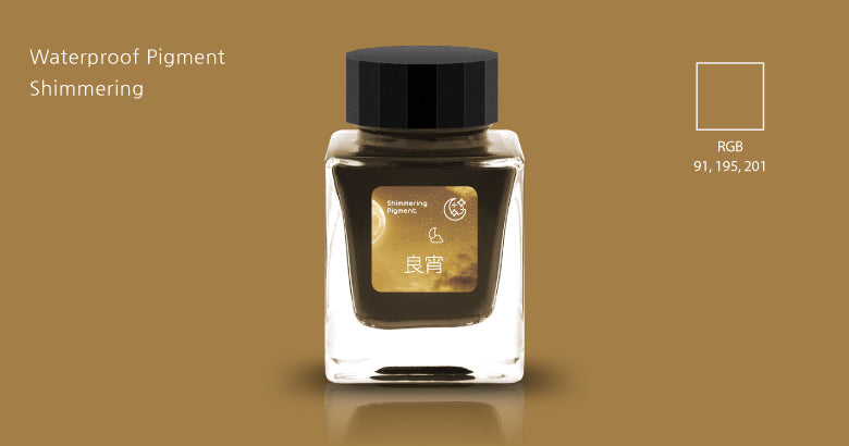 The Moonlight Wonderland series is a collection inspired by the fall season, especially during Mid-autumn Festival when people appreciates the full moon. The three inks in this collection come as the same color but with three different properties, including: Blessings of Nature as standard dye-based ink; Moon Rabbit as dye-based shimmering ink; and 良宵(Pleasant Night) as pigment-based shimmering ink.