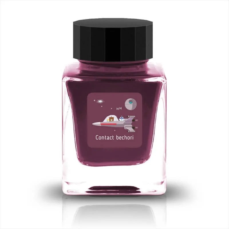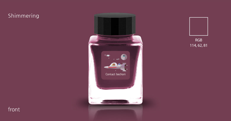 The Three Year Anniversary Contact Collection inks come in rich and vibrant colors, smooth writing quality, and with interesting properties like shimmer or scent. Super inks contain iridescent shimmer particles that shift color depending on the angle of the light. Scented inks are more likely to feather when depositing a large amount of ink. Please make sure to use fountain pen friendly paper for best results with these scented inks.