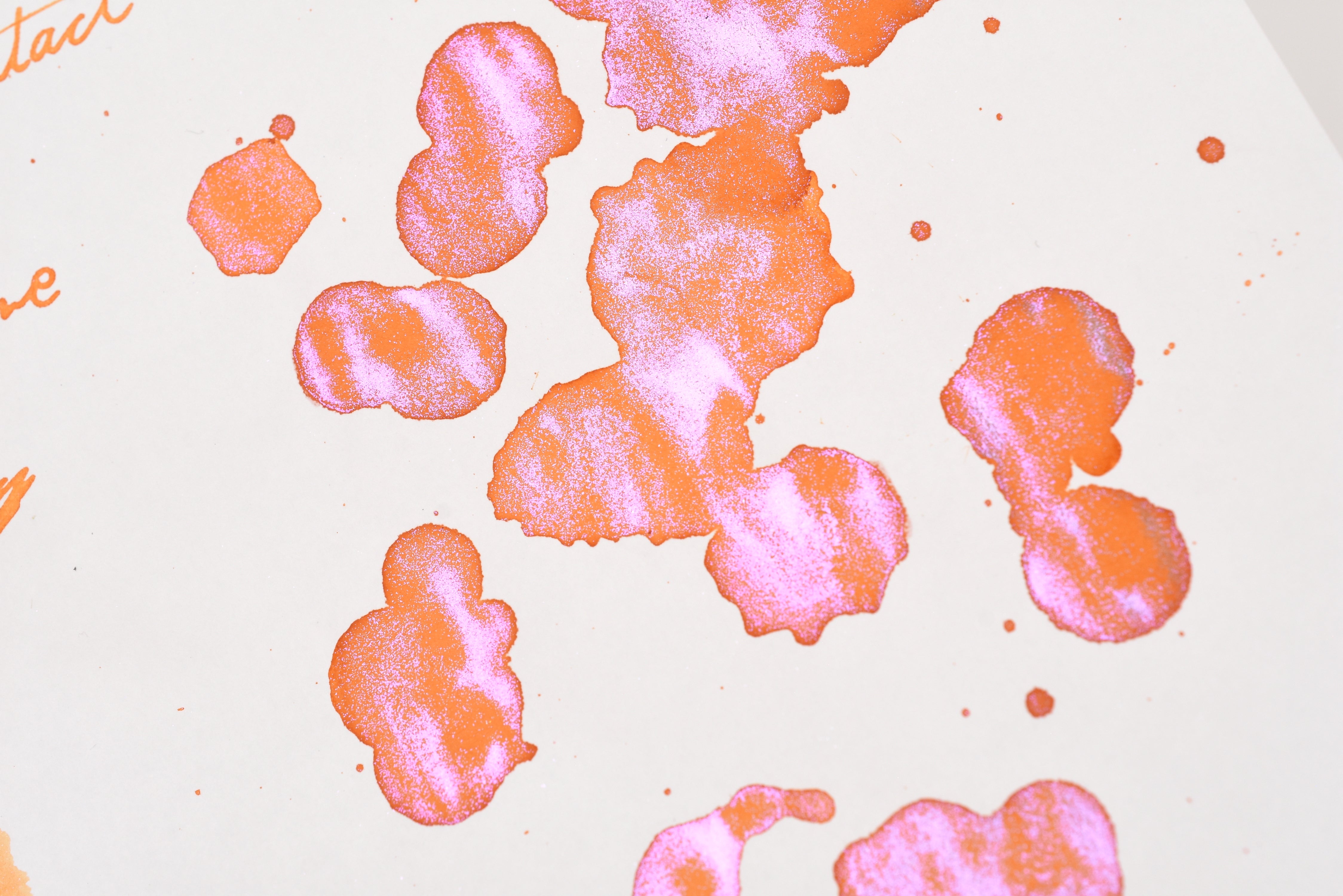 The Three Year Anniversary Contact Collection inks come in rich and vibrant colors, smooth writing quality, and with interesting properties like shimmer or scent. Super inks contain iridescent shimmer particles that shift color depending on the angle of the light. Scented inks are more likely to feather when depositing a large amount of ink. Please make sure to use fountain pen friendly paper for best results with these scented inks.