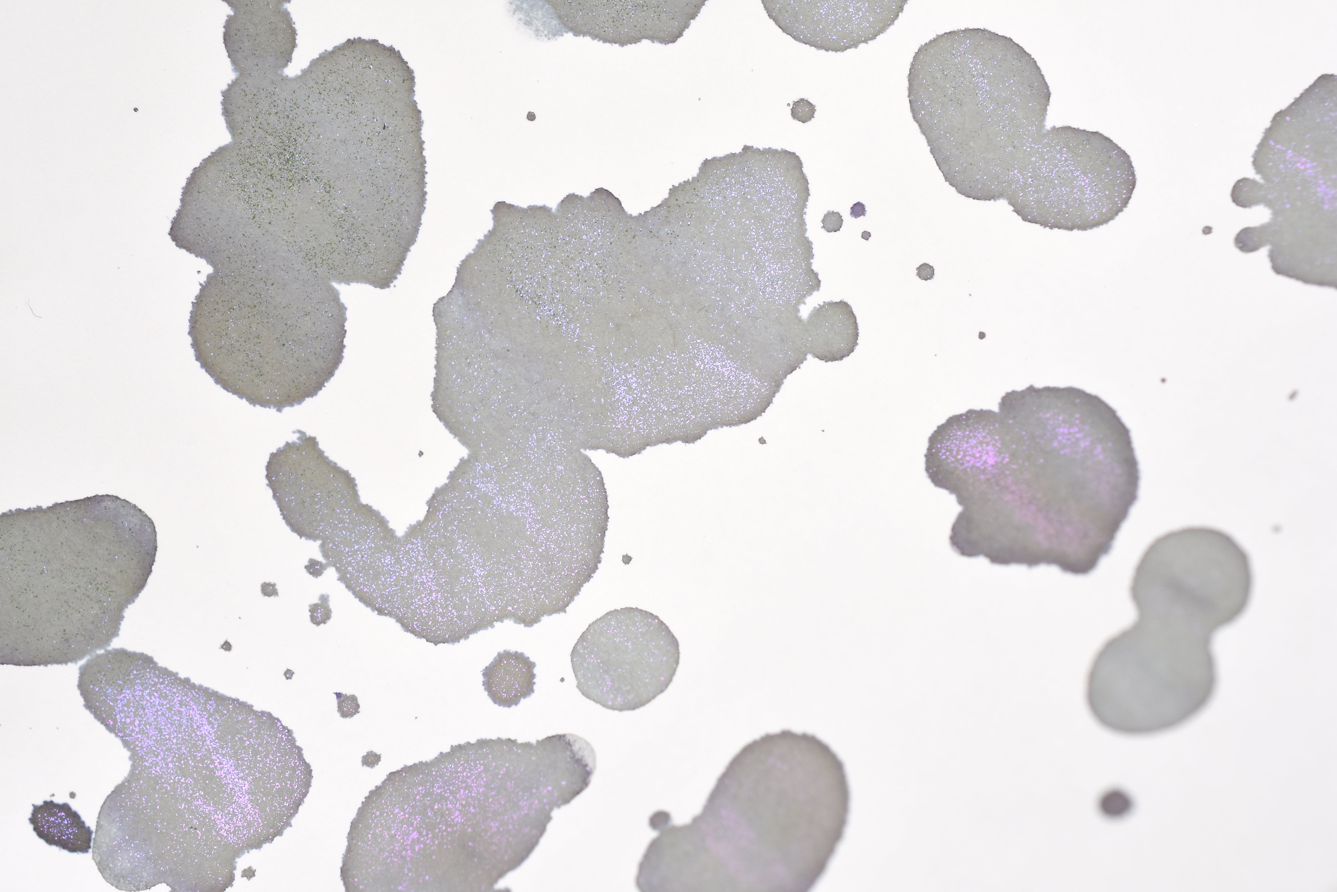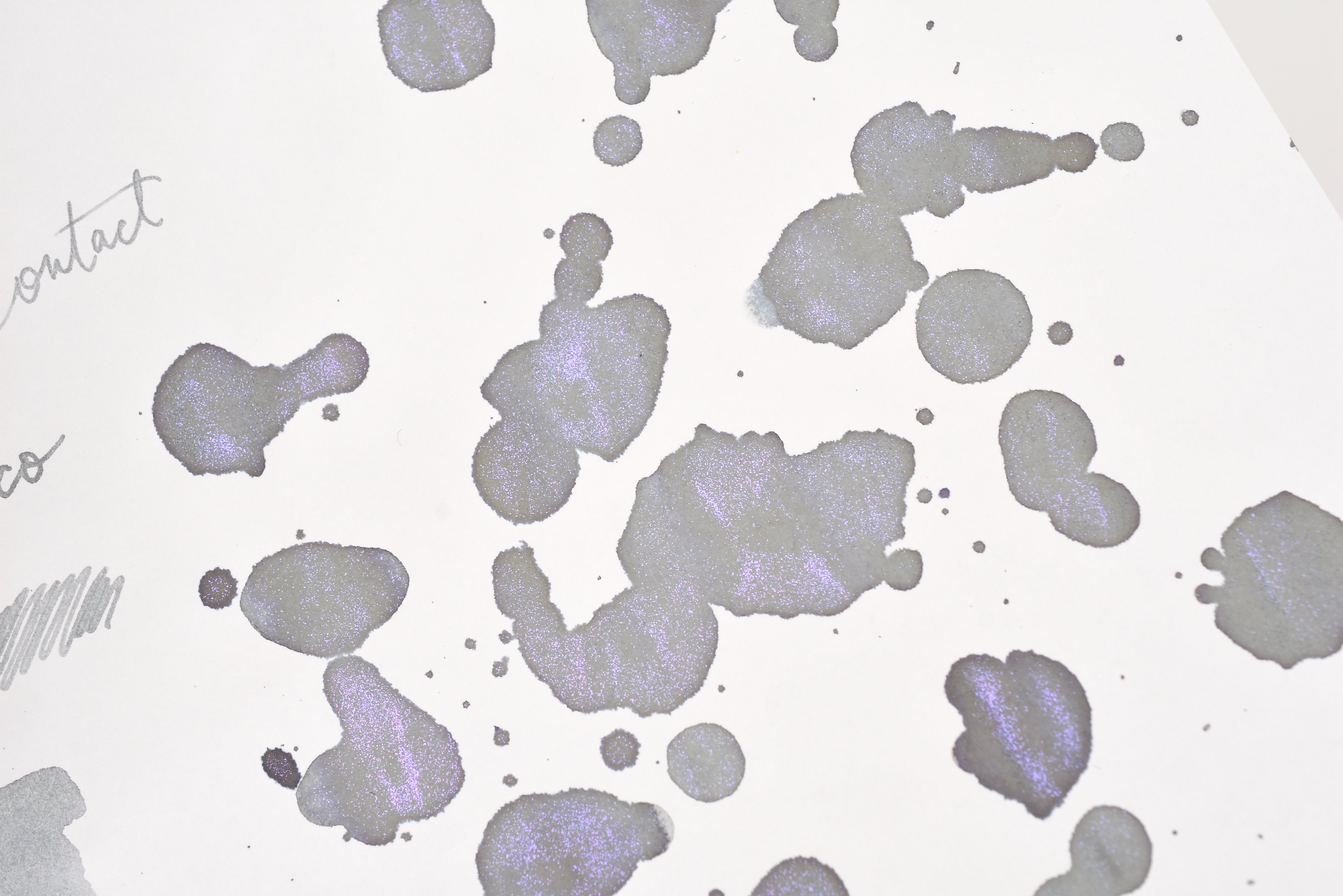 The Three Year Anniversary Contact Collection inks come in rich and vibrant colors, smooth writing quality, and with interesting properties like shimmer or scent. Super inks contain iridescent shimmer particles that shift color depending on the angle of the light. Scented inks are more likely to feather when depositing a large amount of ink. Please make sure to use fountain pen friendly paper for best results with these scented inks.
