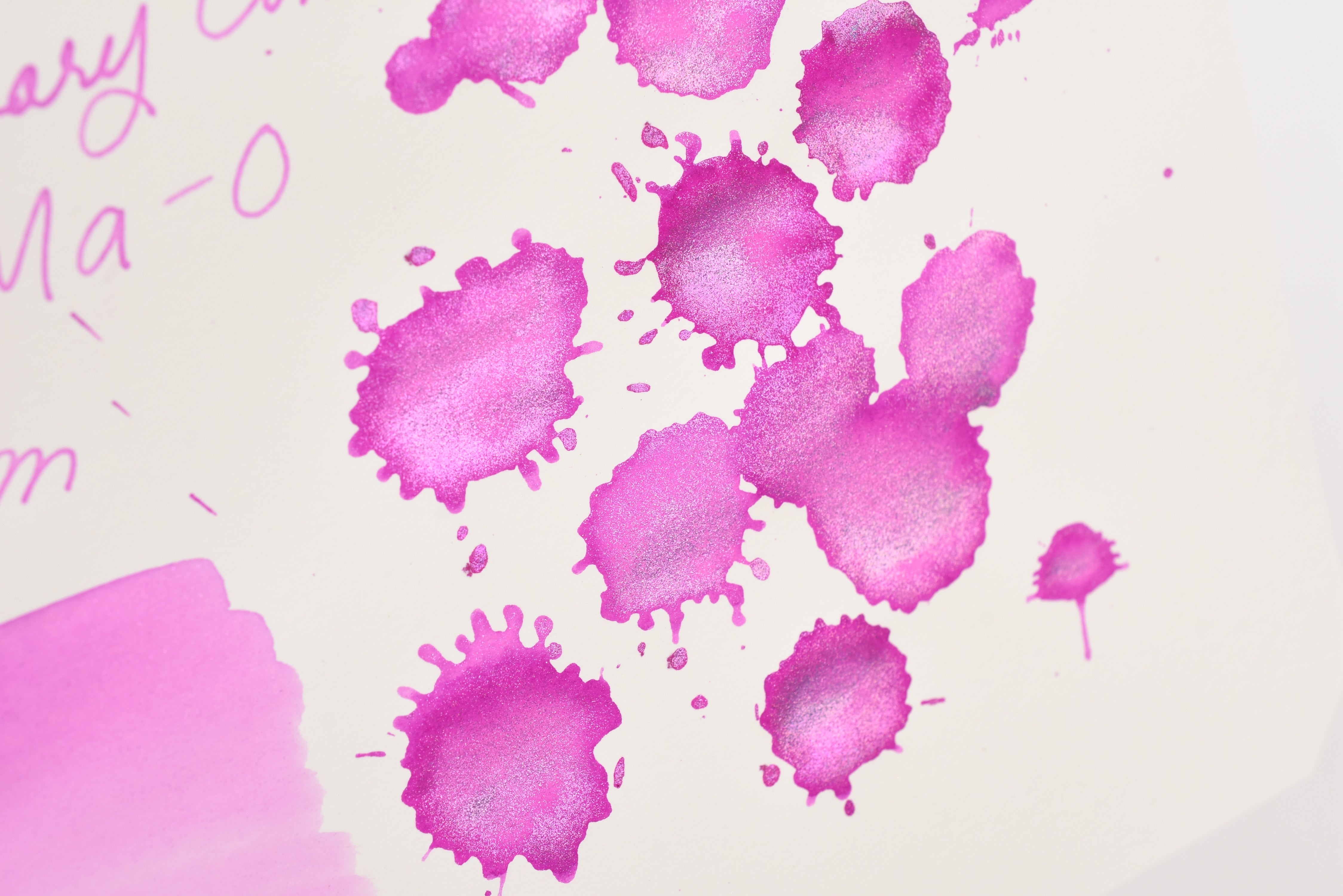 The Three Year Anniversary Contact Collection inks come in rich and vibrant colors, smooth writing quality, and with interesting properties like shimmer or scent. Super inks contain iridescent shimmer particles that shift color depending on the angle of the light. Scented inks are more likely to feather when depositing a large amount of ink. Please make sure to use fountain pen friendly paper for best results with these scented inks.