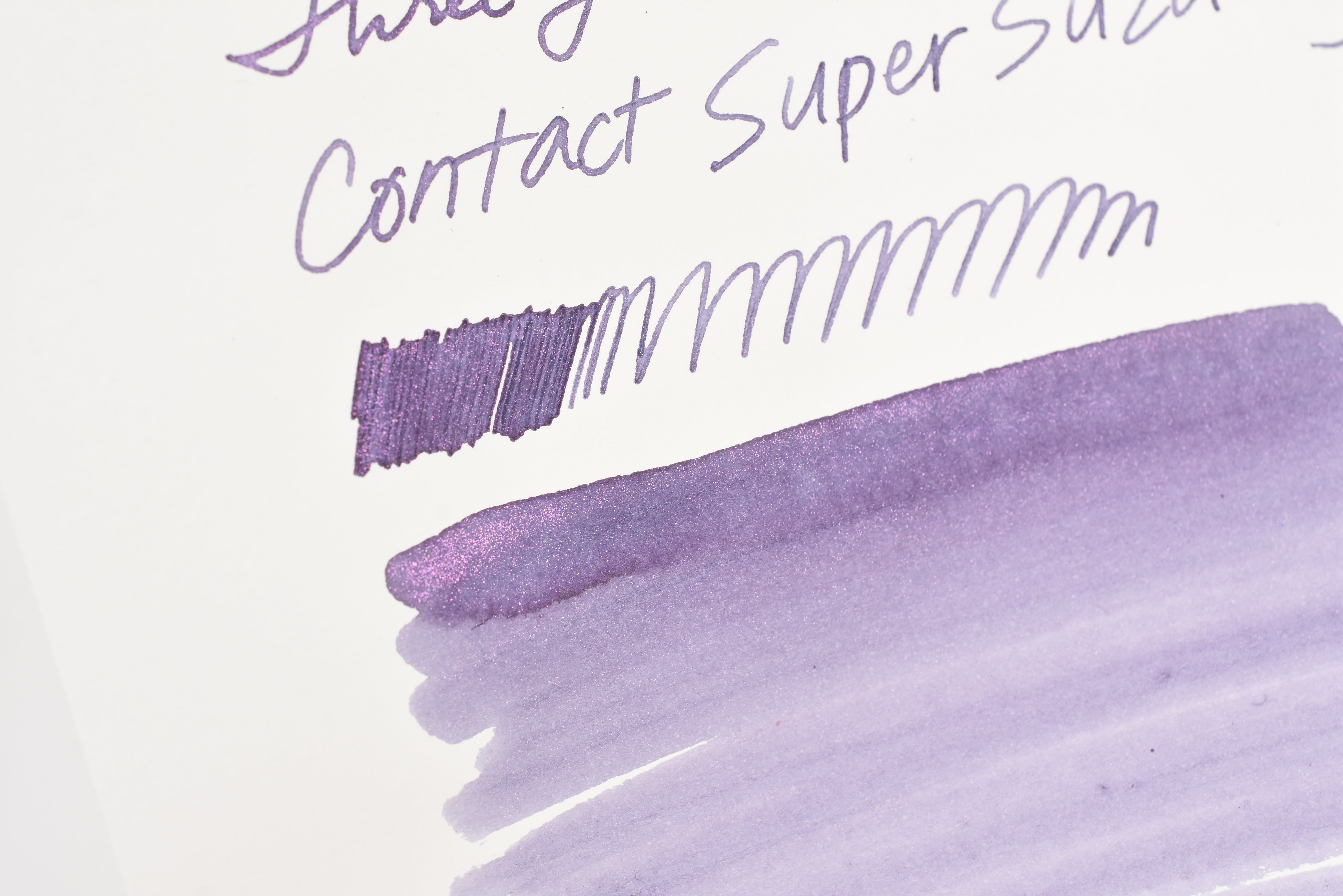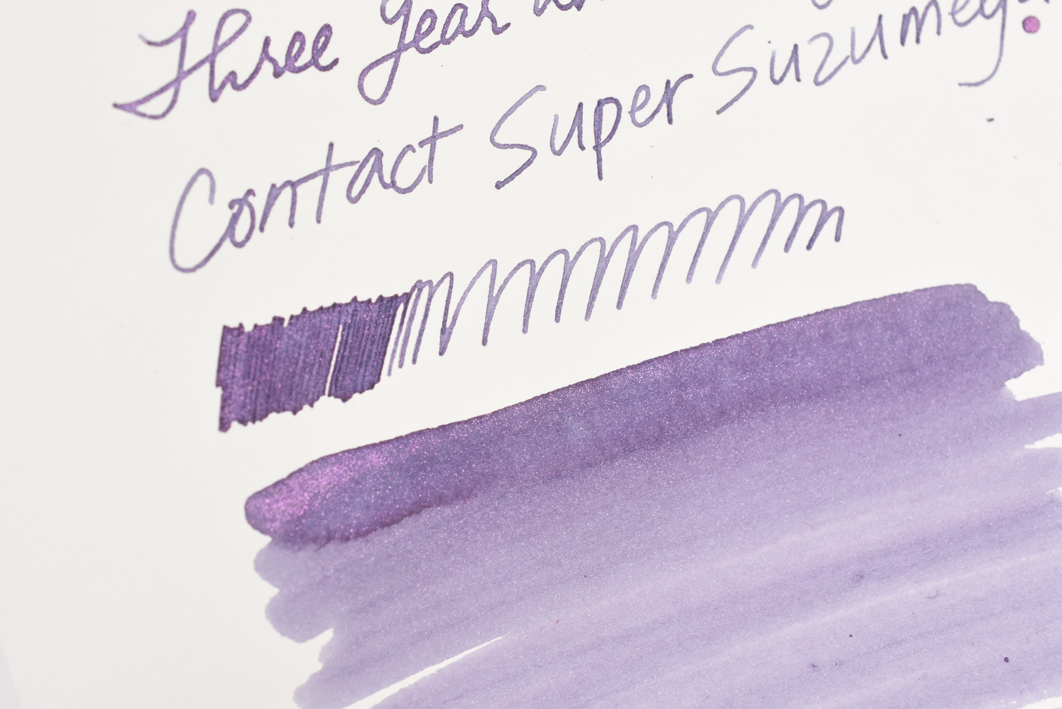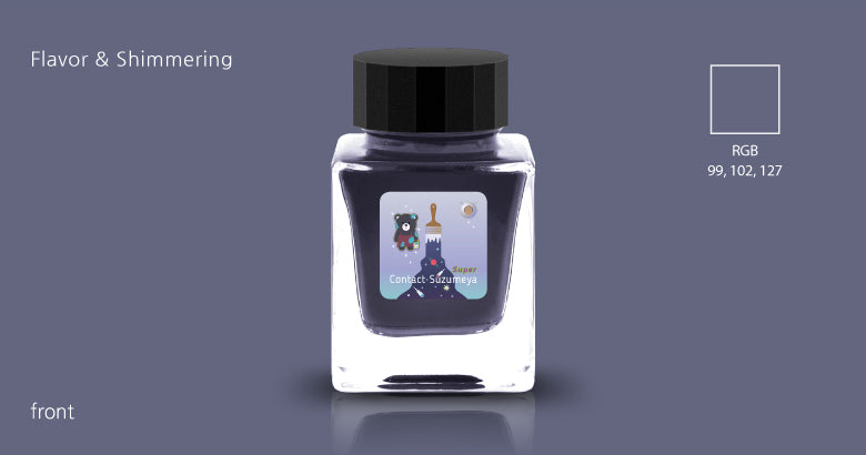 The Three Year Anniversary Contact Collection inks come in rich and vibrant colors, smooth writing quality, and with interesting properties like shimmer or scent. Super inks contain iridescent shimmer particles that shift color depending on the angle of the light. Scented inks are more likely to feather when depositing a large amount of ink. Please make sure to use fountain pen friendly paper for best results with these scented inks.