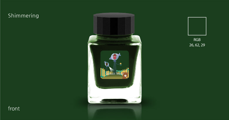 The Three Year Anniversary Contact Collection inks come in rich and vibrant colors, smooth writing quality, and with interesting properties like shimmer or scent. Super inks contain iridescent shimmer particles that shift color depending on the angle of the light. Scented inks are more likely to feather when depositing a large amount of ink. Please make sure to use fountain pen friendly paper for best results with these scented inks.