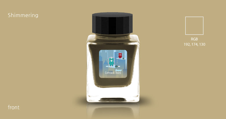 The Three Year Anniversary Contact Collection inks come in rich and vibrant colors, smooth writing quality, and with interesting properties like shimmer or scent. Super inks contain iridescent shimmer particles that shift color depending on the angle of the light. Scented inks are more likely to feather when depositing a large amount of ink. Please make sure to use fountain pen friendly paper for best results with these scented inks.