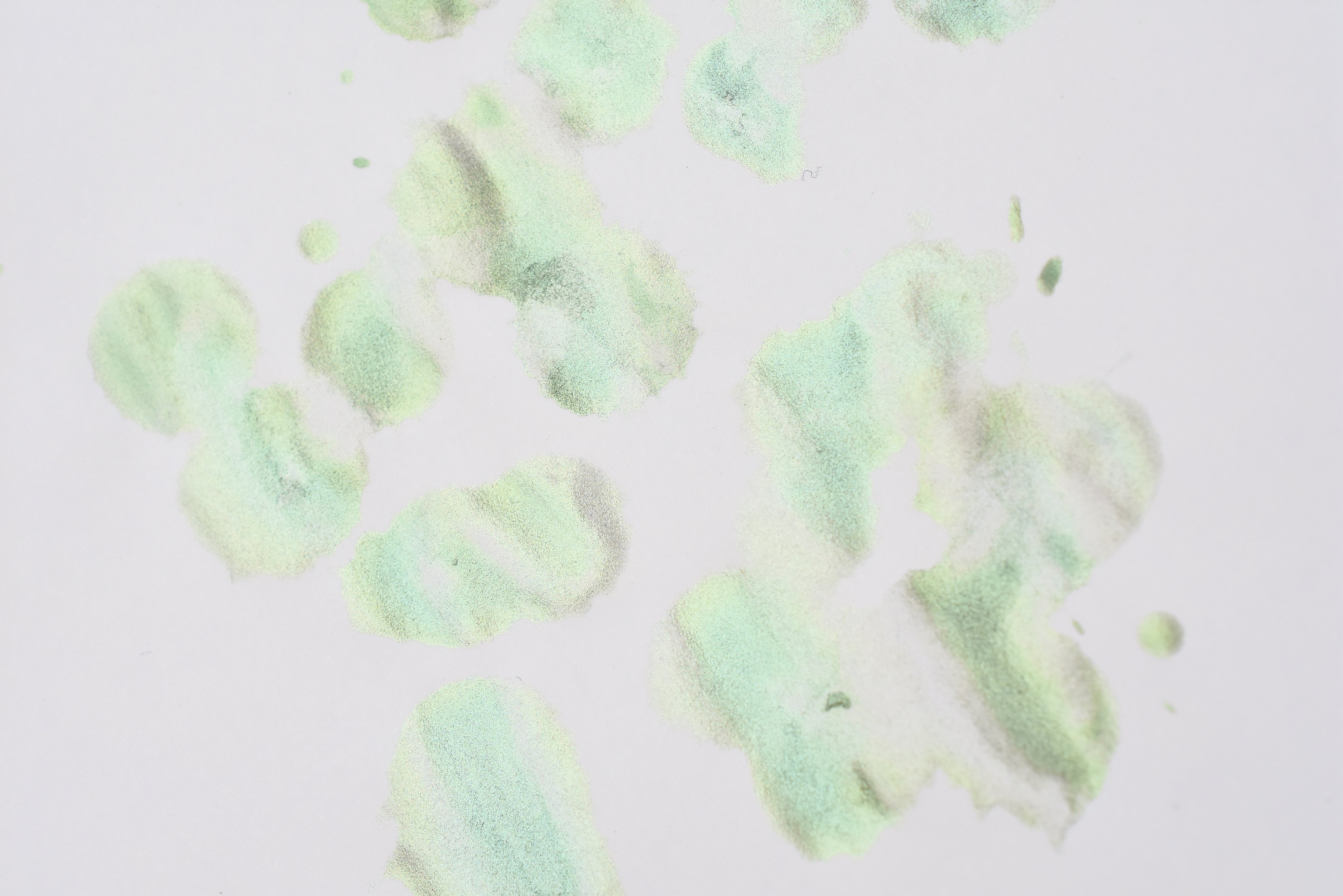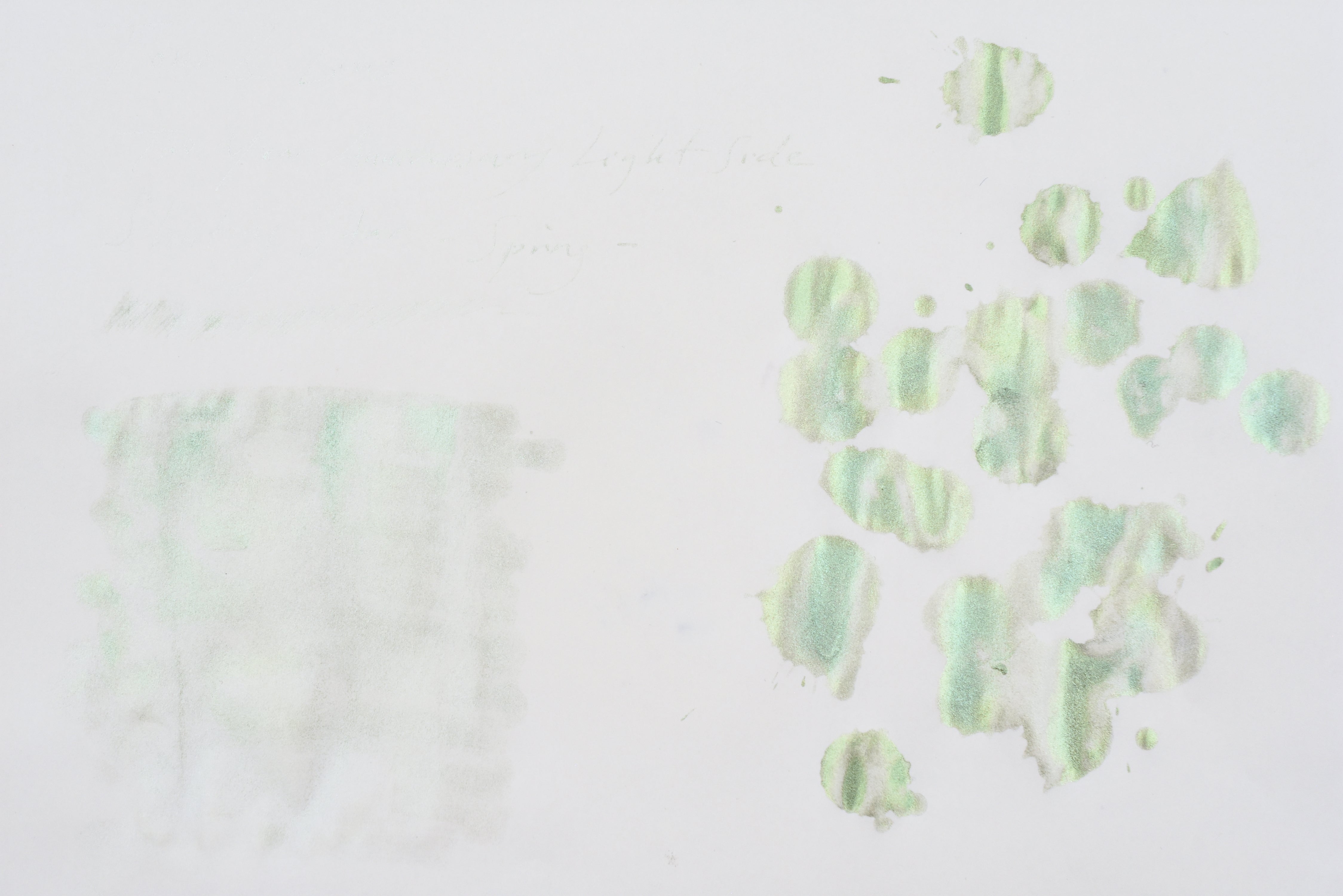 The Dark Side and Bright Side inks are meant to be mixed to enhance their colors, though on their own, some of the Bright Side colors can show up on dark paper. Pictured is Dark Side - The Black mixed with Bright Side Shooting Star - Autumn, which creates an interesting shimmering black ink.