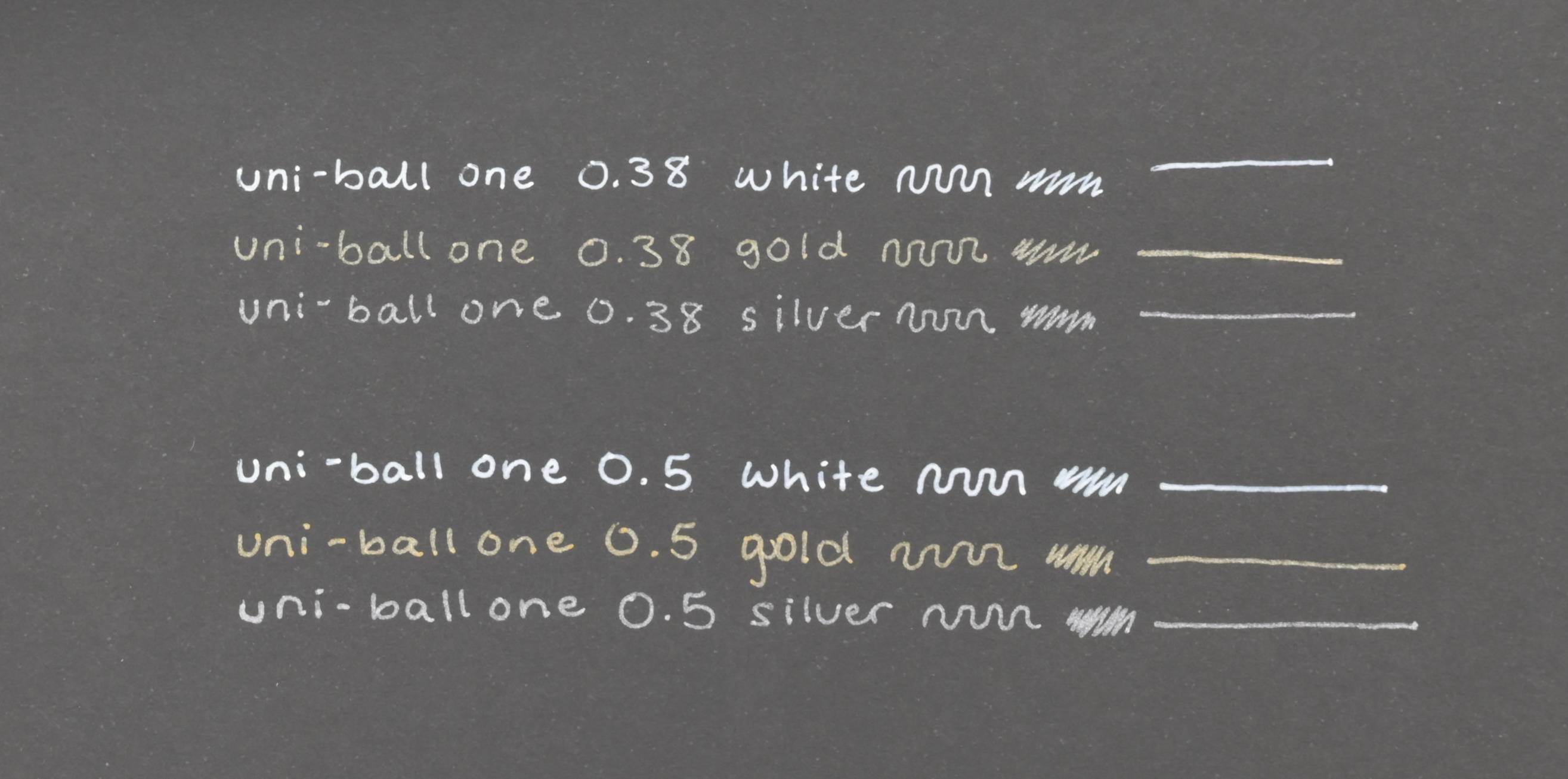 This collection is Uni-ball One’s first white and metallic inks, created for creative projects on both dark and light paper. The metallic silver and gold inks offer a soft shimmer that enhances artwork and notes, while the opaque white provides strong, visible coverage for writing and detailing on darker surfaces.
