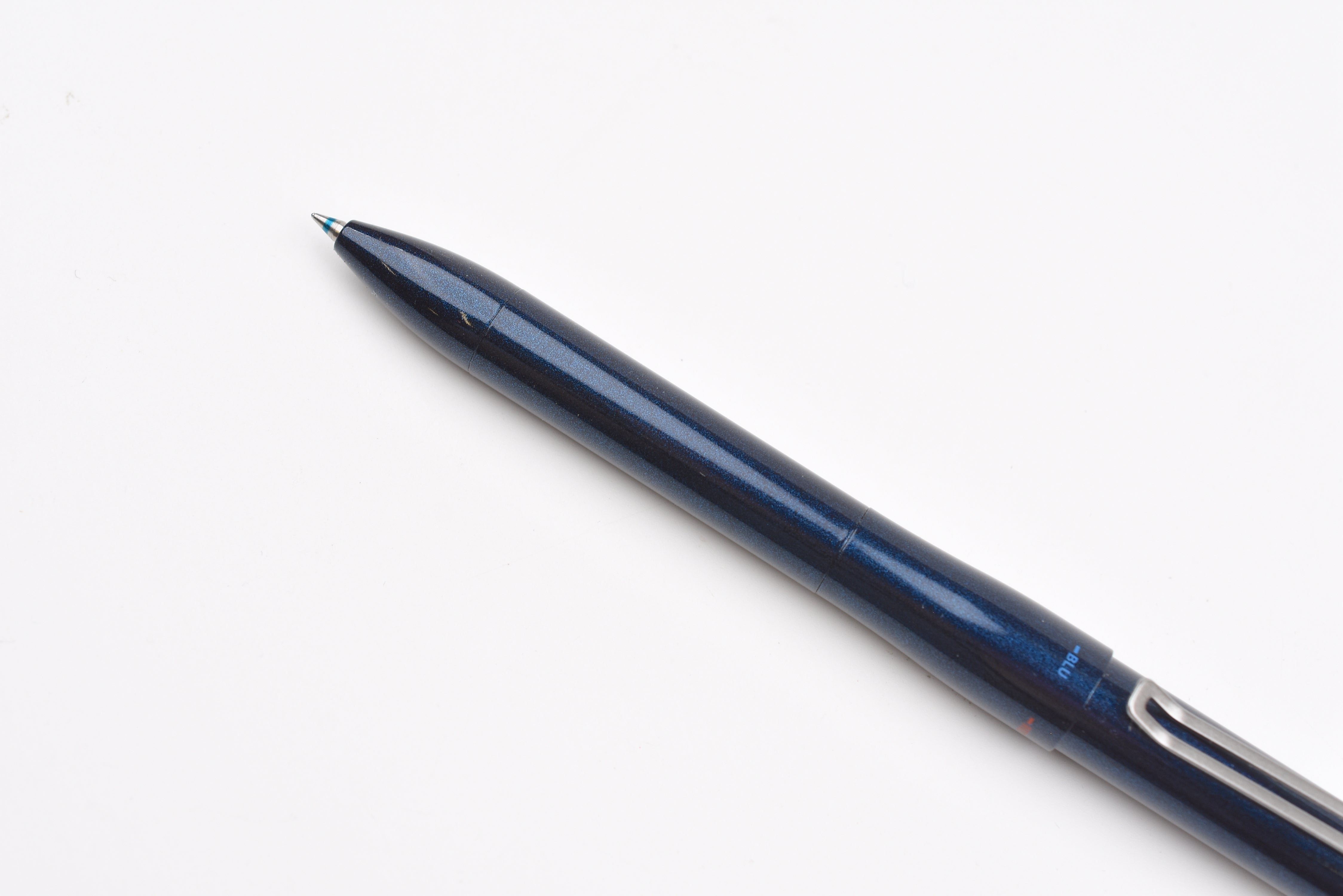 This sleek and stylish pen combines three smooth Jetstream ballpoint inks—black, red, and blue—with a mechanical pencil, all in one slim, twist-action body. Rather than clicking to extend and retract, simply twist to the desired function. It writes smoothly and switches functions easily, making it perfect for both everyday use and professional settings.