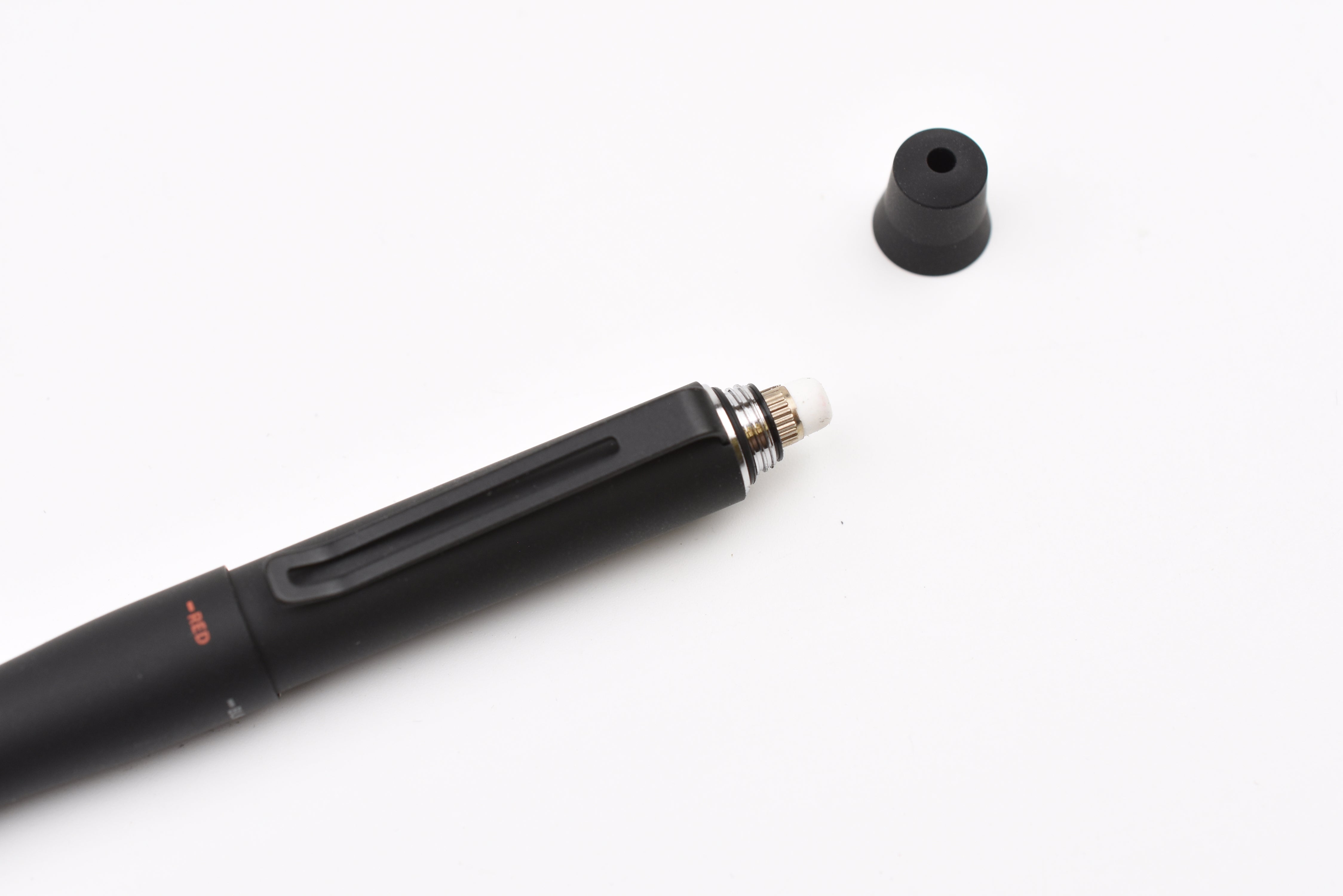 This sleek and stylish pen combines three smooth Jetstream ballpoint inks—black, red, and blue—with a mechanical pencil, all in one slim, twist-action body. Rather than clicking to extend and retract, simply twist to the desired function. It writes effortlessly and switches functions with ease, making it perfect for both everyday use and professional settings.