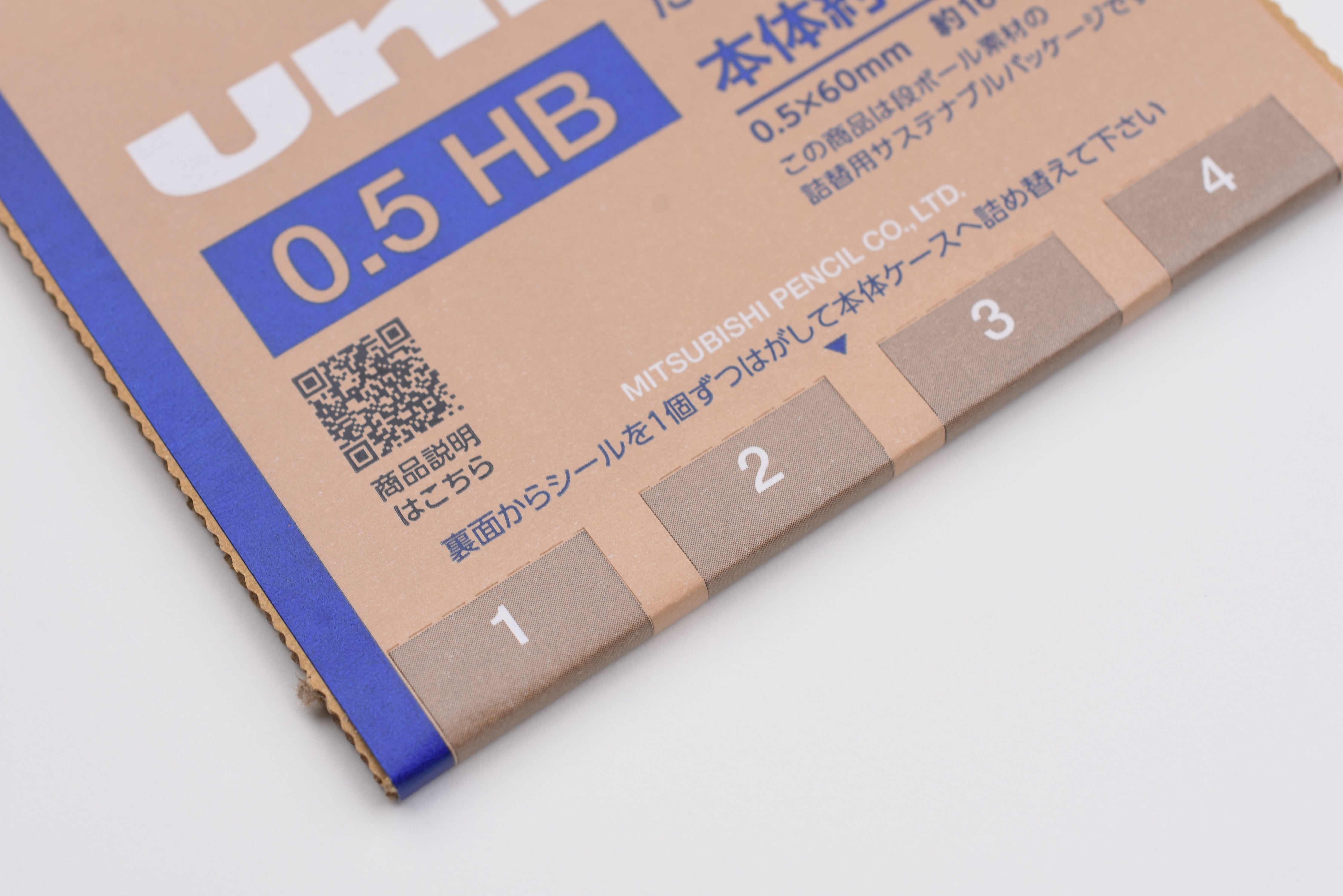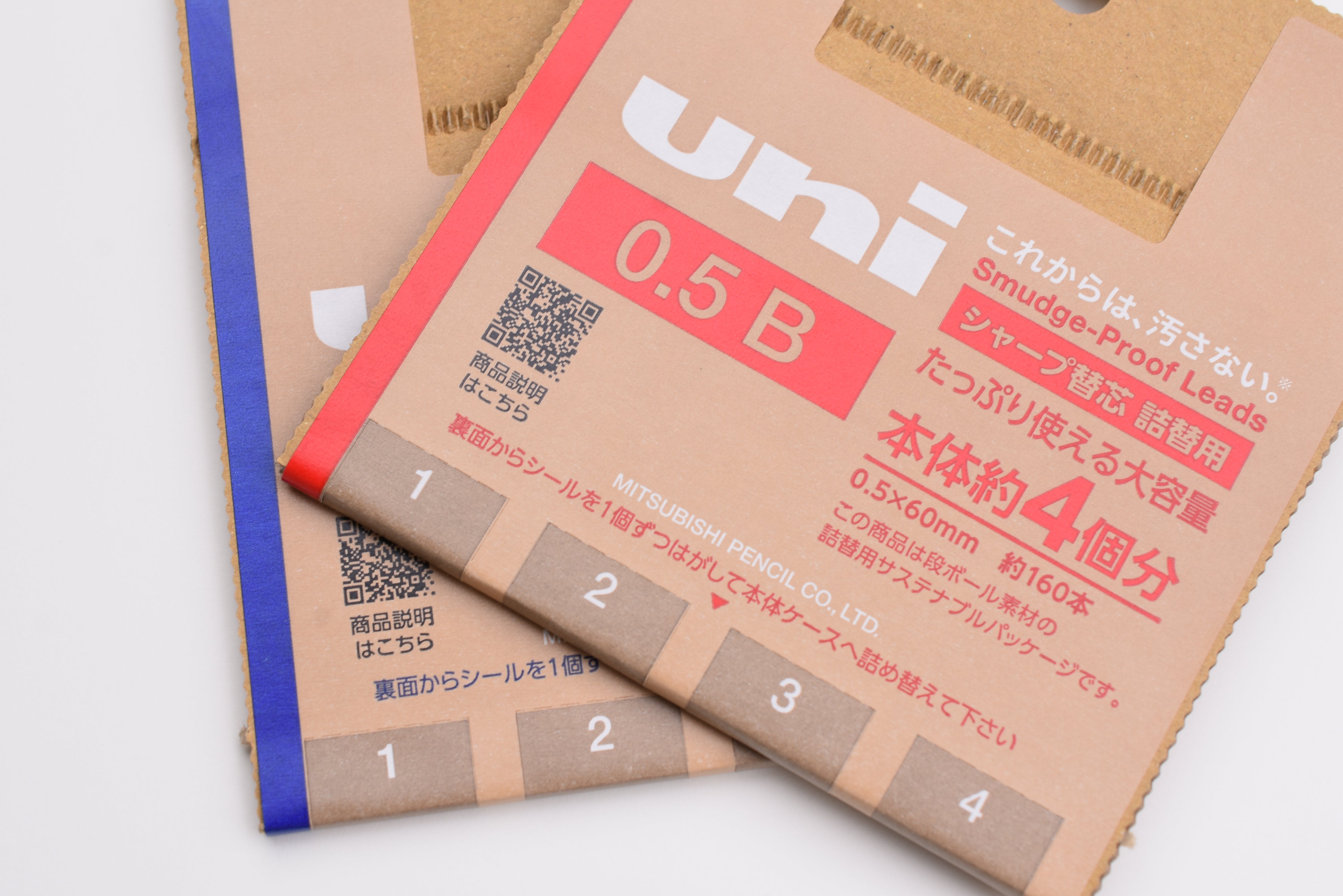 Uni Smudge-Proof Lead Refills - 0.5mm. This latest Uni Lead Refill comes in an unusual packaging. One pack contains the equivalent of four typical lead refills. The motivation behind Uni's latest lead design is to utilize sustainable packaging and reduce the carbon footprint. Along with this new design, Uni also introduces a new line of lead cases with a wider opening to make it easier to replenish the lead.